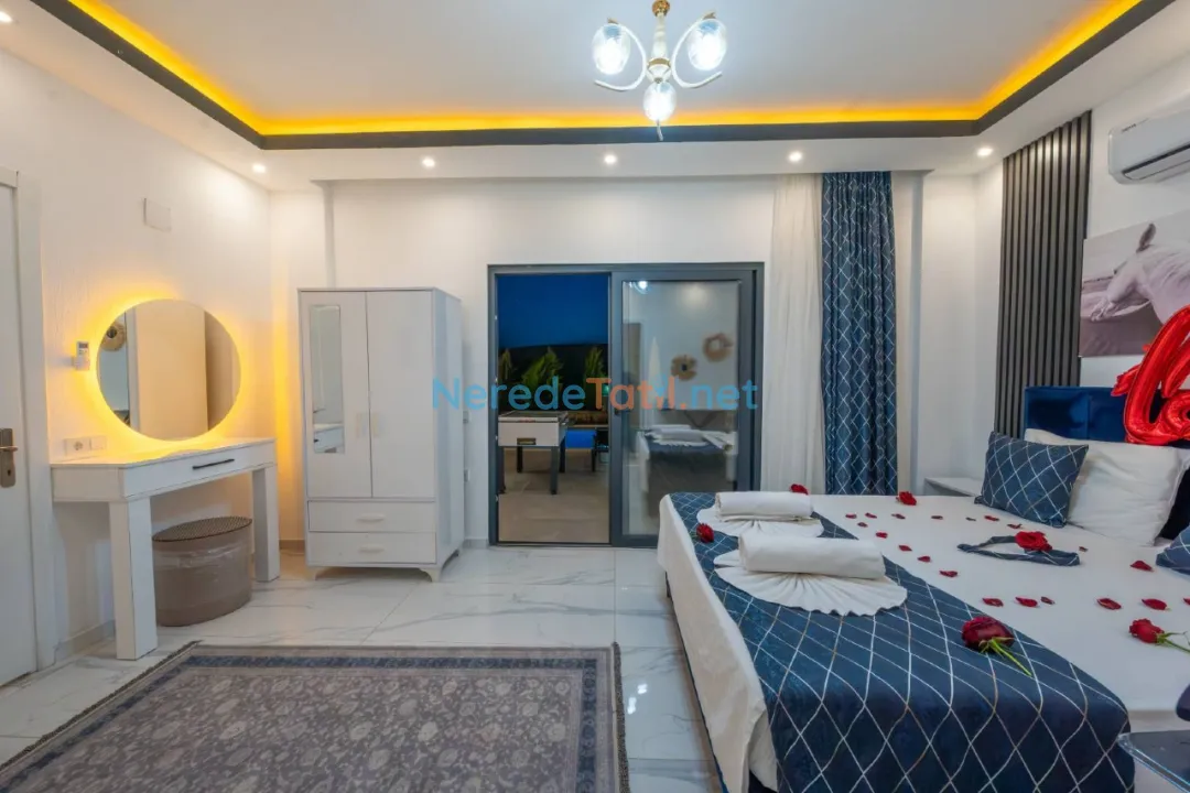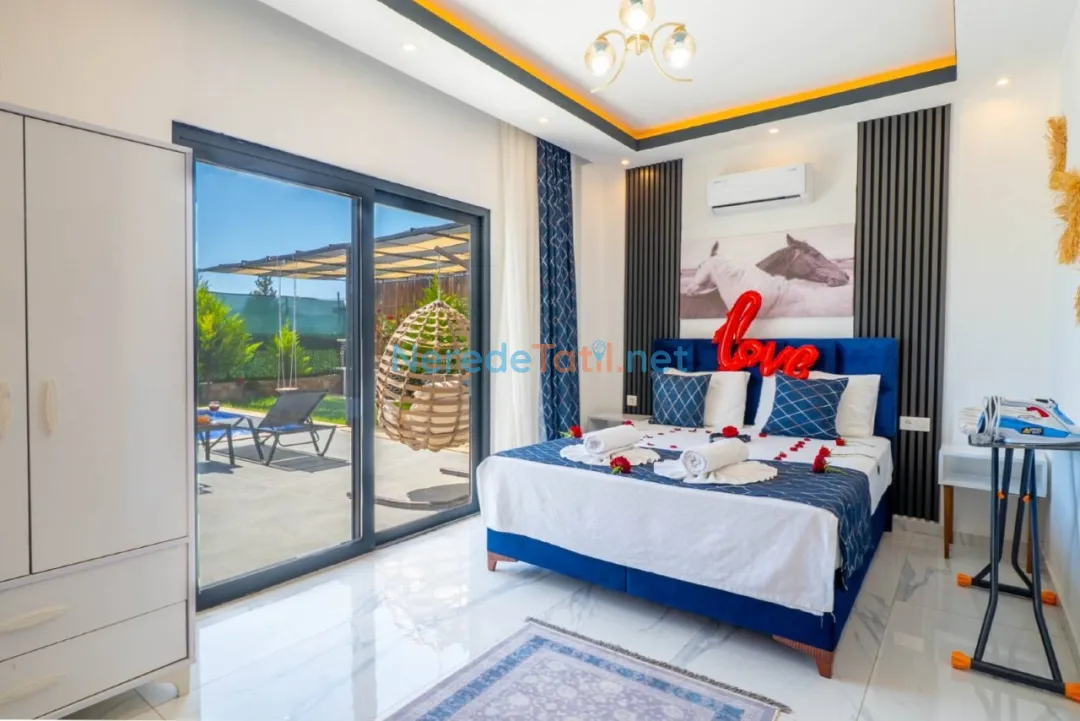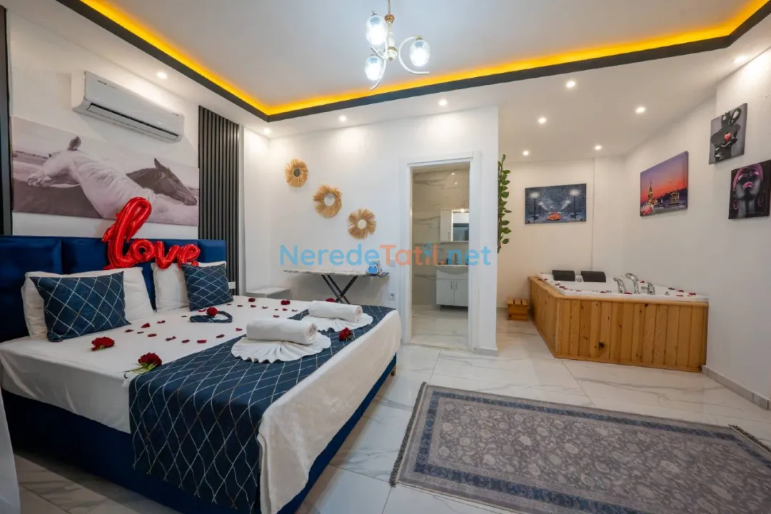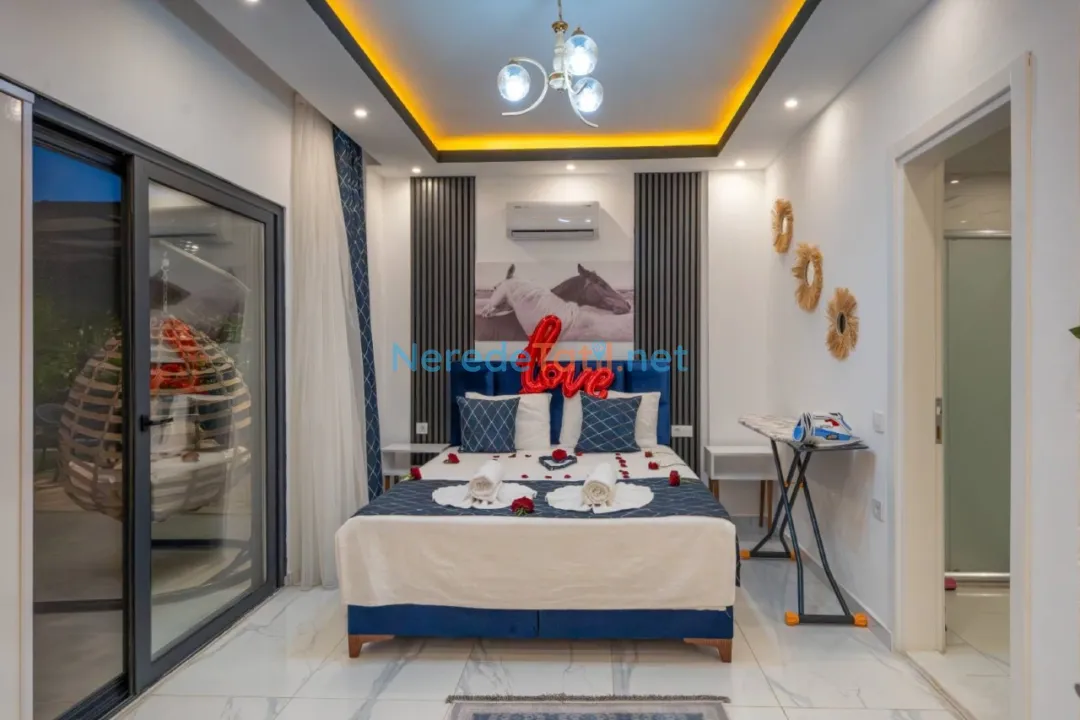 Çavdır'ın büyüleyici doğasında yer alan bu lüks villa, balayı çiftleri için kusursuz bir tatil deneyimi sunar. Özel ve korunaklı havuzu ile mahremiyetinize önem verirken, aynı zamanda doğa manzarasının tadını çıkarabilirsiniz. Havuz 4 metre genişliğinde ve 8 metre uzunluğunda olup, derinliği 1,5 metredir.