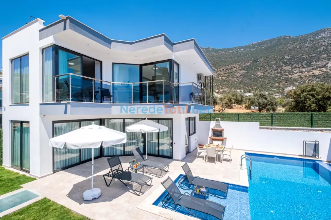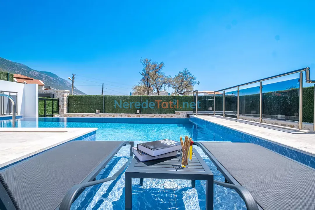 Kalkan'ın büyüleyici doğasında, deniz manzaralı ve lüks bir villa tatili sizleri bekliyor. Bu özel villa, geniş özel havuzuyla konuklarına serinletici bir deneyim sunuyor. Havuzun 4 metre eni ve 8 metre boyu ile rahatça yüzebilir, güneşin tadını çıkarabilirsiniz. Villanın korunaklı havuzu, mahremiyetinizi koruyarak huzurlu bir tatil geçirmenizi sağlar.