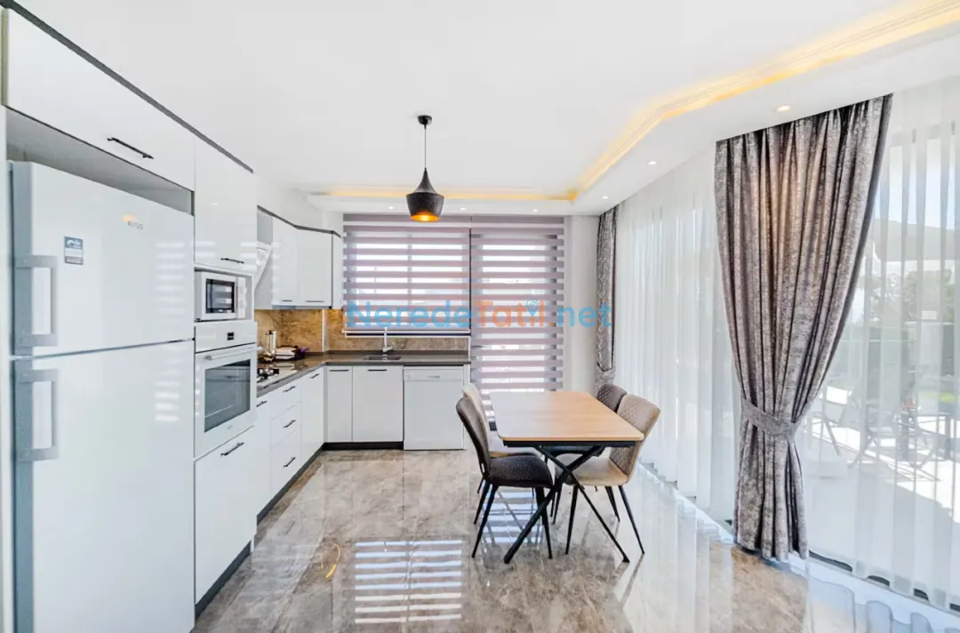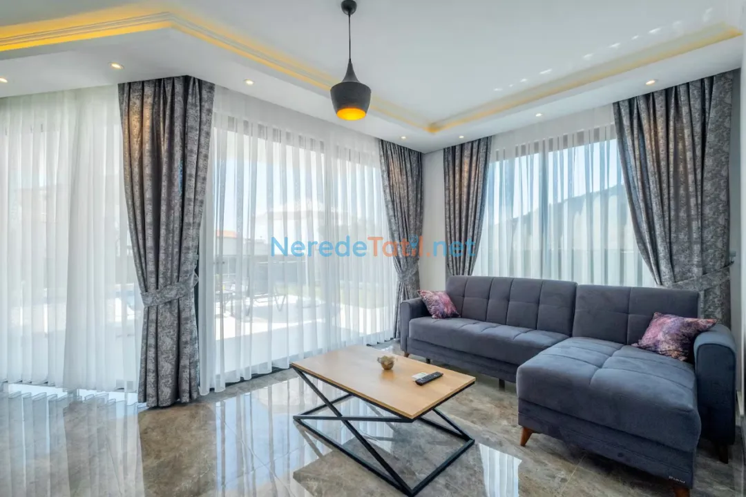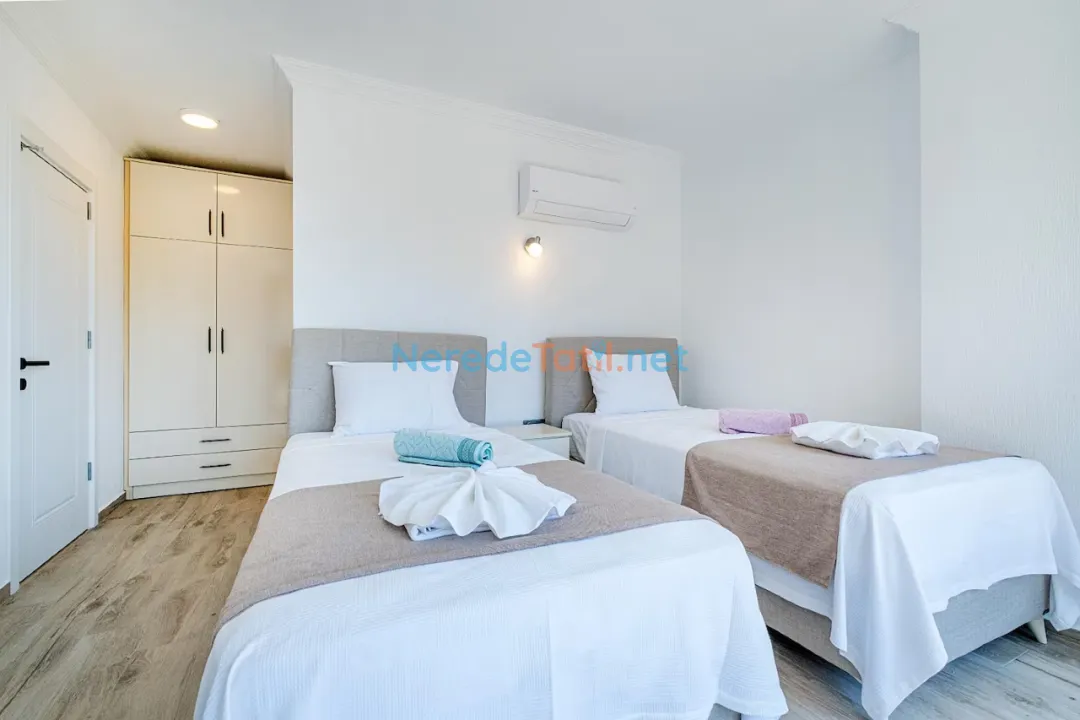 Villamız; üç yatak odası ve dört banyosuyla altı kişiye kadar konaklama imkanı sunmaktadır. İki çift kişilik yatak ve iki tek kişilik yatak ile tatilinizi konforlu bir şekilde geçirebilirsiniz. Şehir merkezine yakın konumuyla dikkat çeken villa, markete sadece 100 metre mesafededir. Ayrıca, denize yalnızca 900 metre uzaklıktadır.