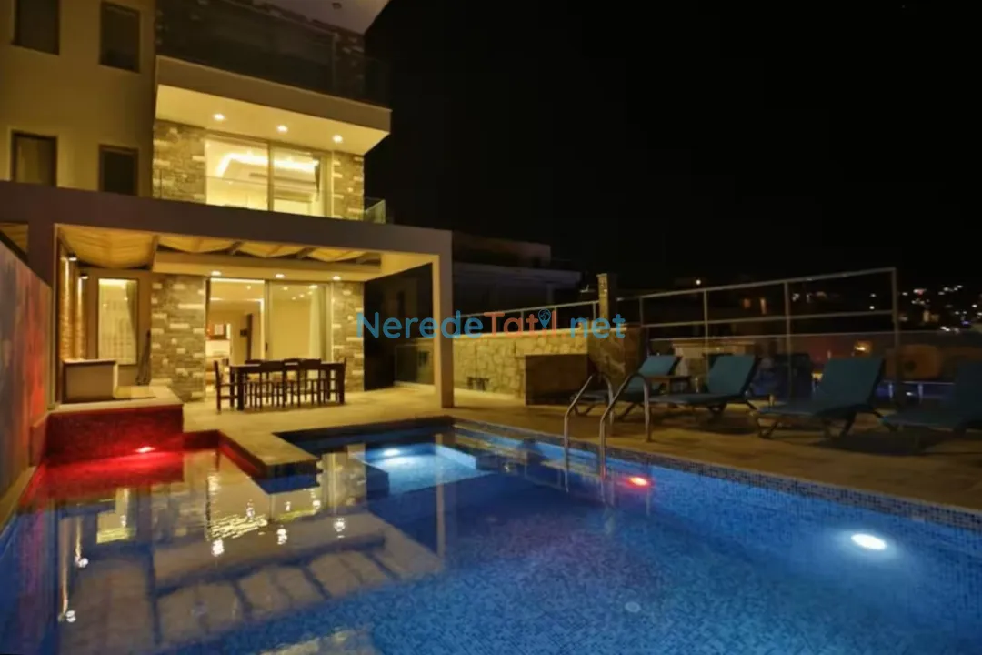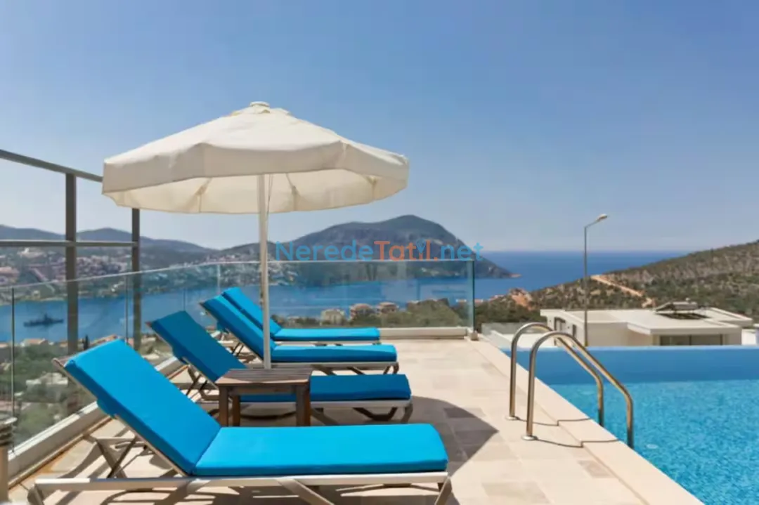 Kalkan'da, deniz ve doğa manzaralı bu lüks villa, şehir içindeki konumuyla huzur dolu bir tatil vaat ediyor. Sevdiklerinizle birlikte unutulmaz anılar biriktirmek için ideal bir ortam sunuyor.