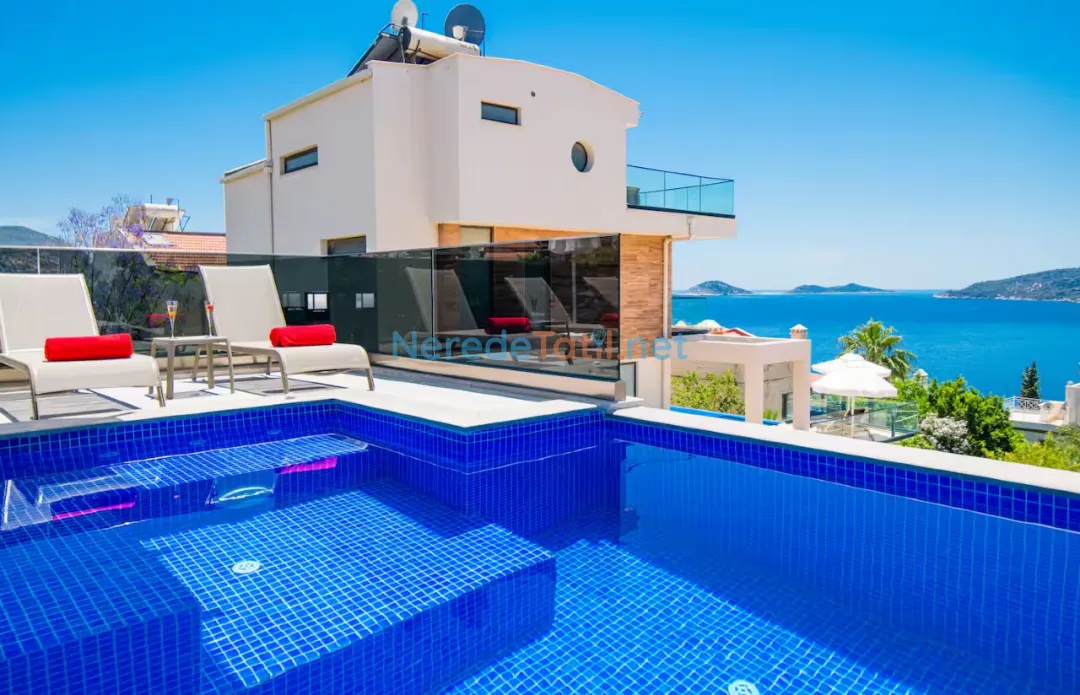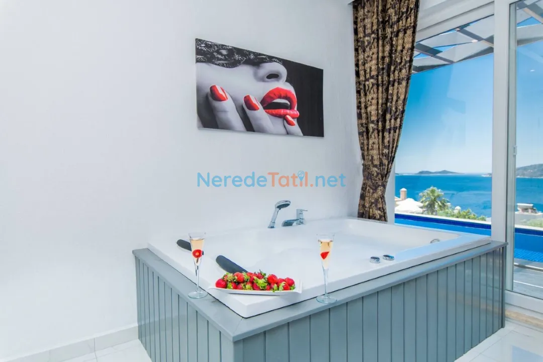 Kalkan'da Deniz Manzaralı, Lüks ve Jakuzili Villa