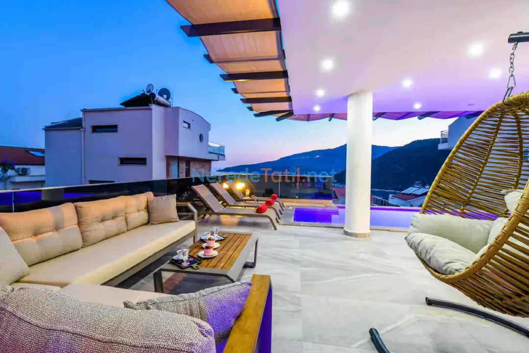 Deniz ve doğa manzarasının tadını çıkarabileceğiniz bu villa, Kalkan'ın kalbinde huzurlu ve unutulmaz bir tatil için sizleri bekliyor.