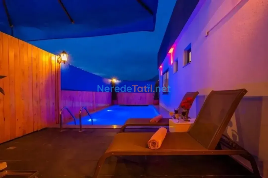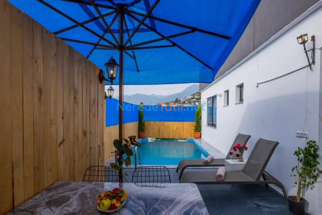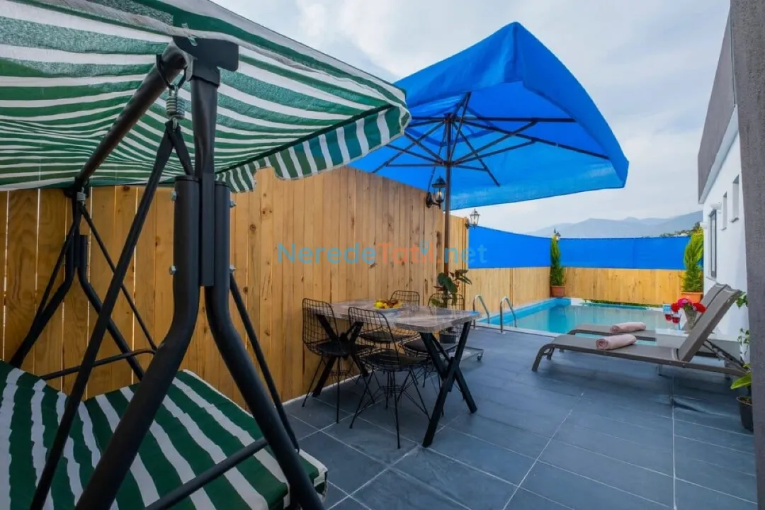 Misafirler, özel havuzu ile sıcak yaz günlerinin tadını çıkarabilir. 3 metre eninde ve 6 metre boyunda olan havuz, 1.45 metre derinliğinde ve korunaklıdır, bu da mahremiyet arayan misafirler için idealdir. Villanın bahçesinde BBQ - Mangal keyfi yapabilir, doğanın tadını çıkarabilirsiniz.