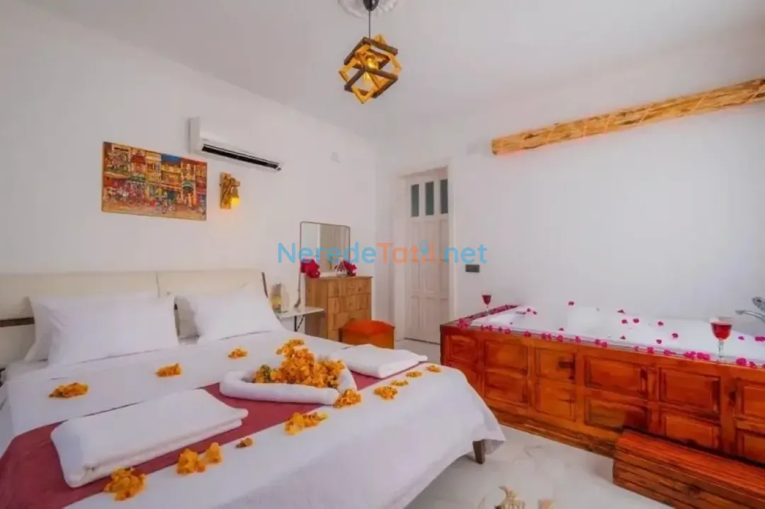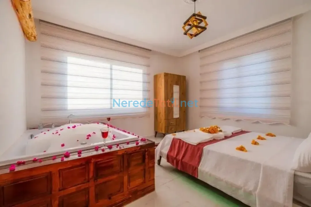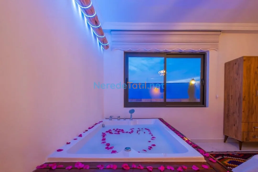 Villada jakuzi bulunmakta olup, rahatlamanın ve kendinizi şımartmanın en güzel yollarından birini sunar. Ayrıca, saç kurutma makinesi ve ütü gibi konforunuzu artıracak detaylar düşünülmüştür.