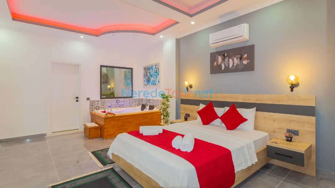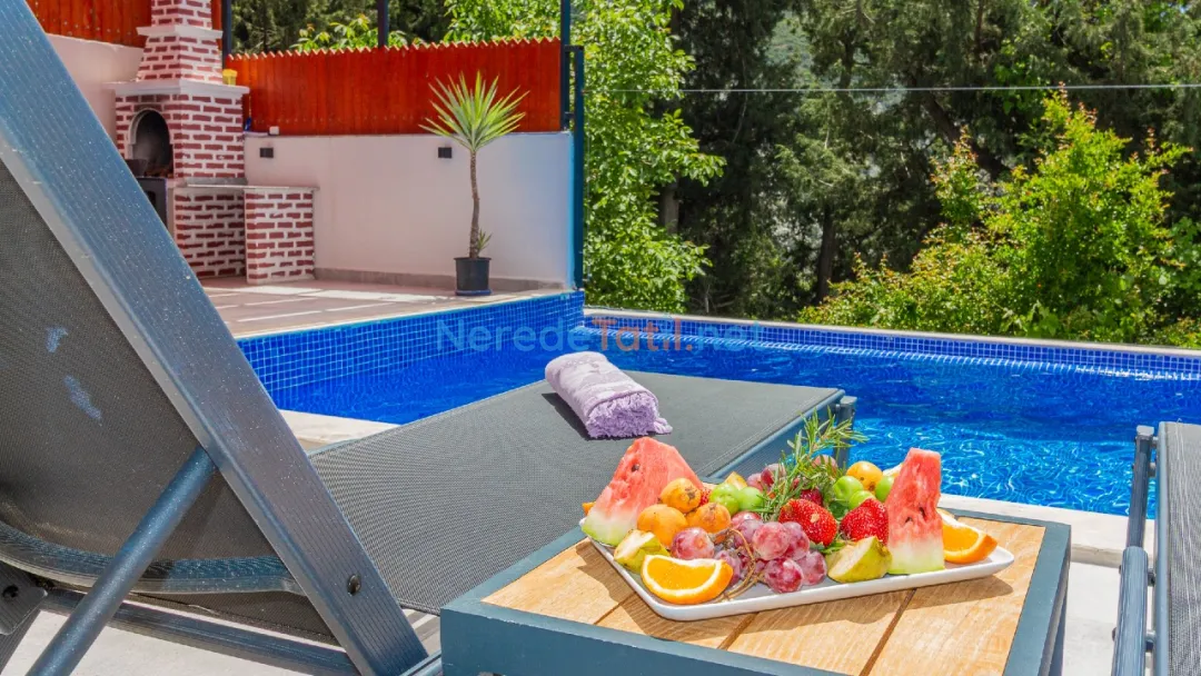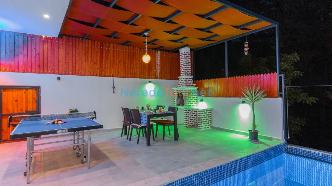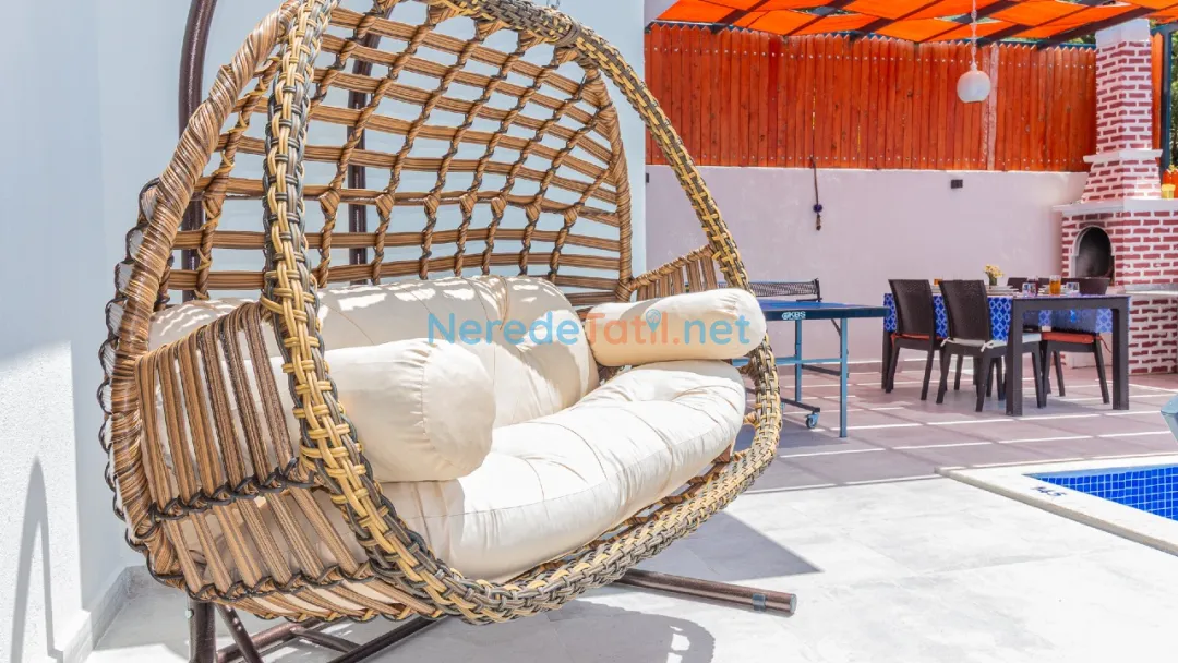 Öne çıkan özellikler arasında özel yüzme havuzu bulunuyor. Havuz boyutları 4 metre genişliğinde ve 10 metre uzunluğundadır, derinliği ise 1.45 metredir. Havuzumuz korunaklı olup, muhafazakar aileler için özel olarak tasarlanmıştır.