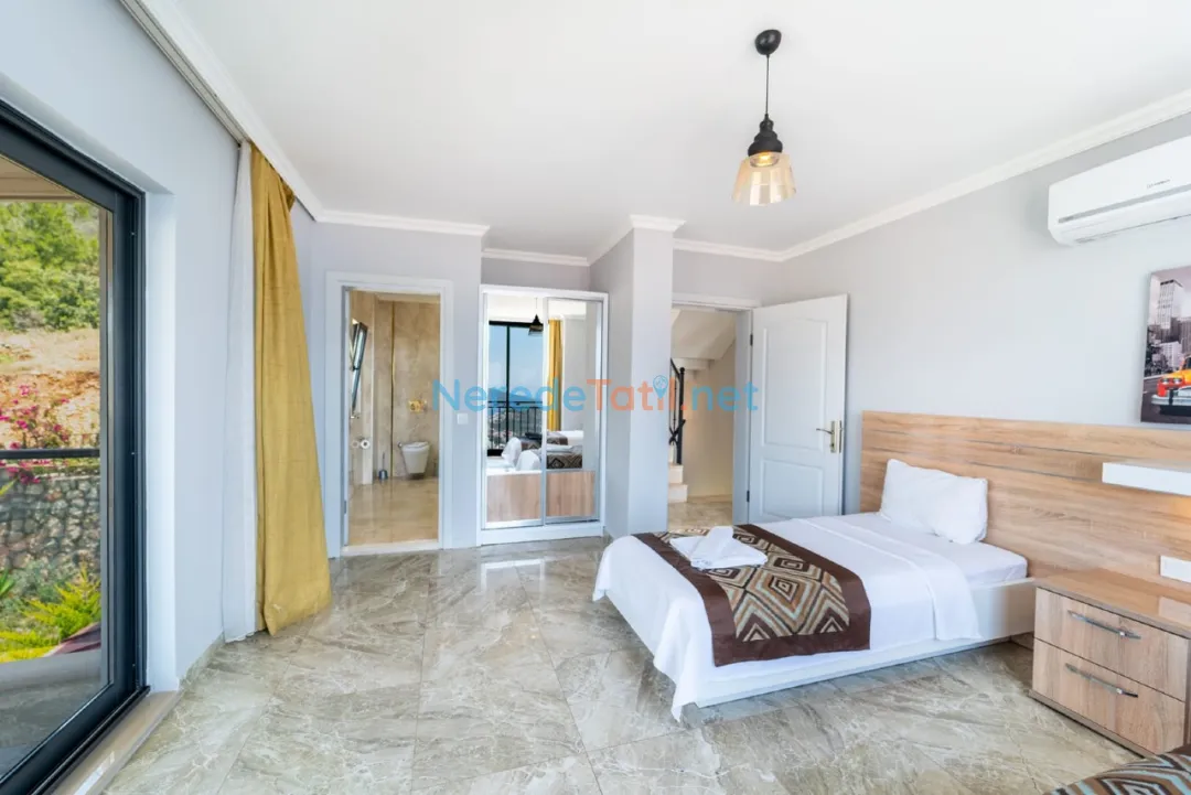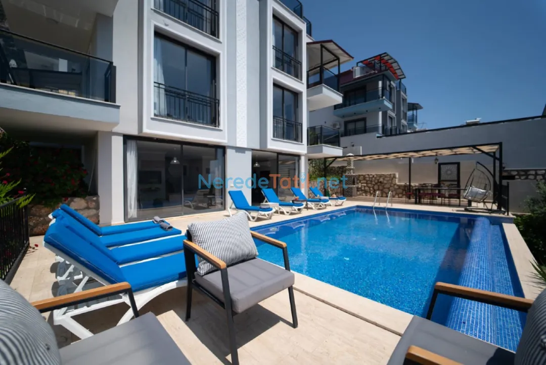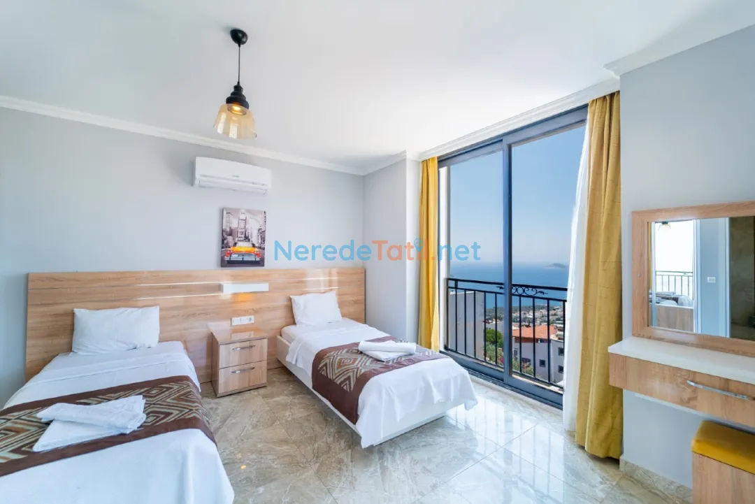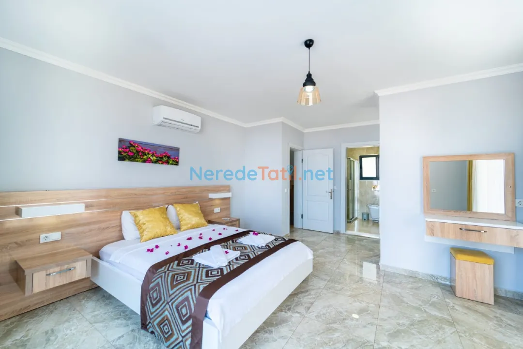 Kızıltaş'ın kalbinde yer alan bu lüks villa, konforlu ve unutulmaz bir tatil deneyimi sunmak üzere tasarlanmıştır. Villa, 10 kişilik kapasitesi ile geniş aileler veya arkadaş grupları için idealdir. Beş yatak odasında dört çift kişilik ve iki tek kişilik yatak bulunmaktadır. Her odada modern ve şık banyolar yer almakta, toplamda altı banyo ile misafirlerine rahat bir konaklama imkanı sunulmaktadır.