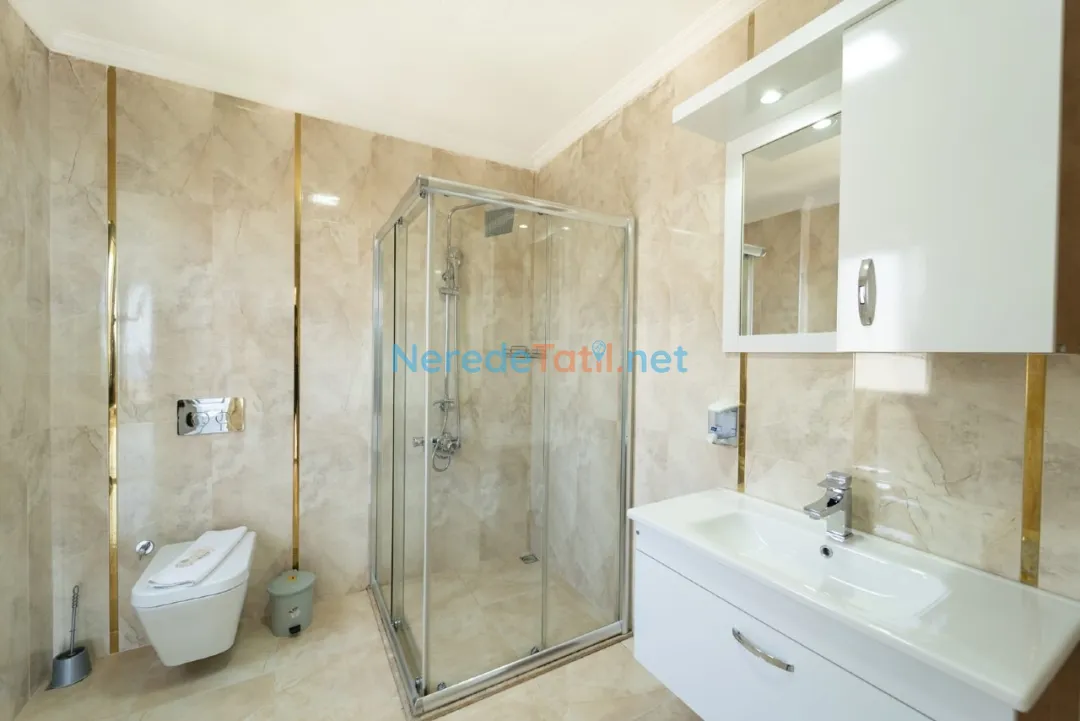 Villada ayrıca saç kurutma makinesi, su sebili ve ütü gibi günlük ihtiyaçlarınızı karşılayacak birçok detay düşünülmüştür. Kızıltaş'taki bu muhteşem villa, erken rezervasyon fırsatları ile unutulmaz bir tatil için sizleri bekliyor.