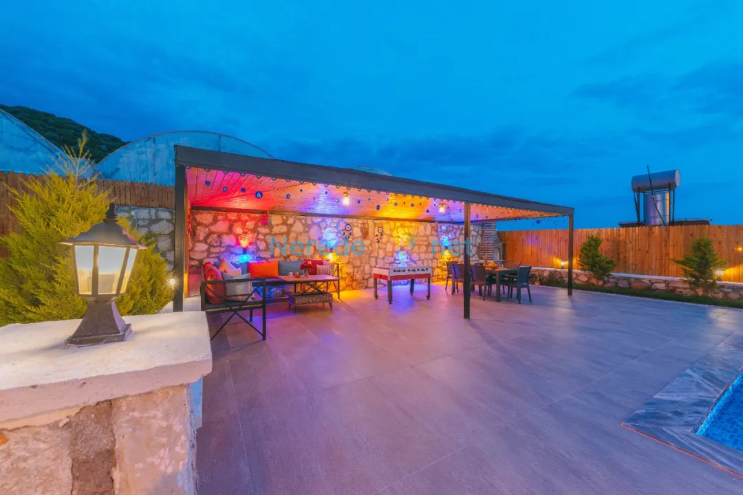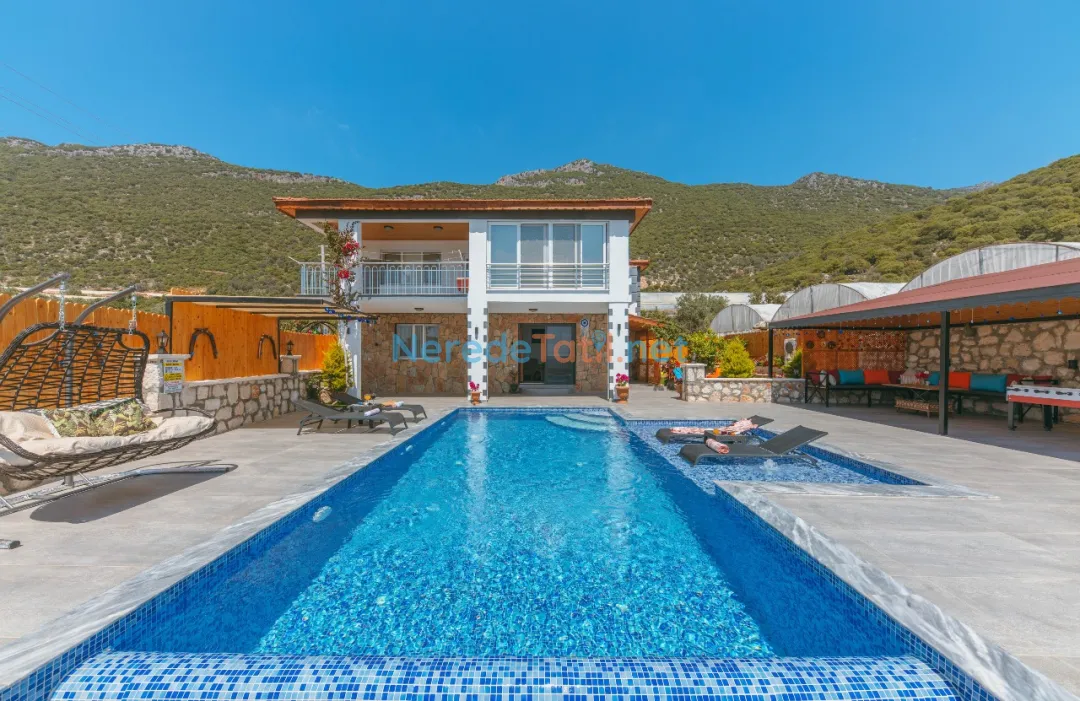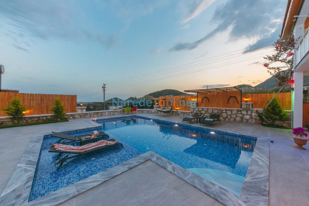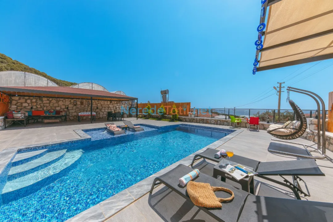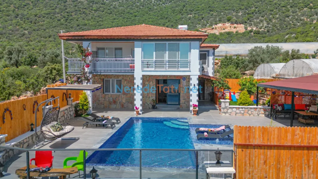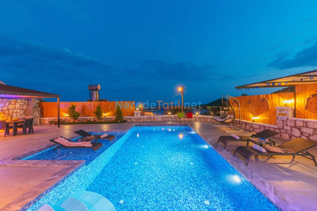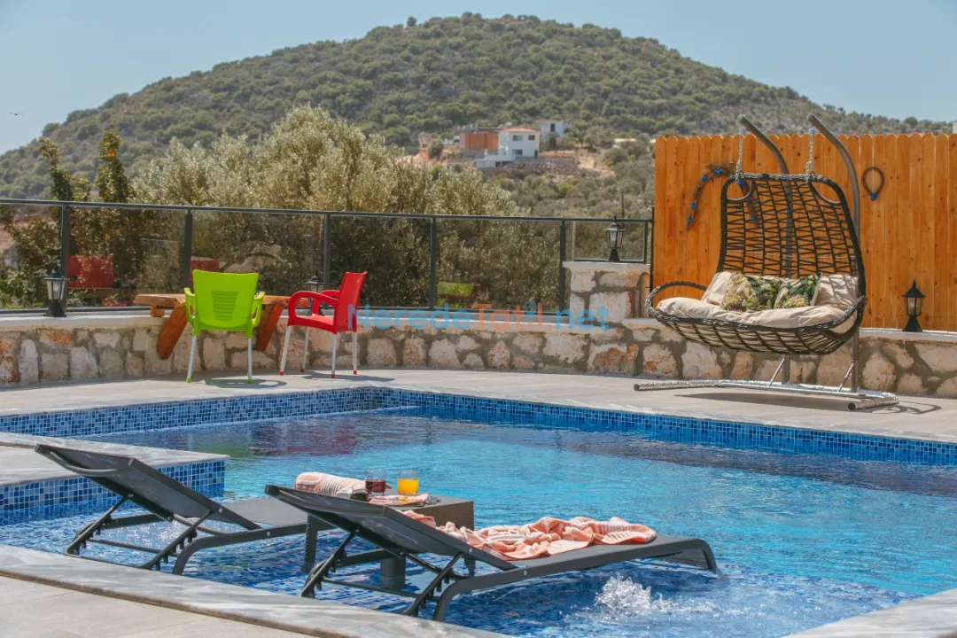 Konforunuz düşünülerek donatılmış olan villada, bir tane çift kişilik yatak ve iki tane tek kişilik yatak bulunmaktadır. Villanın 4 metre genişliğinde, 7 metre uzunluğunda ve 1,5 metre derinliğinde bir yüzme havuzu mevcuttur. Bahçeli alanında BBQ - Mangal keyfi yapabilir, deniz ve doğa manzaralı terasında huzurlu dakikalar geçirebilirsiniz.
