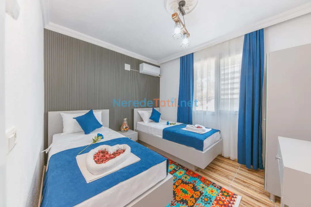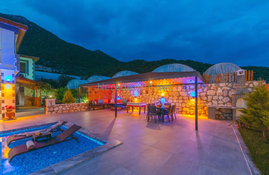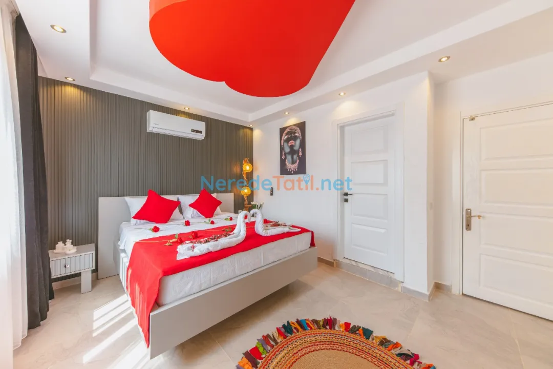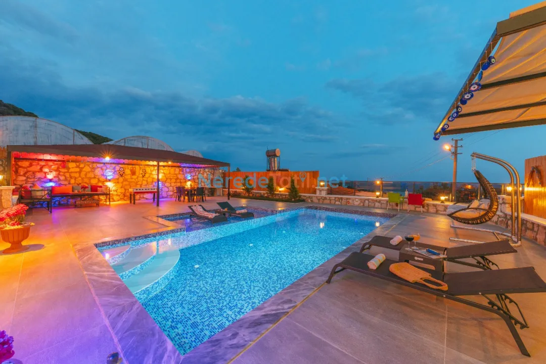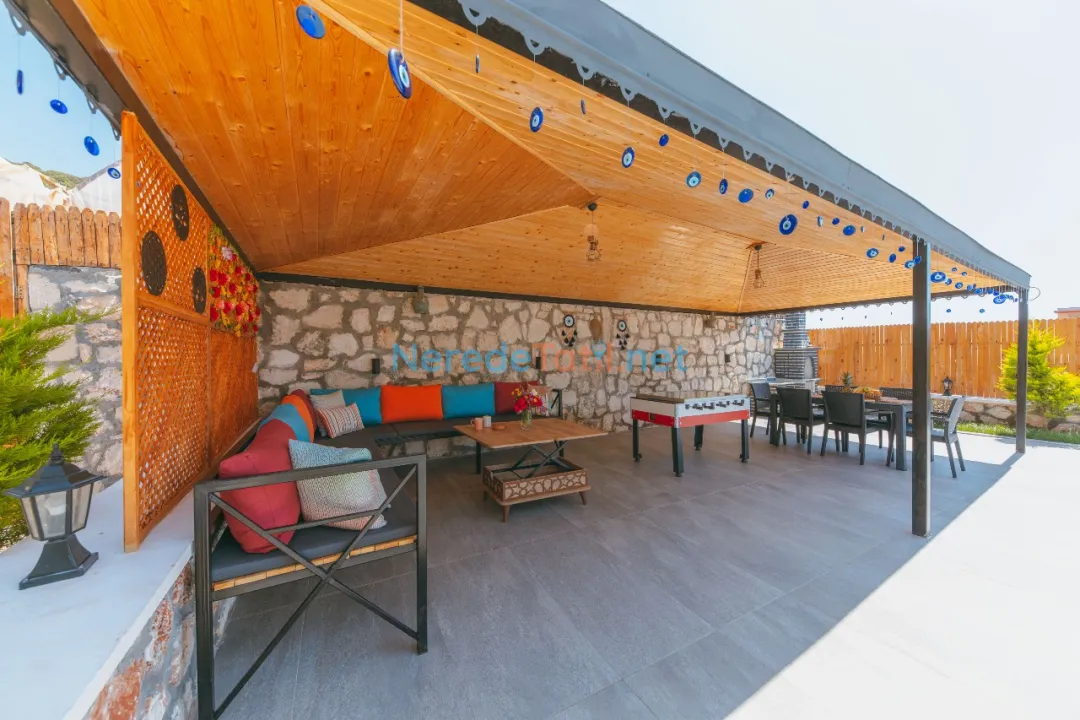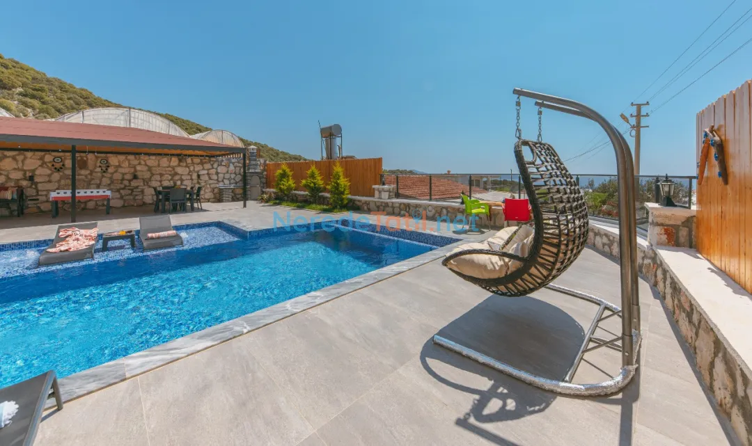 Konforunuz düşünülerek donatılmış olan villada, bir tane çift kişilik yatak ve iki tane tek kişilik yatak bulunmaktadır. Villanın 4 metre genişliğinde, 7 metre uzunluğunda ve 1,5 metre derinliğinde bir yüzme havuzu mevcuttur. Bahçeli alanında BBQ - Mangal keyfi yapabilir, deniz ve doğa manzaralı terasında huzurlu dakikalar geçirebilirsiniz.