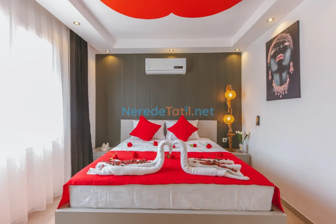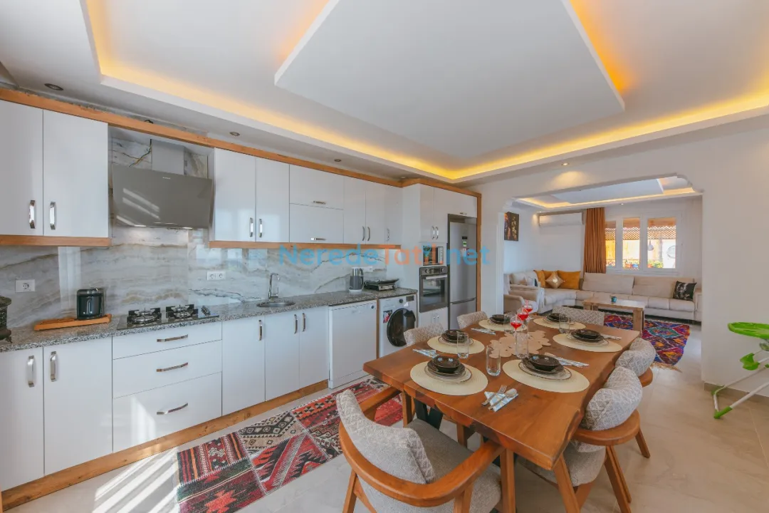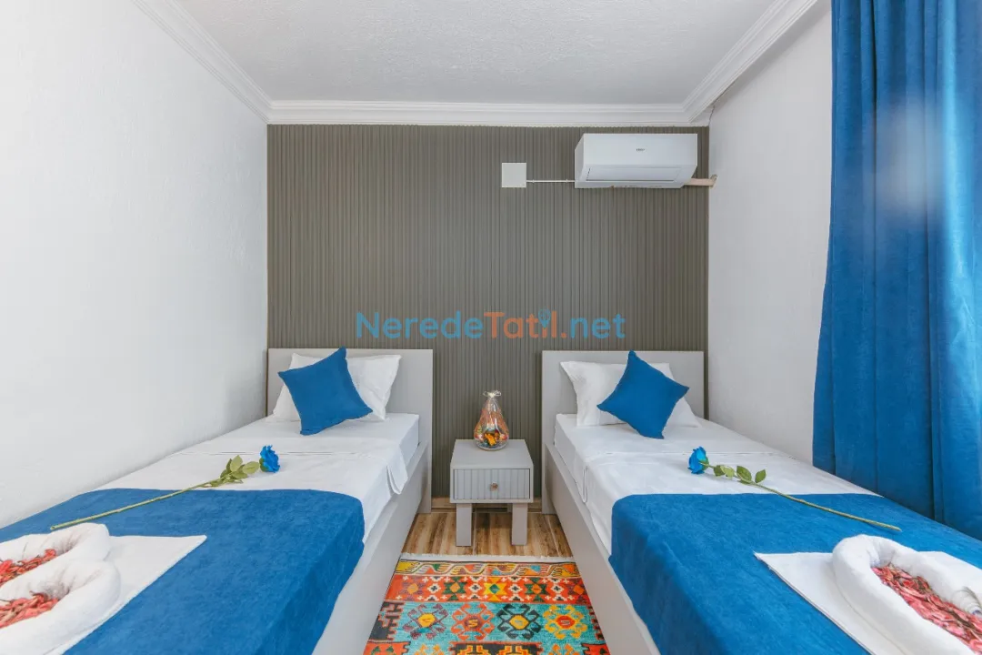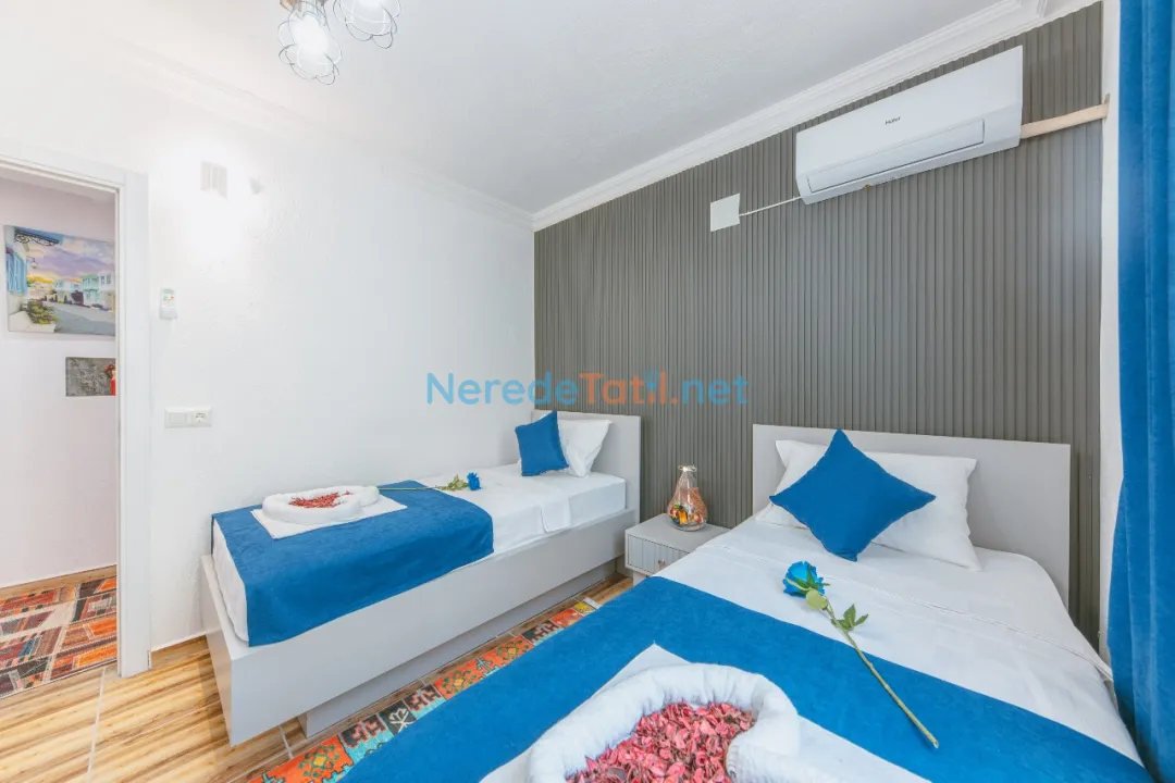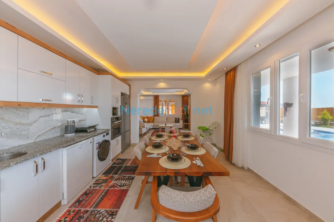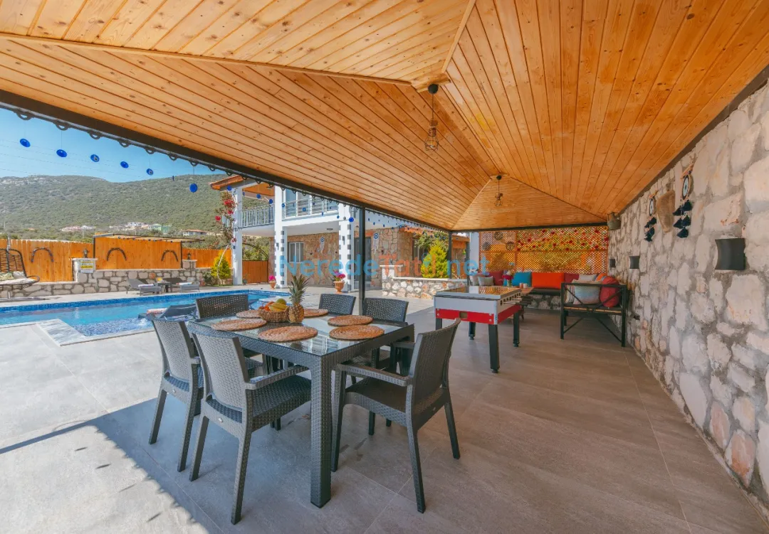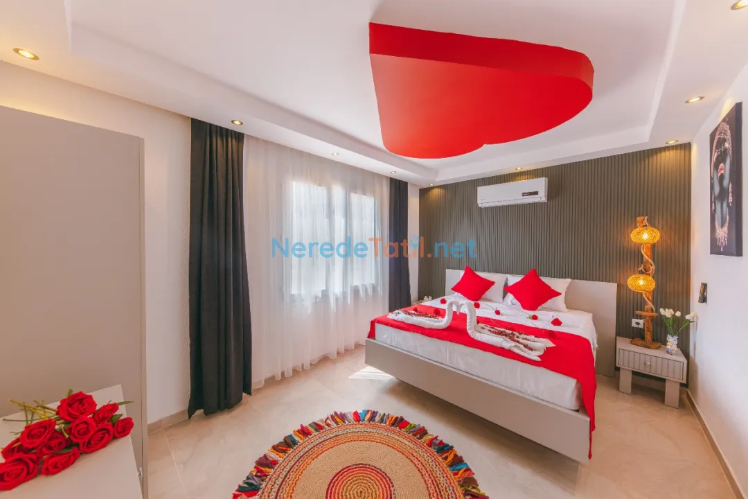 Konforunuz düşünülerek donatılmış olan villada, bir tane çift kişilik yatak ve iki tane tek kişilik yatak bulunmaktadır. Villanın 4 metre genişliğinde, 7 metre uzunluğunda ve 1,5 metre derinliğinde bir yüzme havuzu mevcuttur. Bahçeli alanında BBQ - Mangal keyfi yapabilir, deniz ve doğa manzaralı terasında huzurlu dakikalar geçirebilirsiniz.