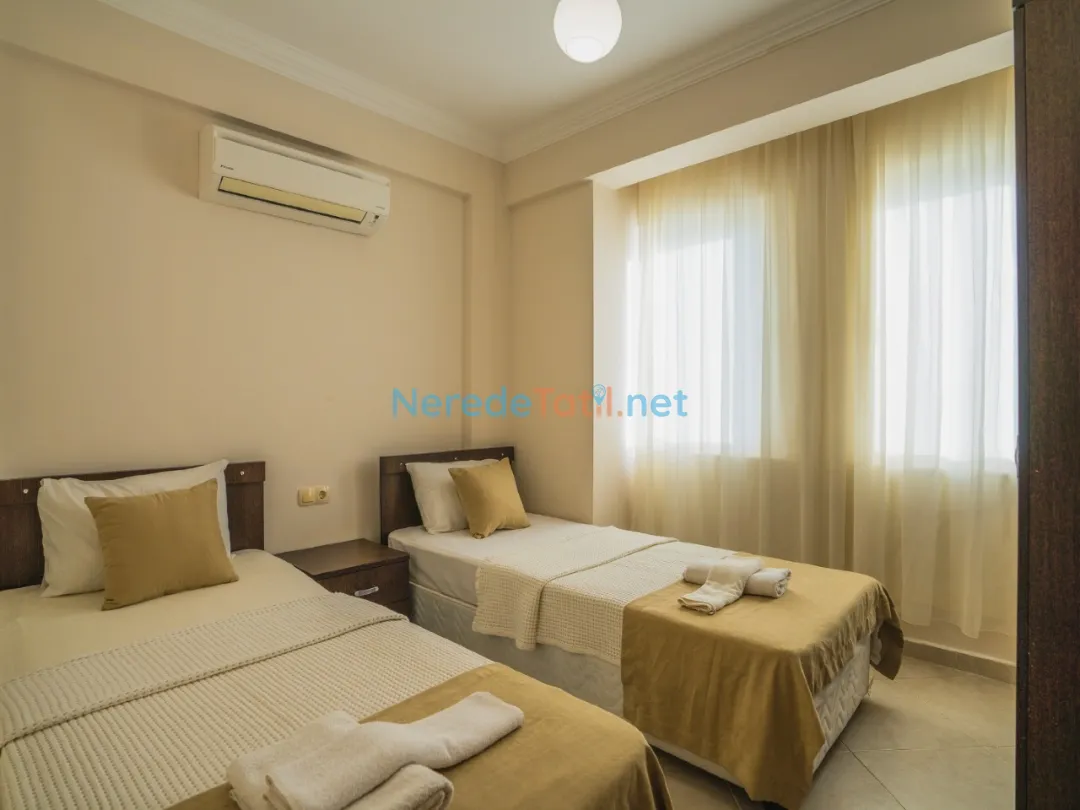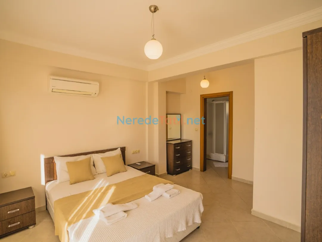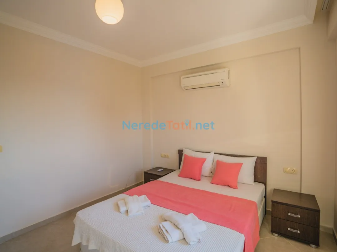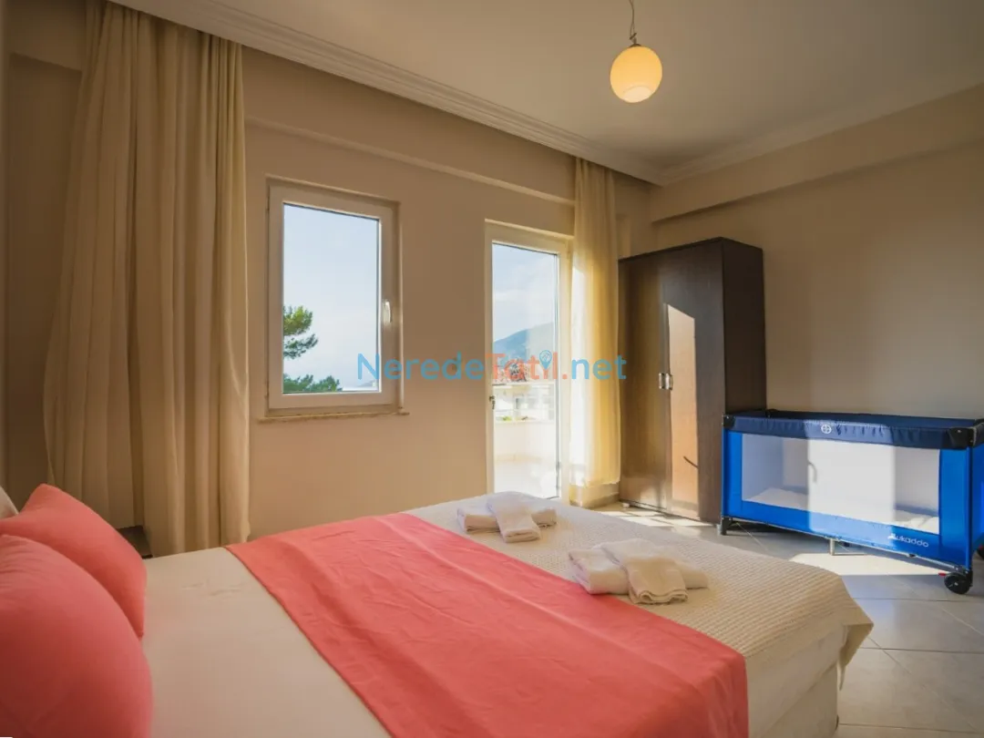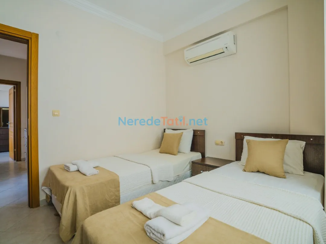 Villada iki adet çift kişilik yatak ve dört adet tek kişilik yatak yer almaktadır. Ayrıca bebekli misafirlerimiz için bir adet bebek yatağı da mevcuttur. Ortak yüzme havuzu, 4 metre genişliği, 8.5 metre boyu ve 1.5 metre derinliği ile tatilinize serinlik katar.