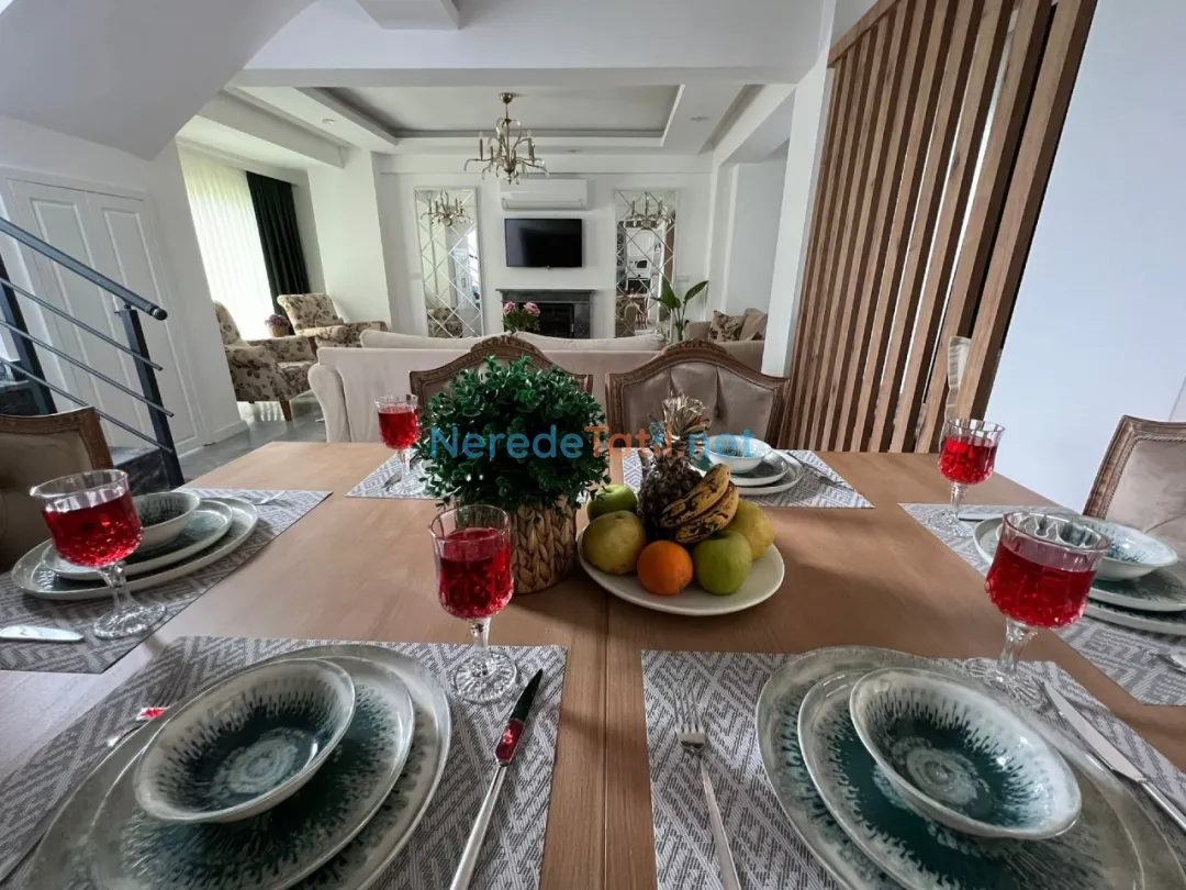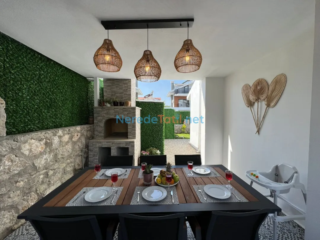 Unutulmaz bir tatil deneyimi için doğanın kalbinde yer alan bu muhteşem villamız, konuklarına özel havuz ve tam donanımlı bir yaşam alanı sunuyor. Tatiliniz boyunca huzur ve konforu bir arada yaşamanız için tüm detaylar düşünüldü. Geniş ve ferah odalar, modern dekorasyon ile birleşerek ev konforunu aratmayan bir tatil imkanı sunuyor.