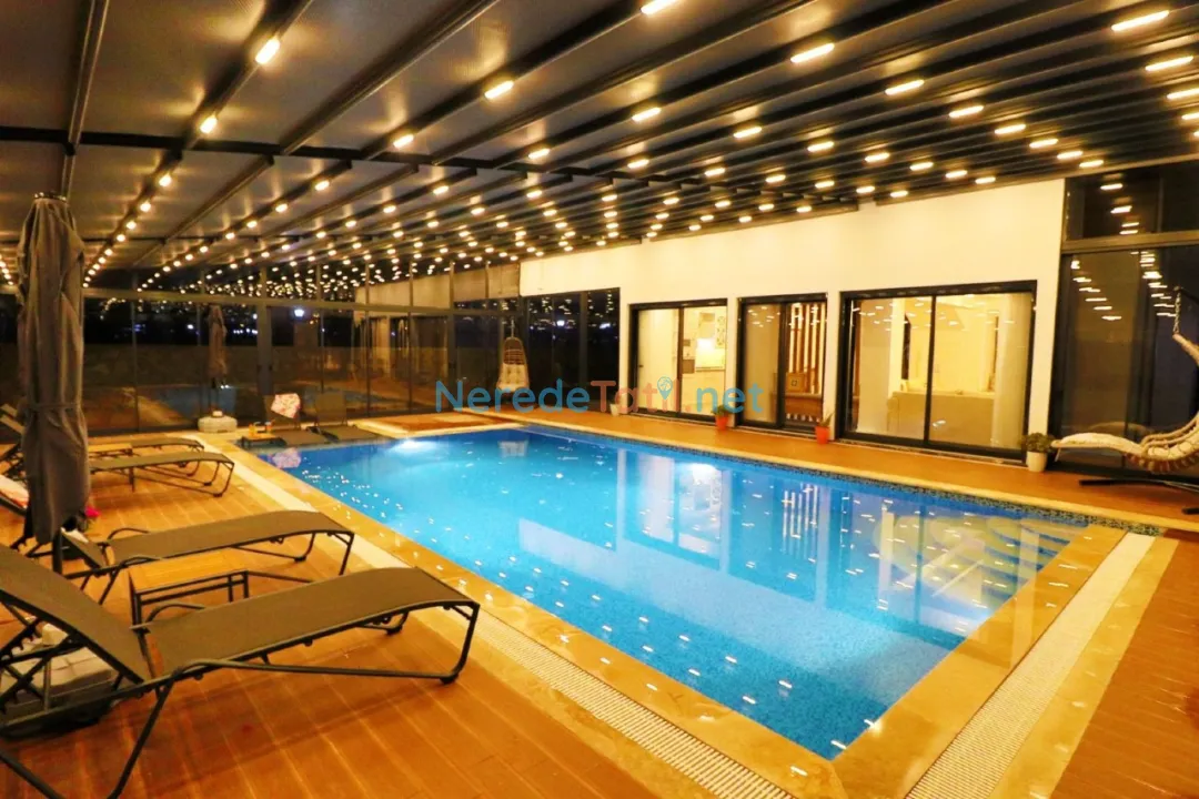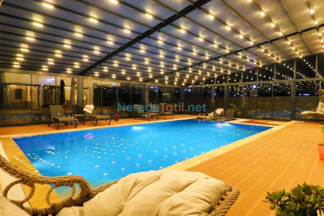 Villamızın özel yüzme havuzu, sıcak yaz günlerinde serinleyerek keyifli vakit geçirmenizi sağlıyor. Doğanın eşsiz güzellikleri arasında yer alan villamız, şehir hayatının stresinden uzaklaşıp, huzur dolu anlar yaşamanız için ideal bir seçenek. Doğal güzelliklerle çevrili bu villada, sakinliğin ve konforun tadını çıkarabilirsiniz.