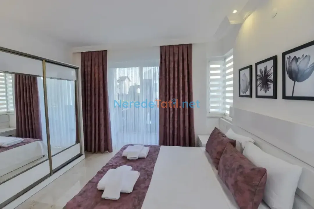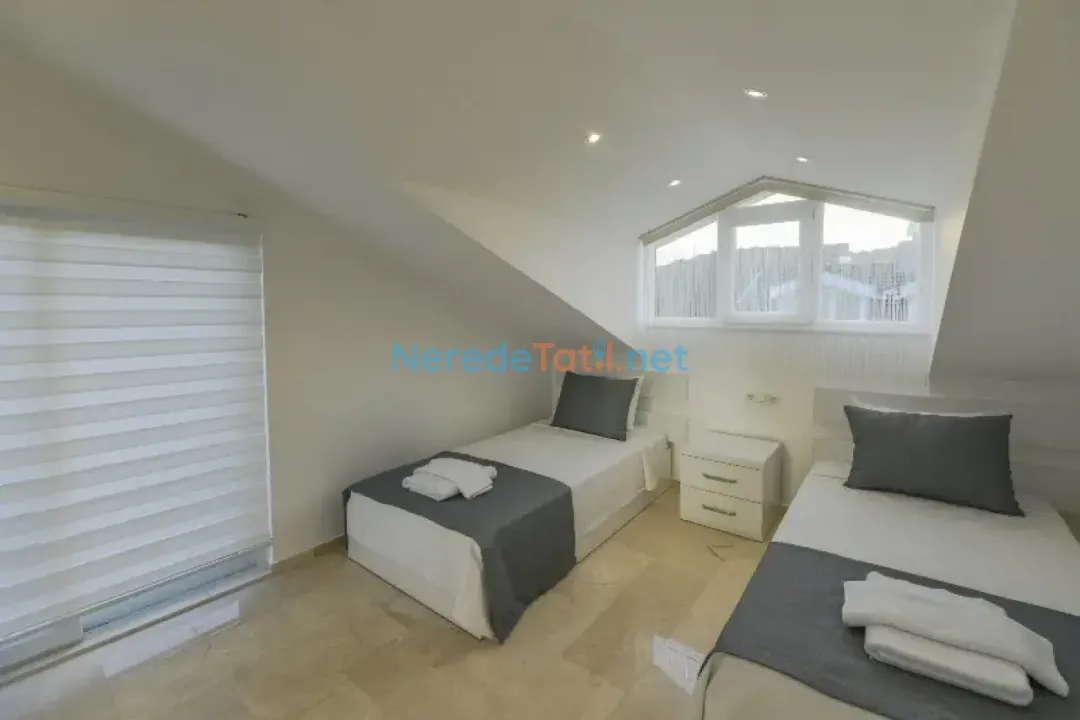 Ölüdeniz'in büyüleyici doğasında, lüks konforu ve mahremiyeti bir araya getiren bu villa, tatilciler için eşsiz bir deneyim sunmaktadır. Dört yatak odası ve dört banyosu ile toplamda sekiz kişilik konaklama kapasitesine sahiptir. İki çift kişilik ve dört tek kişilik yatağı sayesinde geniş aileler ve arkadaş grupları için idealdir.