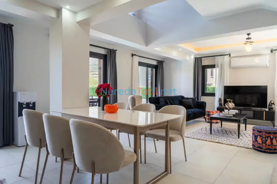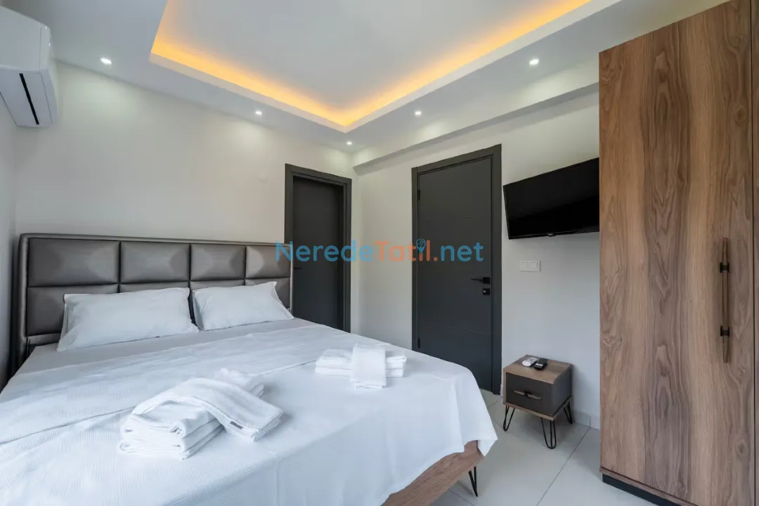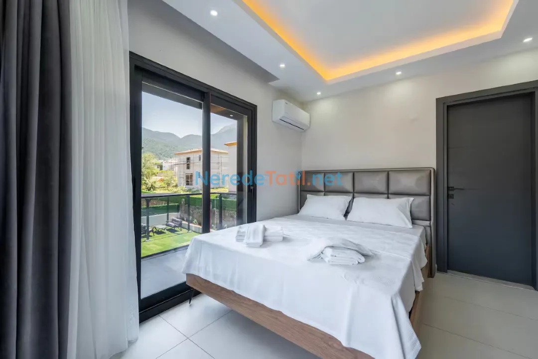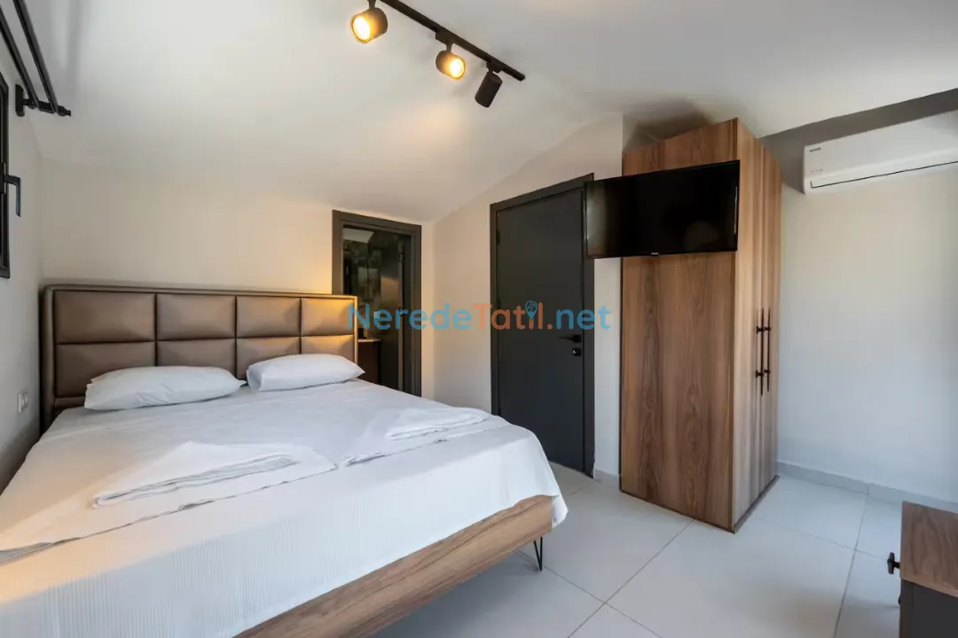 Ölüdeniz'in eşsiz doğası ile çevrili bu lüks villa, sizlere özel bir tatil deneyimi sunuyor. Villa 8 kişilik konaklama kapasitesine sahip olup, dört adet çift kişilik yatak bulunan geniş ve konforlu yatak odaları ile donatılmıştır. Her bir yatak odasında banyo bulunmakta, böylece konforunuz en üst seviyede tutulmaktadır.