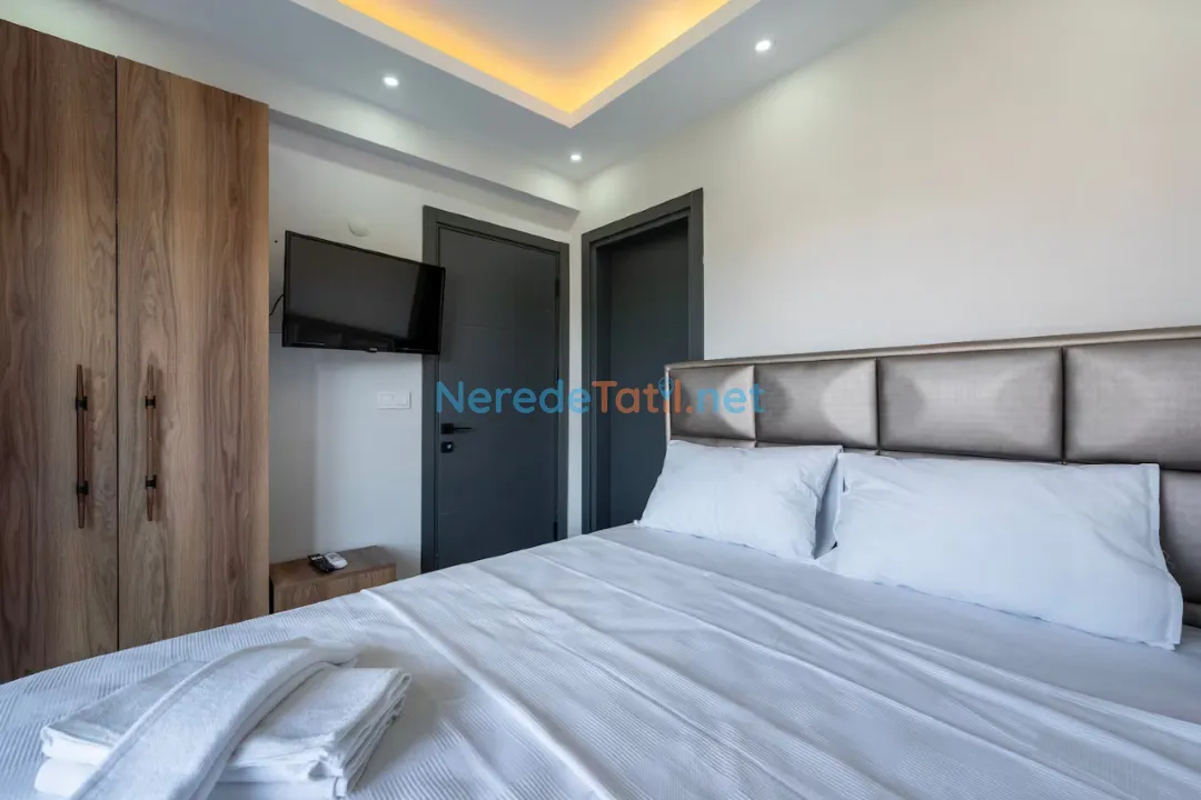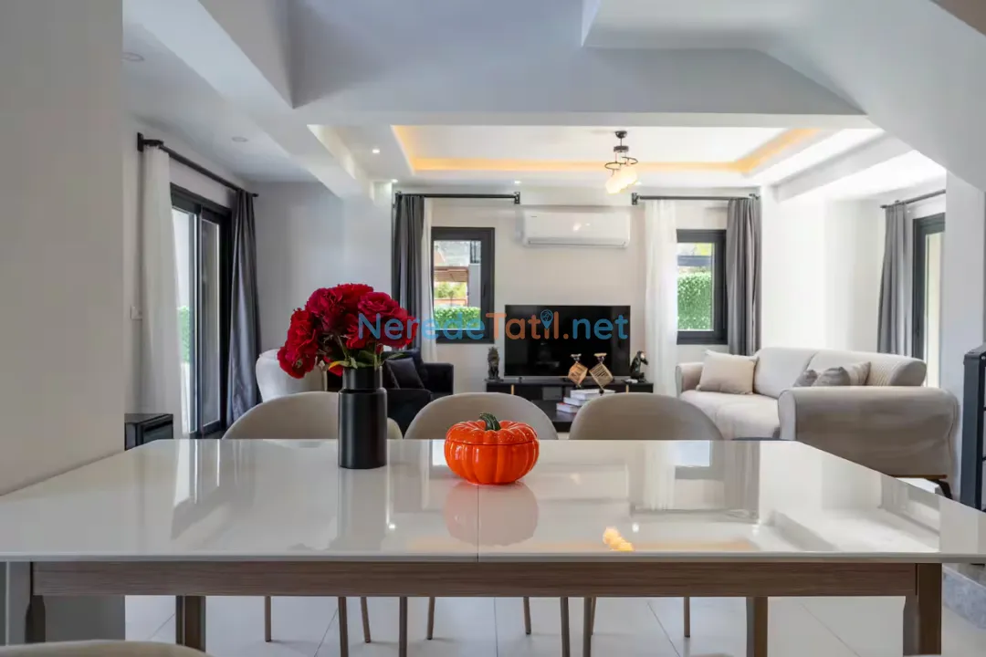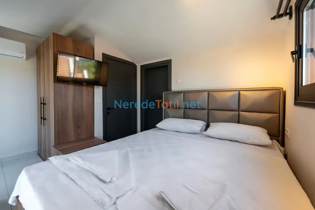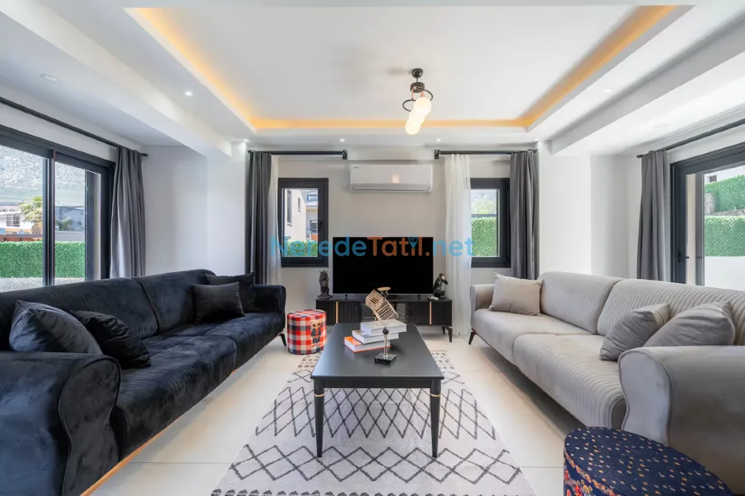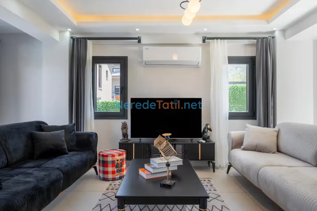 Ölüdeniz'in eşsiz doğası ile çevrili bu lüks villa, sizlere özel bir tatil deneyimi sunuyor. Villa 8 kişilik konaklama kapasitesine sahip olup, dört adet çift kişilik yatak bulunan geniş ve konforlu yatak odaları ile donatılmıştır. Her bir yatak odasında banyo bulunmakta, böylece konforunuz en üst seviyede tutulmaktadır.