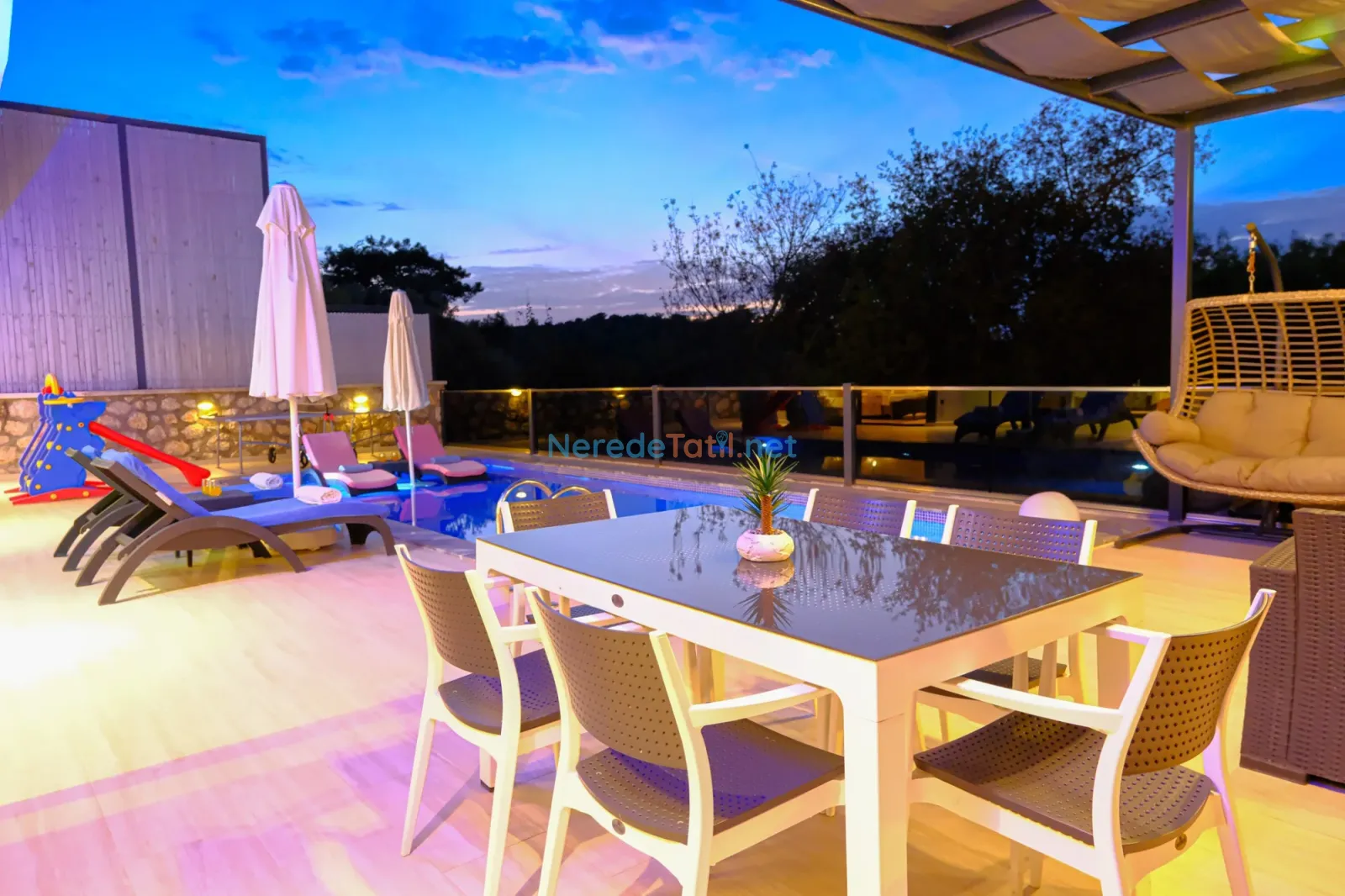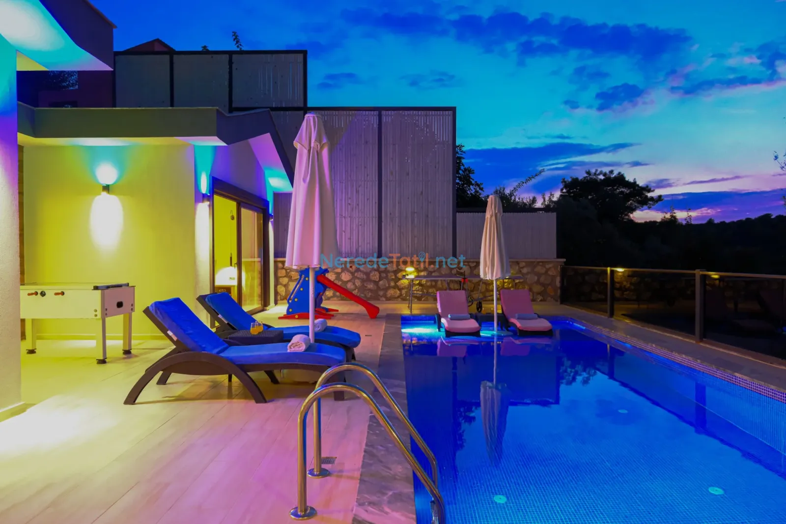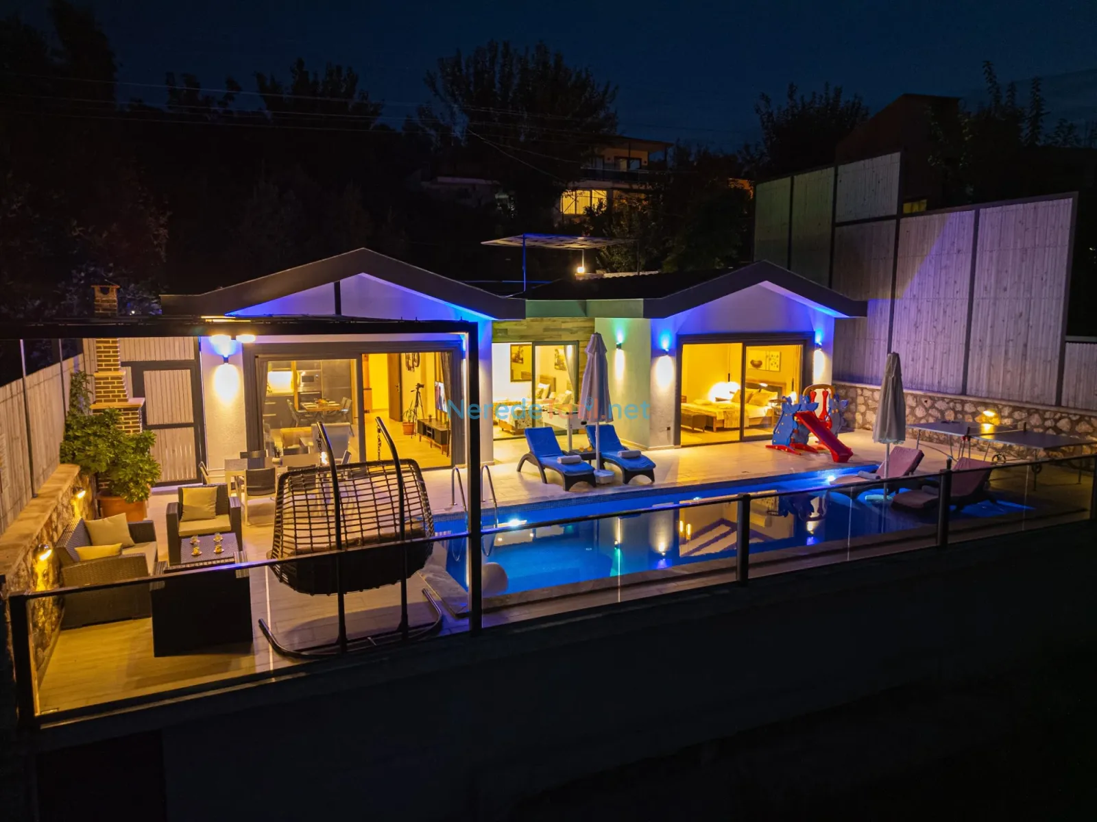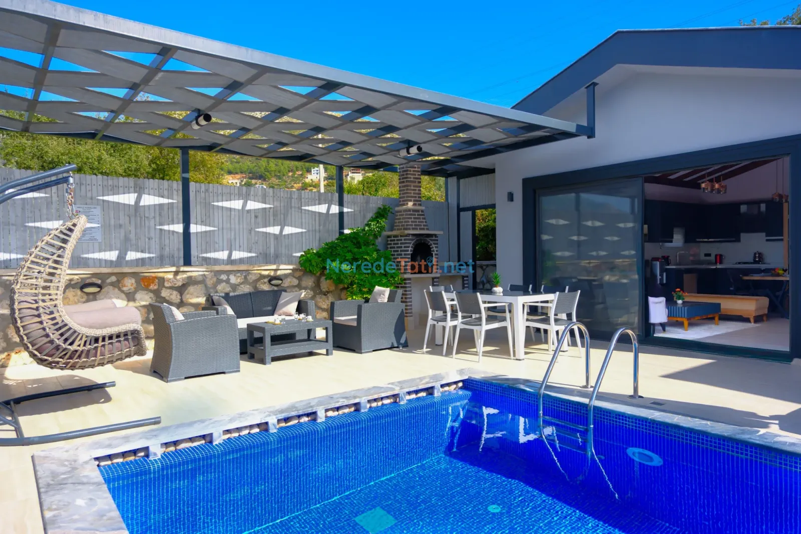 Üzümlü'nün eşsiz doğasında konumlanan bu villa, özel yüzme havuzu ile konuklarına unutulmaz bir tatil deneyimi sunuyor. Villanın havuzu 3.5 metre eninde, 7 metre boyunda ve 1.5 metre derinliğindedir. Doğanın kalbinde yer alan bu gizli cennet, 4 kişilik konaklama kapasitesi ile ideal bir tatil alanı sunmaktadır.