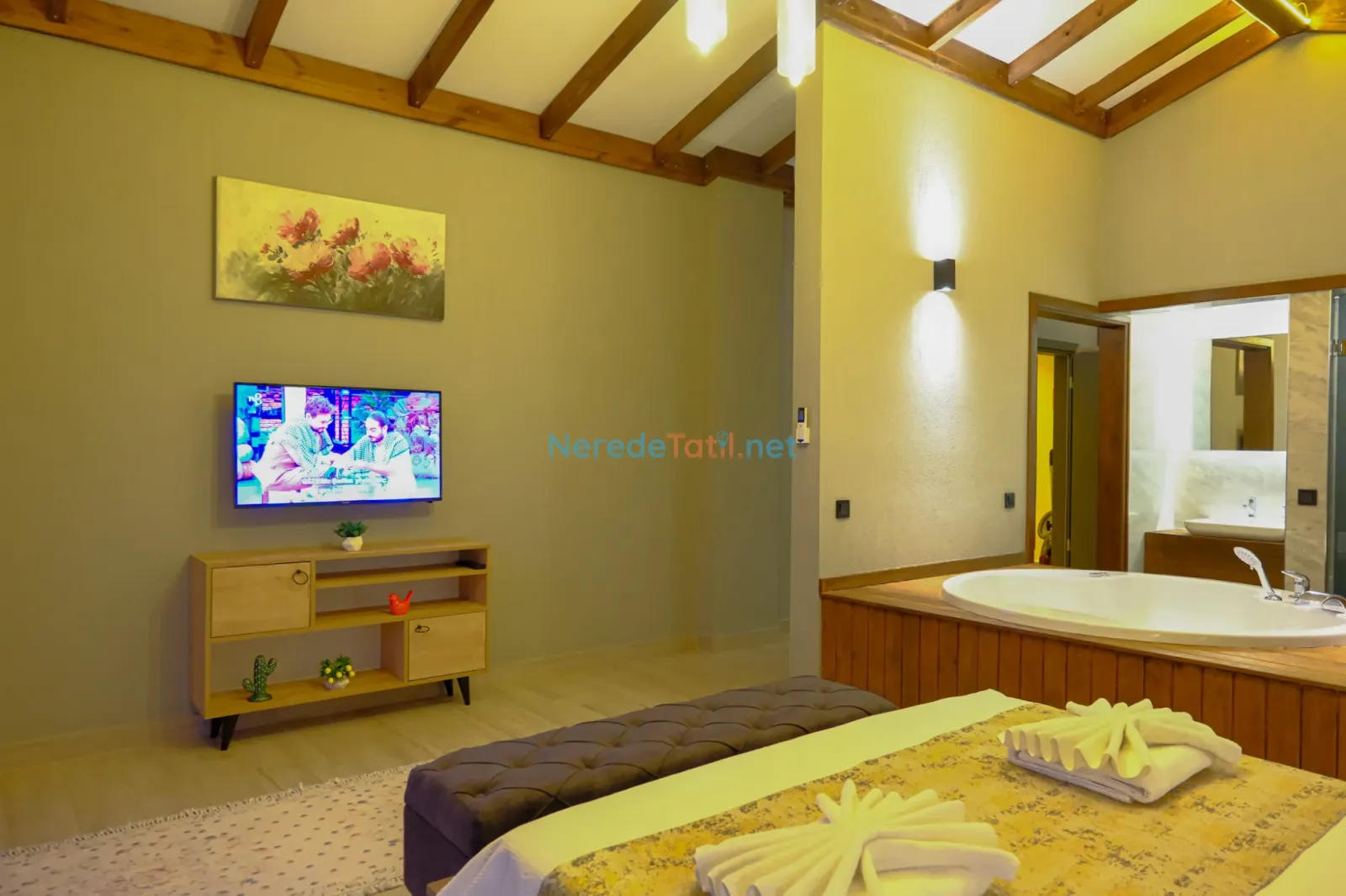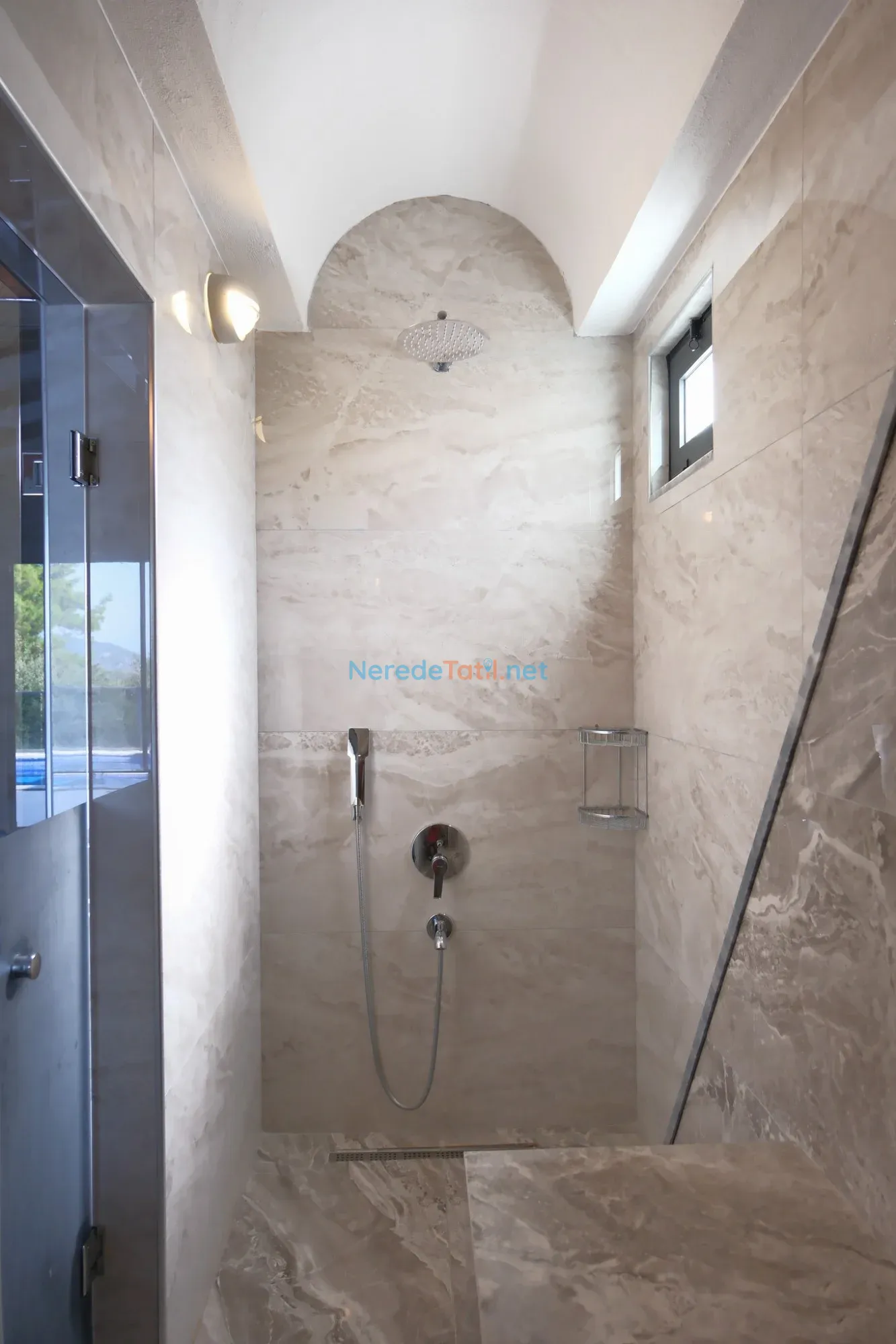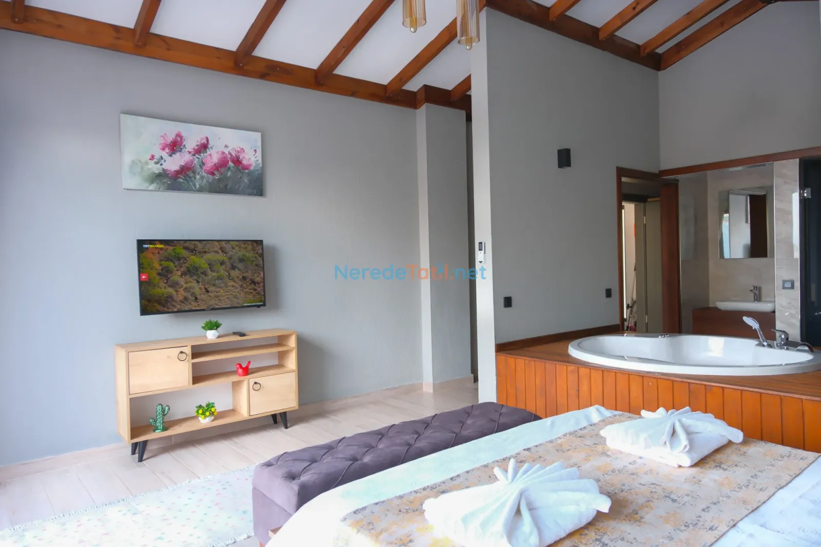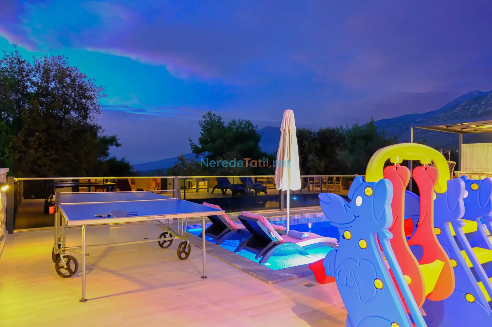 Üzümlü'nün eşsiz doğasında konumlanan bu villa, özel yüzme havuzu ile konuklarına unutulmaz bir tatil deneyimi sunuyor. Villanın havuzu 3.5 metre eninde, 7 metre boyunda ve 1.5 metre derinliğindedir. Doğanın kalbinde yer alan bu gizli cennet, 4 kişilik konaklama kapasitesi ile ideal bir tatil alanı sunmaktadır.