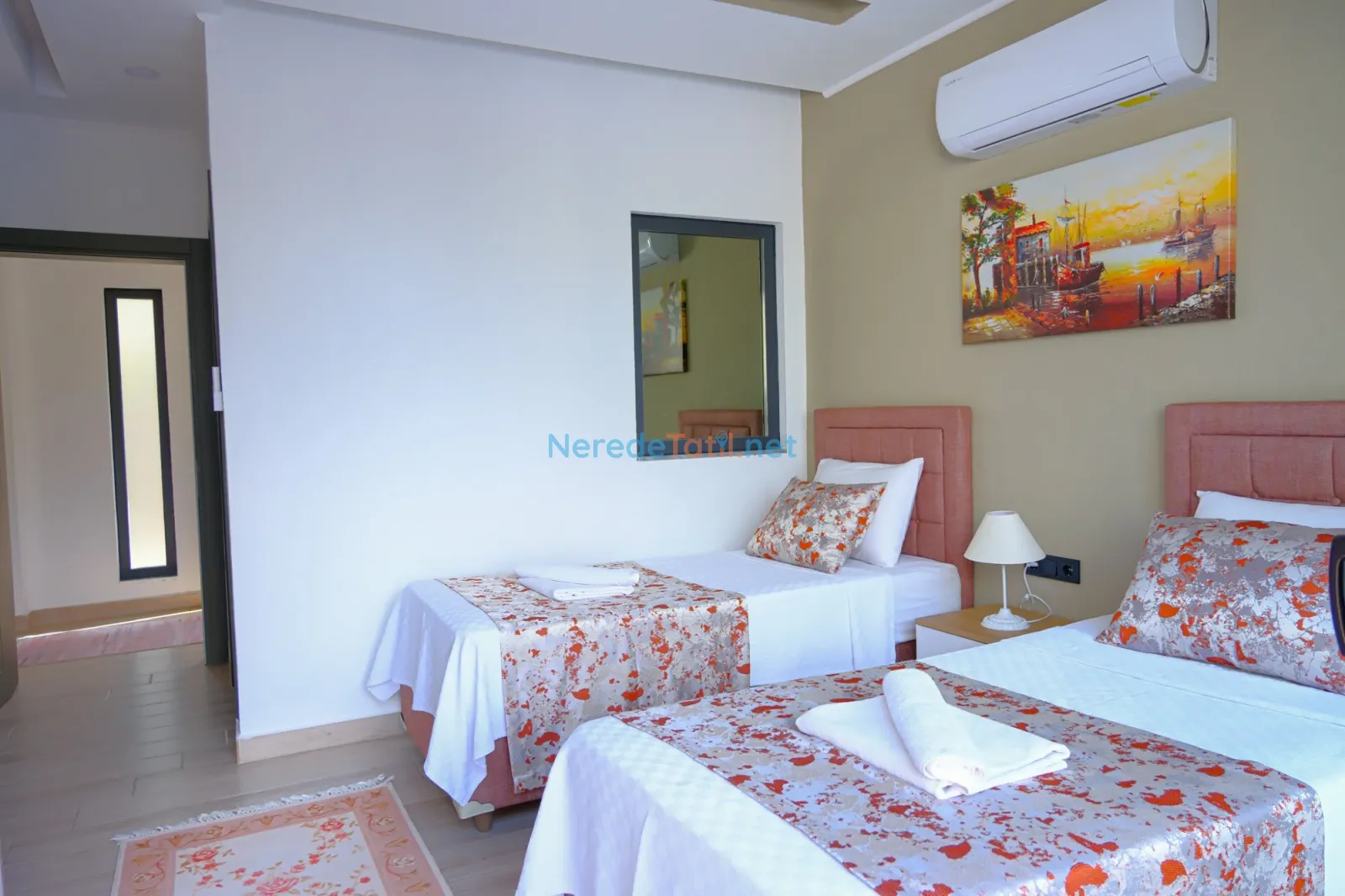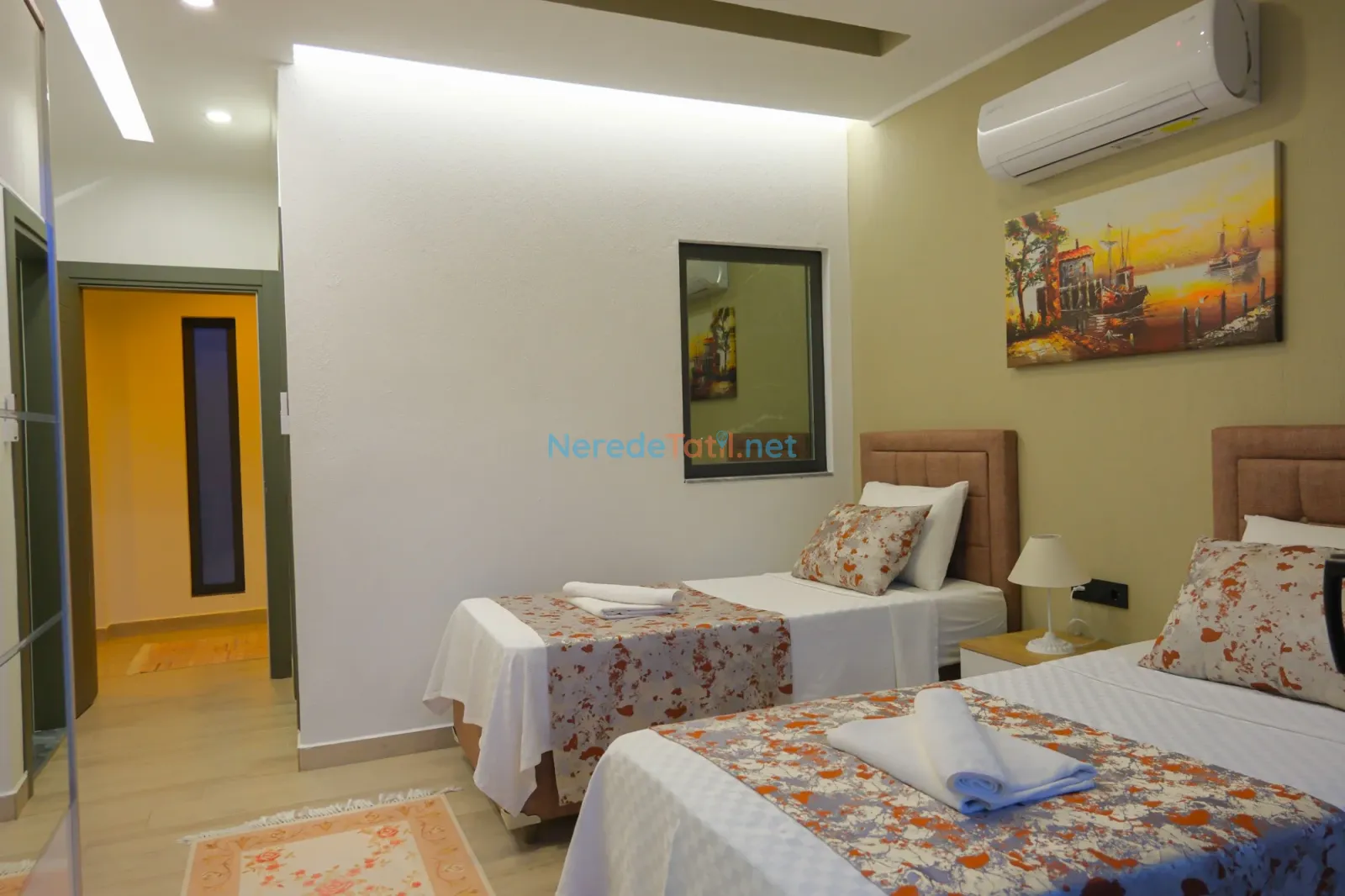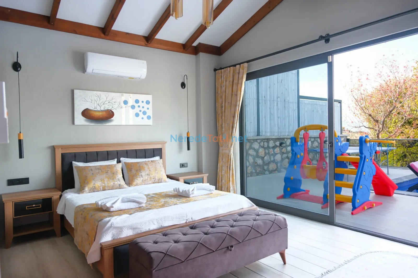 Villada, bir çift kişilik yatak ve iki tek kişilik yatak olmak üzere toplamda iki yatak odası bulunmaktadır. Ayrıca, rahatlık ve konforu ön planda tutan iki banyo ile hizmet vermektedir. Bebekli konuklar için ise bir bebek yatağı mevcuttur.