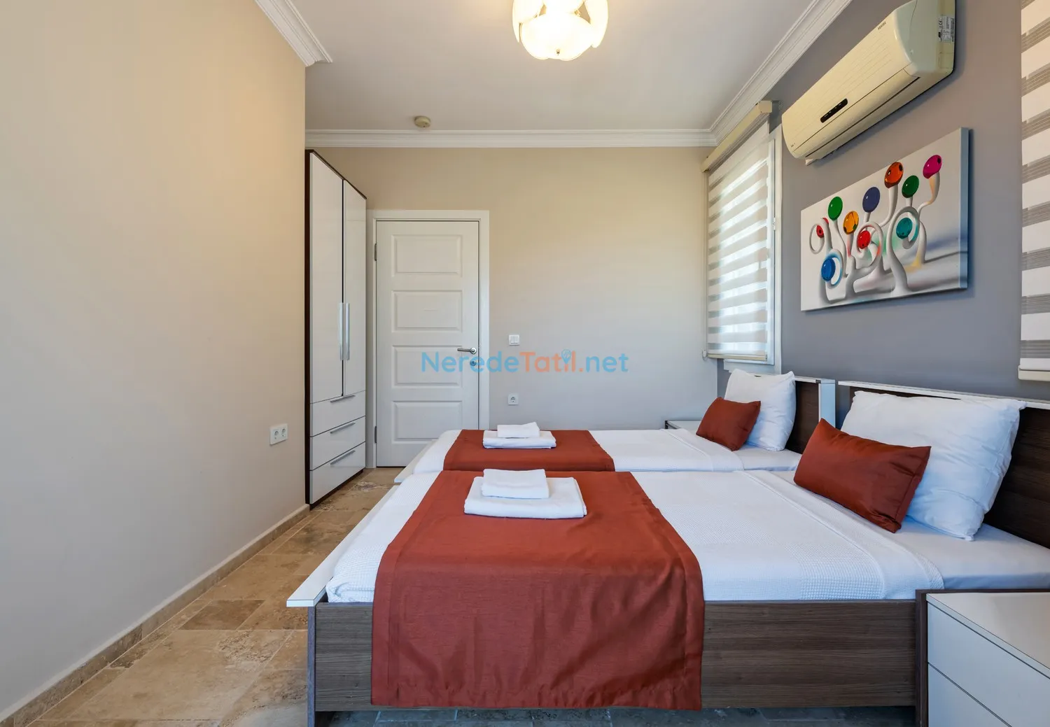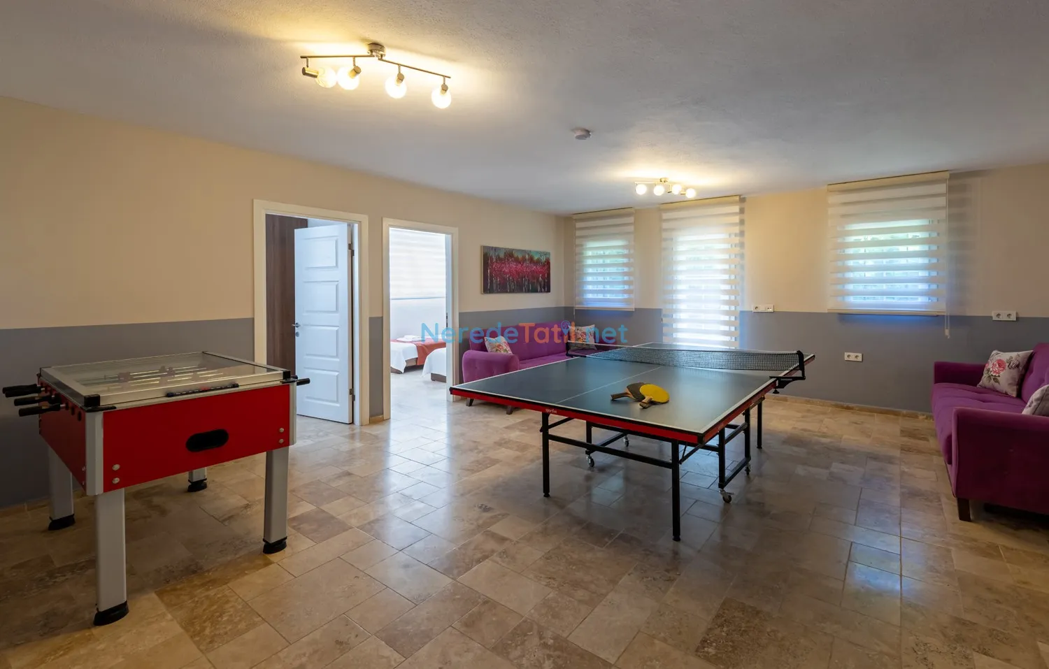 Villamızın en dikkat çeken özelliği, 40 metre genişliğinde ve 100 metre uzunluğunda özel yüzme havuzudur. Havuzun 1.60 metre derinliği, yüzme keyfini doyasıya yaşamanıza olanak sağlar. Bu devasa havuzda güneşin keyfini çıkarabilir veya serin sularında yüzerek rahatlayabilirsiniz.
