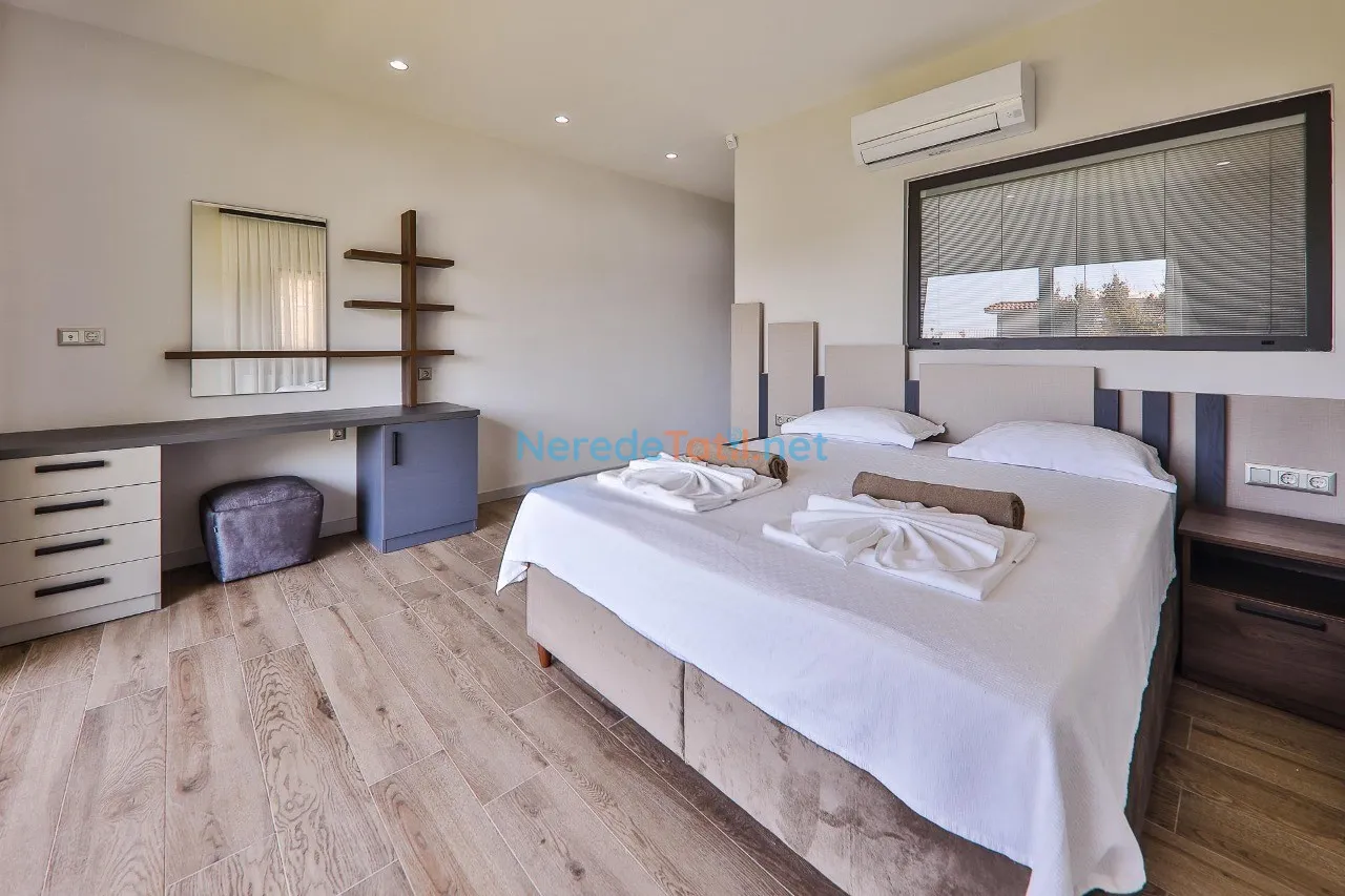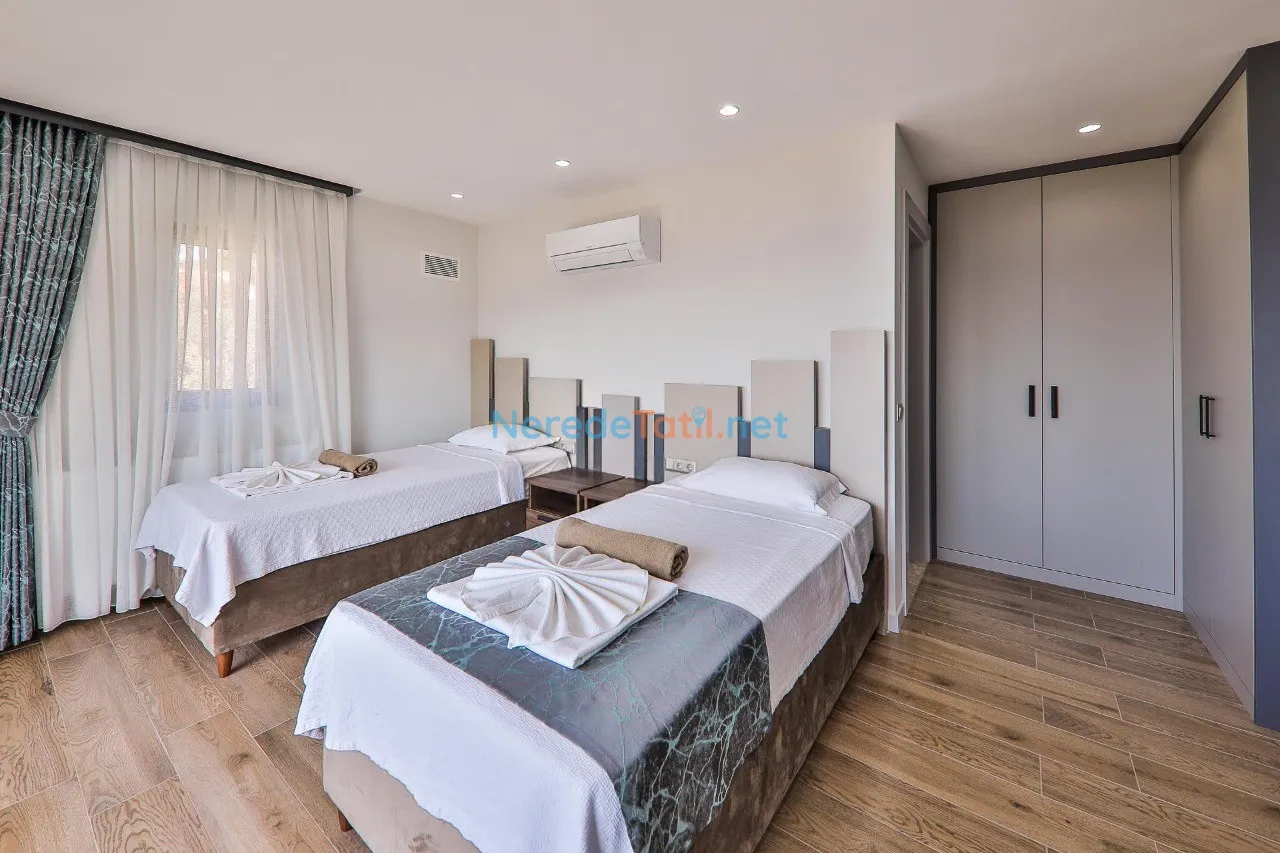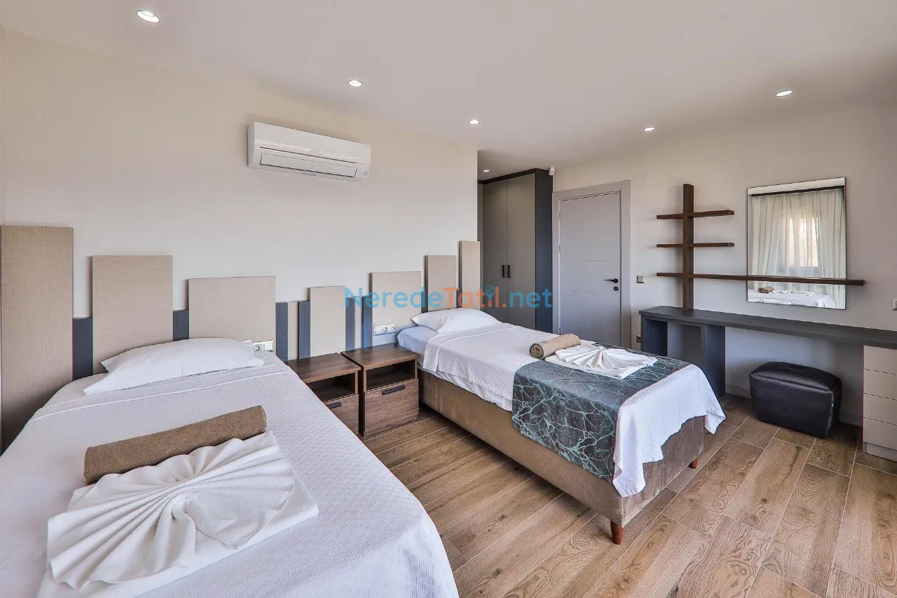 Kızıltaş bölgesinin huzurlu atmosferinde yer alan bu lüks villa, 10 kişilik kapasitesiyle kalabalık aileler ve arkadaş grupları için idealdir. Villada her biri zevkle döşenmiş beş yatak odası bulunmaktadır ve toplamda altı banyo ile misafirlerine konfor sağlamaktadır. Dört adet çift kişilik yatak ve iki adet tek kişilik yatak ile herkes için uygun bir uyku düzeni sunar.