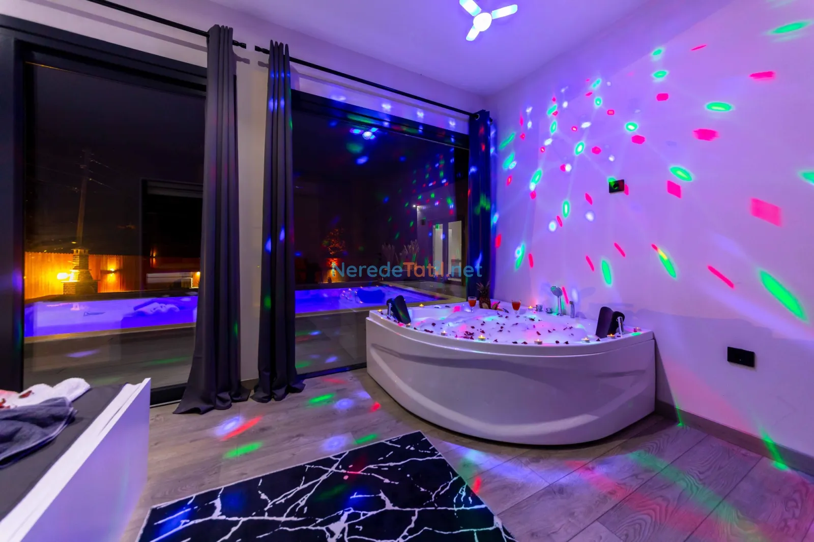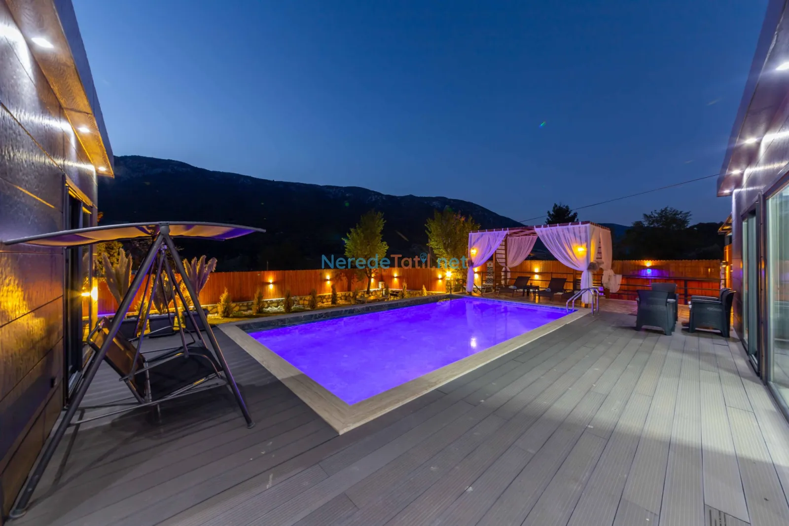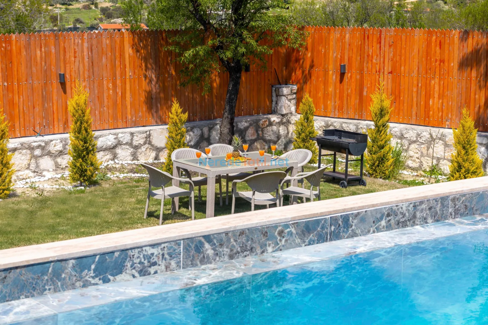 Hacıoğlan'ın büyüleyici doğasında yer alan bu villa, sizi huzurlu bir tatil deneyimine davet ediyor. Villa, özel yüzme havuzu ile konuklarına konforlu ve özel bir alan sunuyor. Havuz, 4 metre genişliğinde, 8 metre uzunluğunda ve 1.55 metre derinliğindedir. Bu sayede serinlemek ve rahatlamak isteyen misafirler için ideal bir mekandır.
