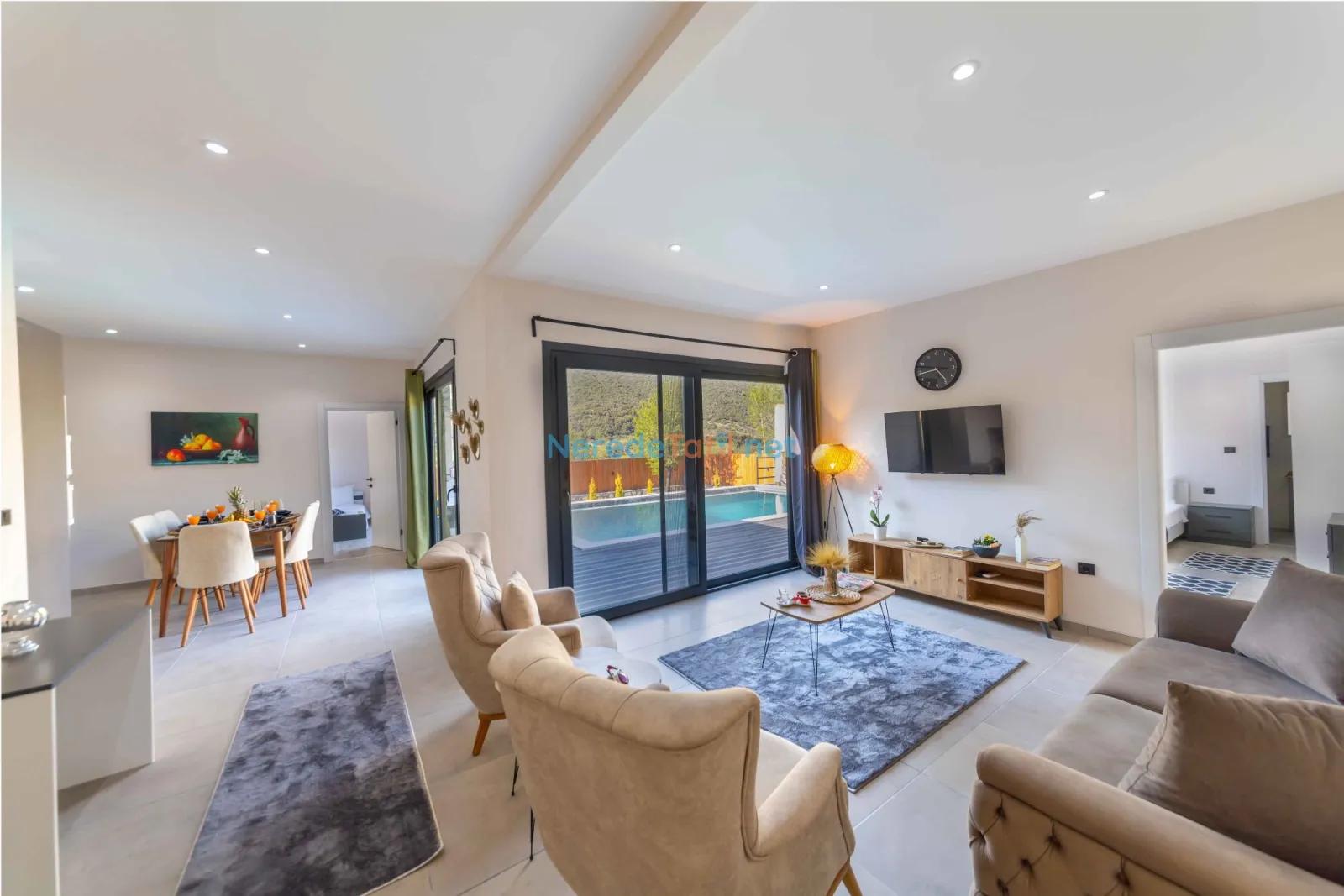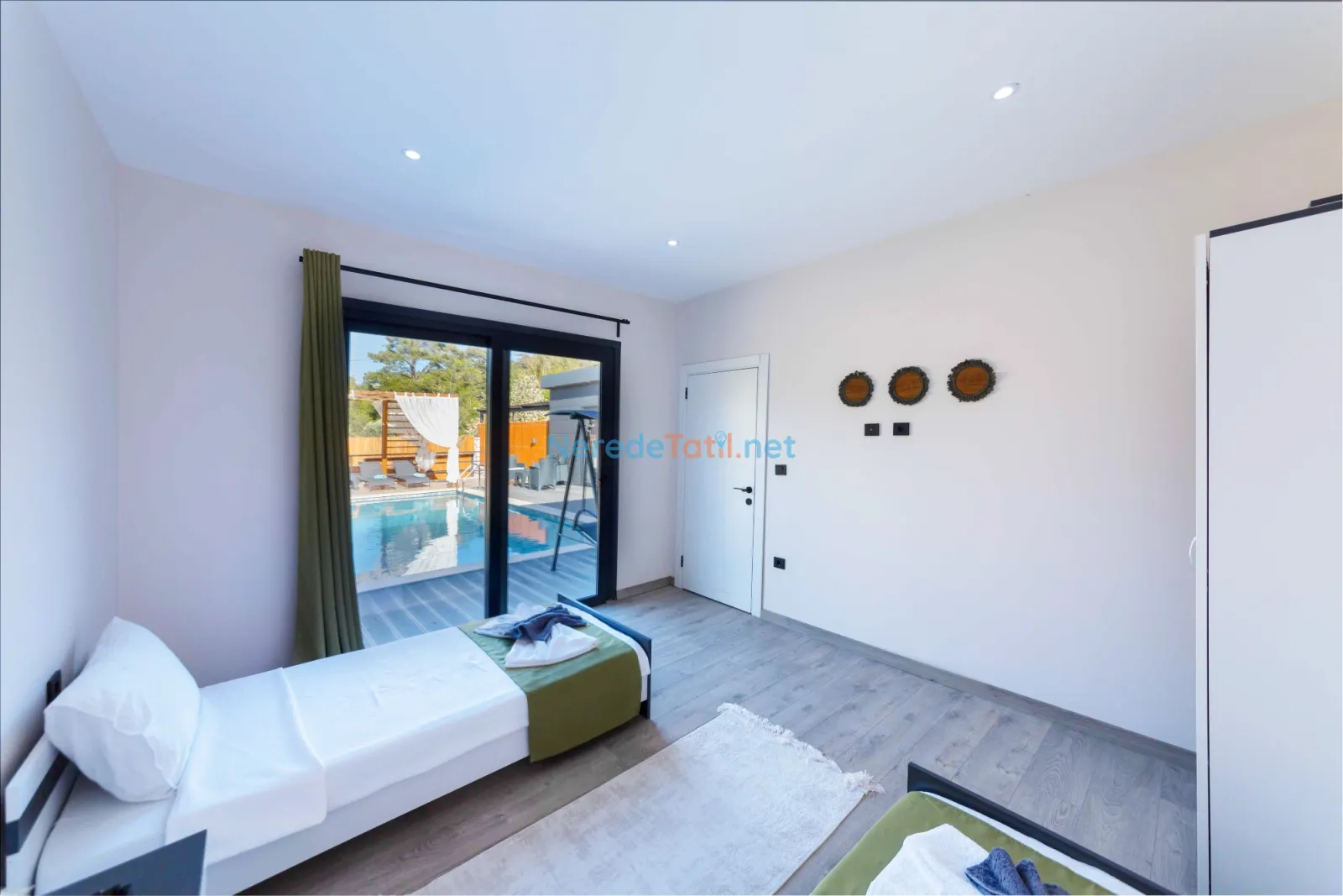 Villada iki yatak odası ve iki banyo bulunmaktadır. Çift kişilik ve tek kişilik yatak seçenekleri ile toplamda dört kişiye kadar konaklama kapasitesine sahiptir. Doğal güzelliklerle çevrili bu villa, kalabalıktan uzak bir tatil arayanlar için mükemmel bir seçenektir.