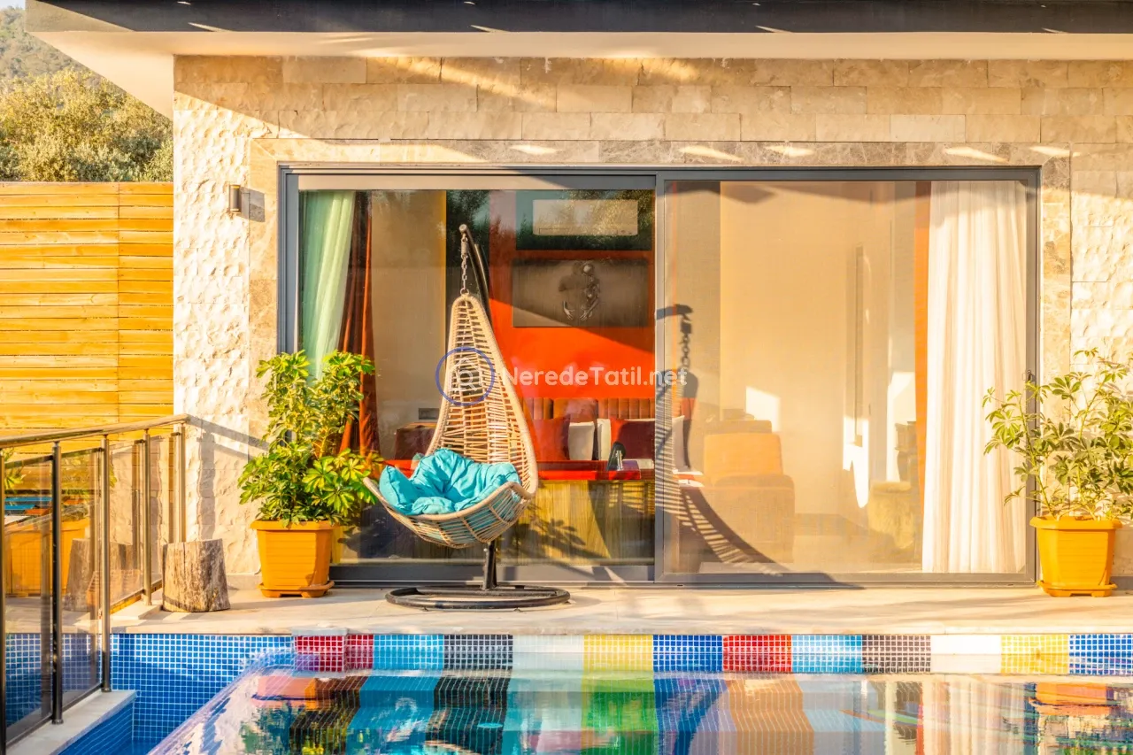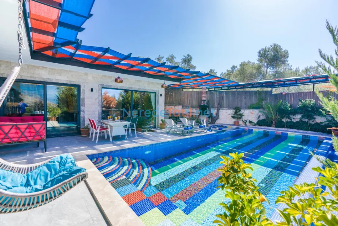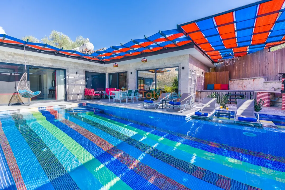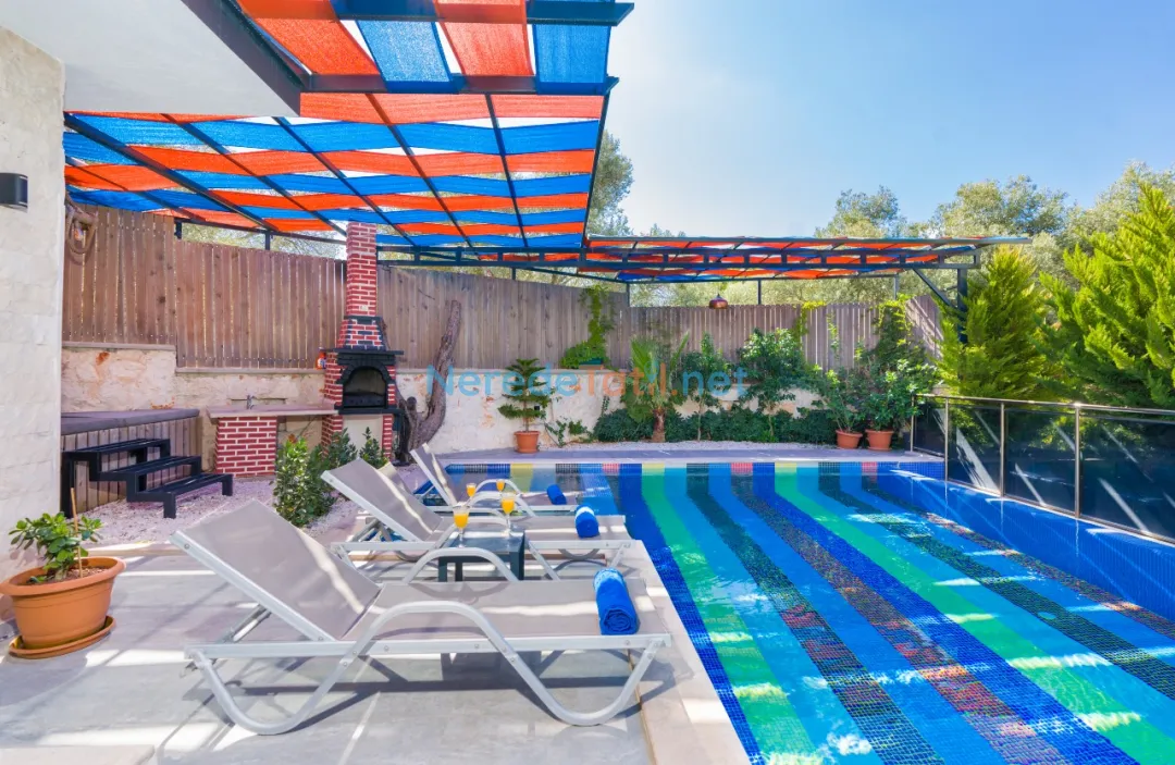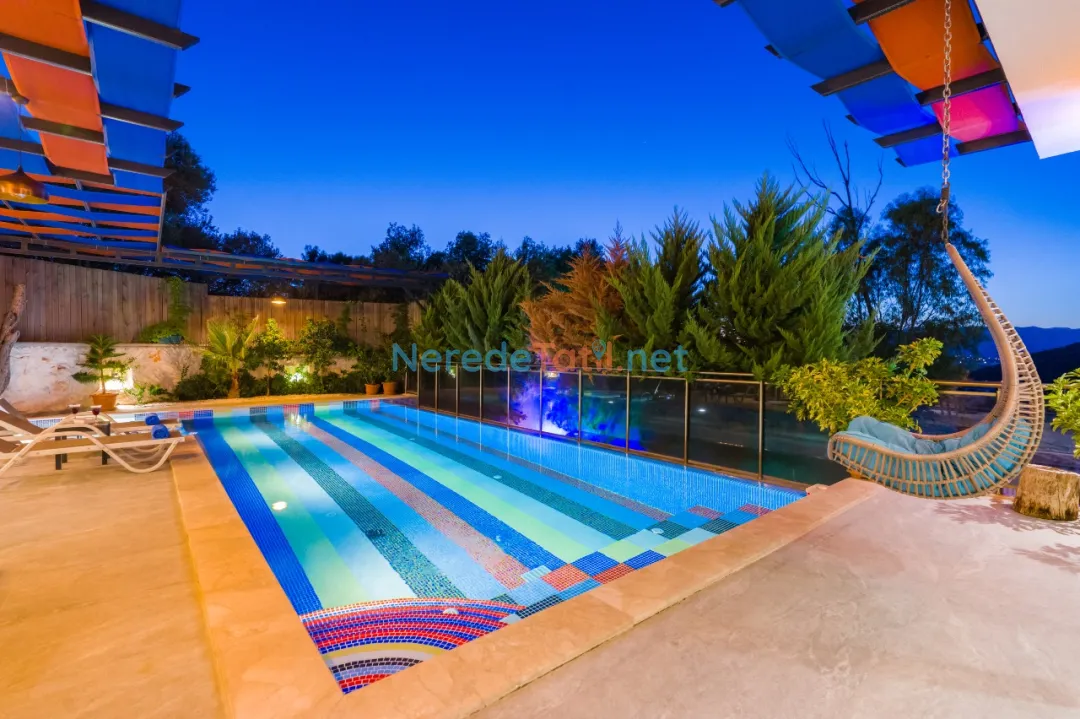 Villanın özel yüzme havuzu, 4 metre genişliğinde, 11.9 metre uzunluğunda ve 1.55 metre derinliğindedir. Çocuklar için güvenli bir çocuk havuzu da sağlanmıştır. Çocuk havuzu 1.85 metre genişliğinde, 1.45 metre uzunluğunda ve 0.45 metre derinliğindedir. Villanın havuzu korunaklı olup, dışarıdan görünmeyi engeller.
