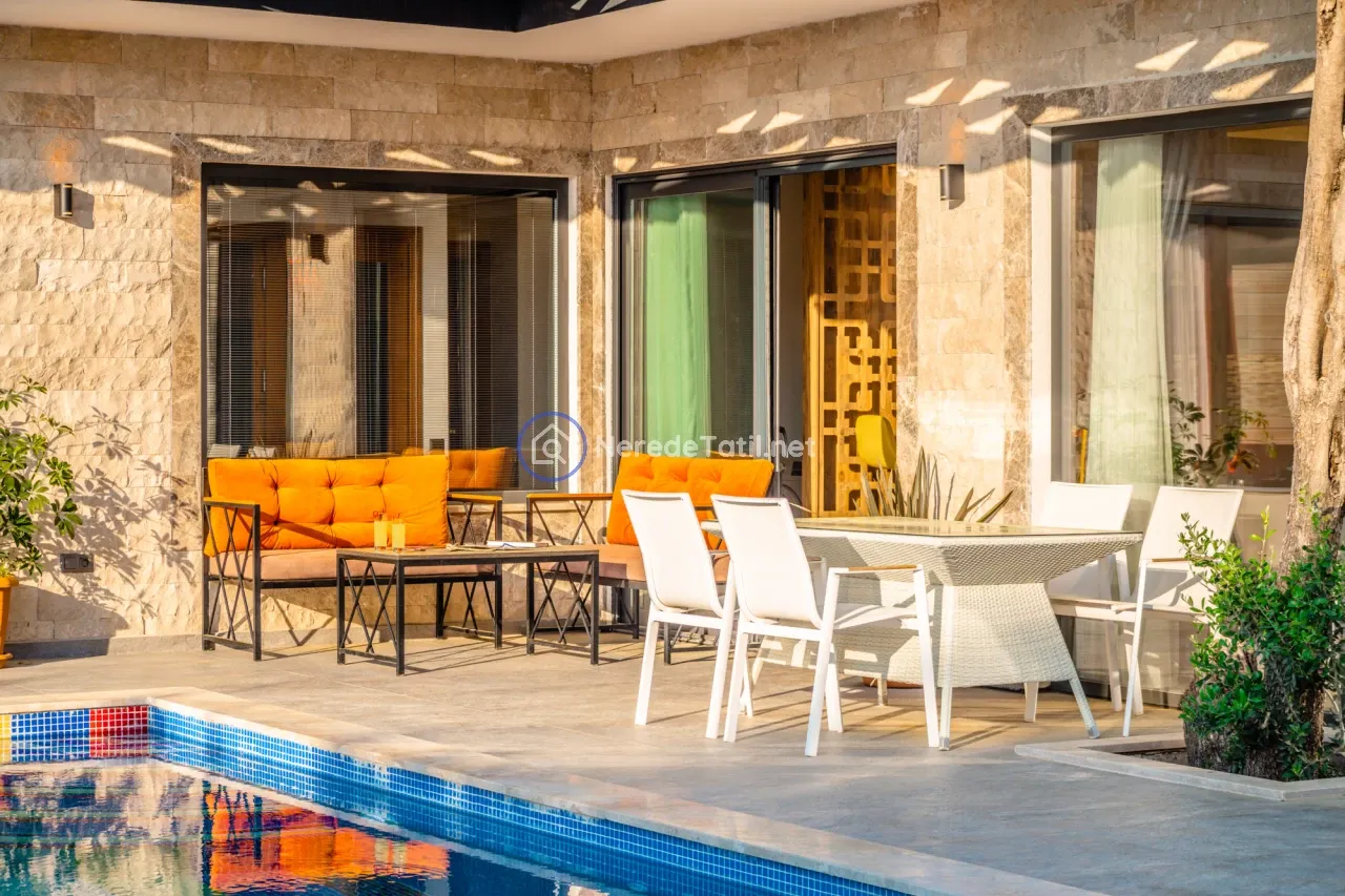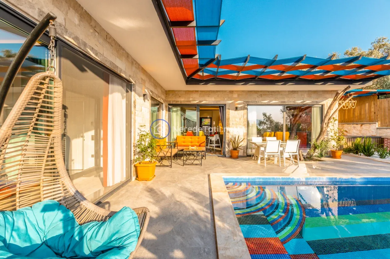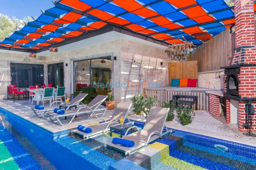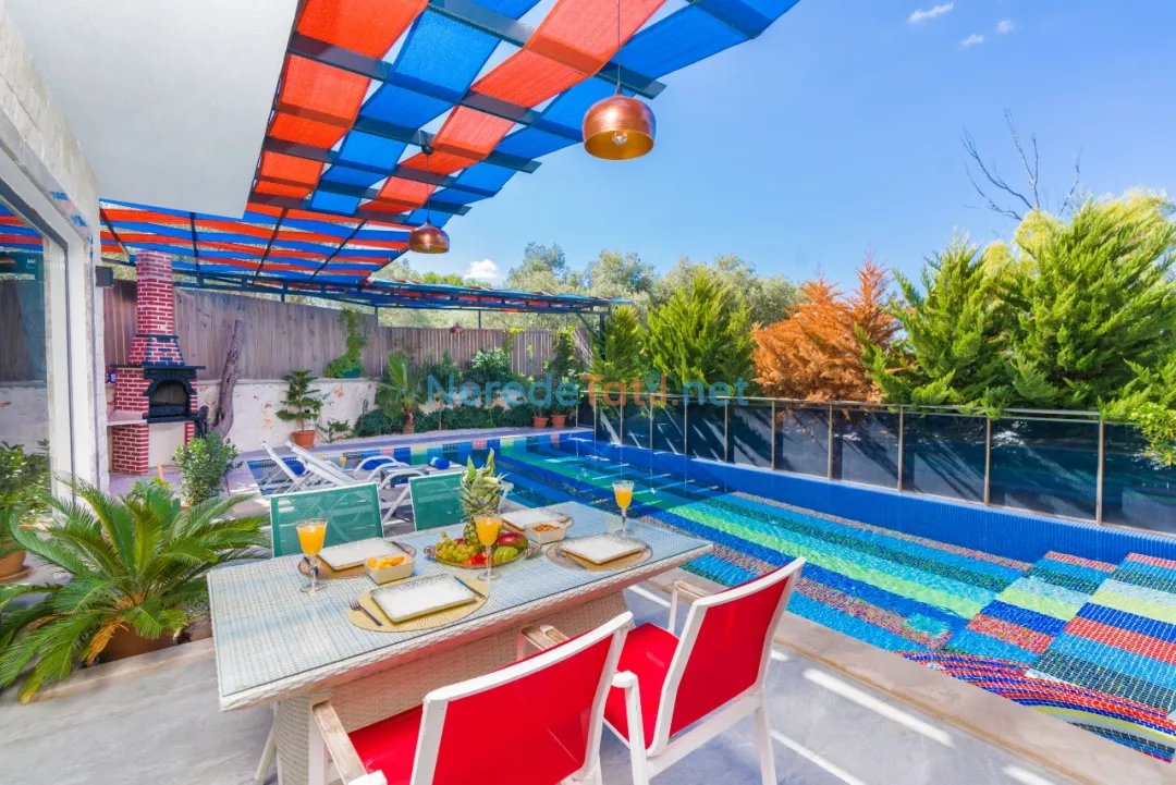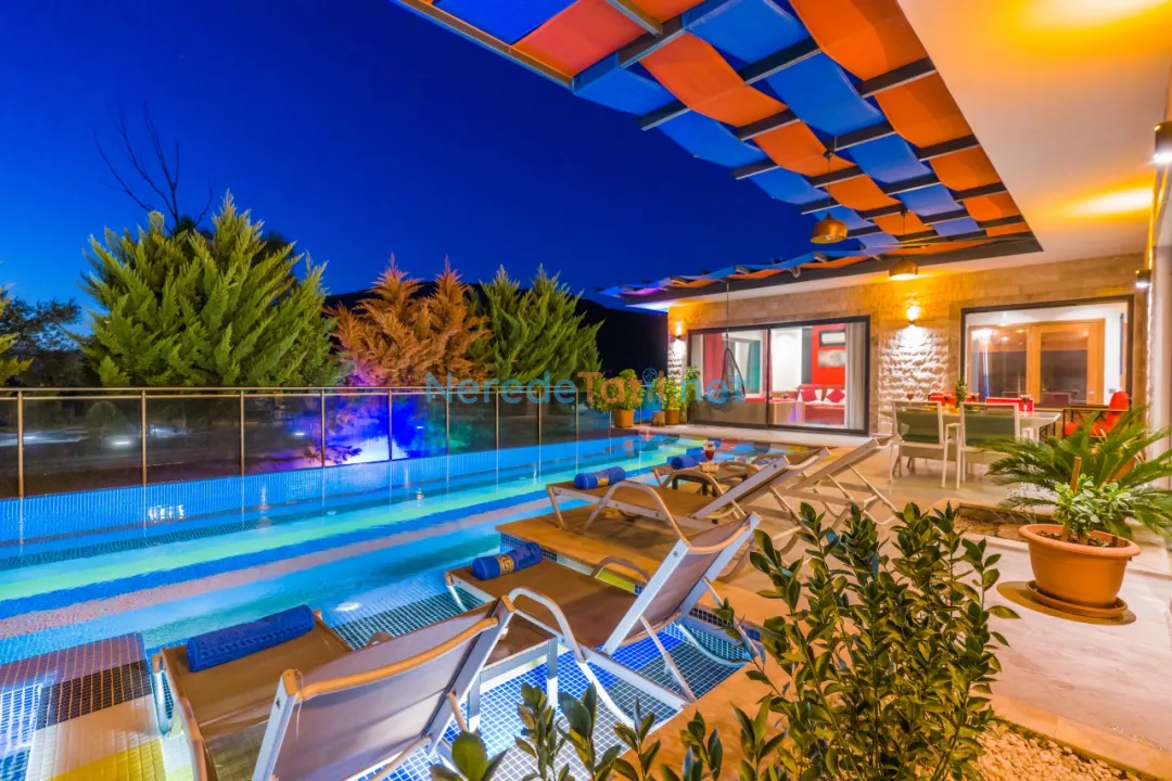 Villanın özel yüzme havuzu, 4 metre genişliğinde, 11.9 metre uzunluğunda ve 1.55 metre derinliğindedir. Çocuklar için güvenli bir çocuk havuzu da sağlanmıştır. Çocuk havuzu 1.85 metre genişliğinde, 1.45 metre uzunluğunda ve 0.45 metre derinliğindedir. Villanın havuzu korunaklı olup, dışarıdan görünmeyi engeller.
