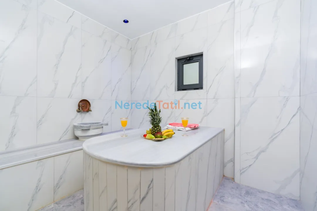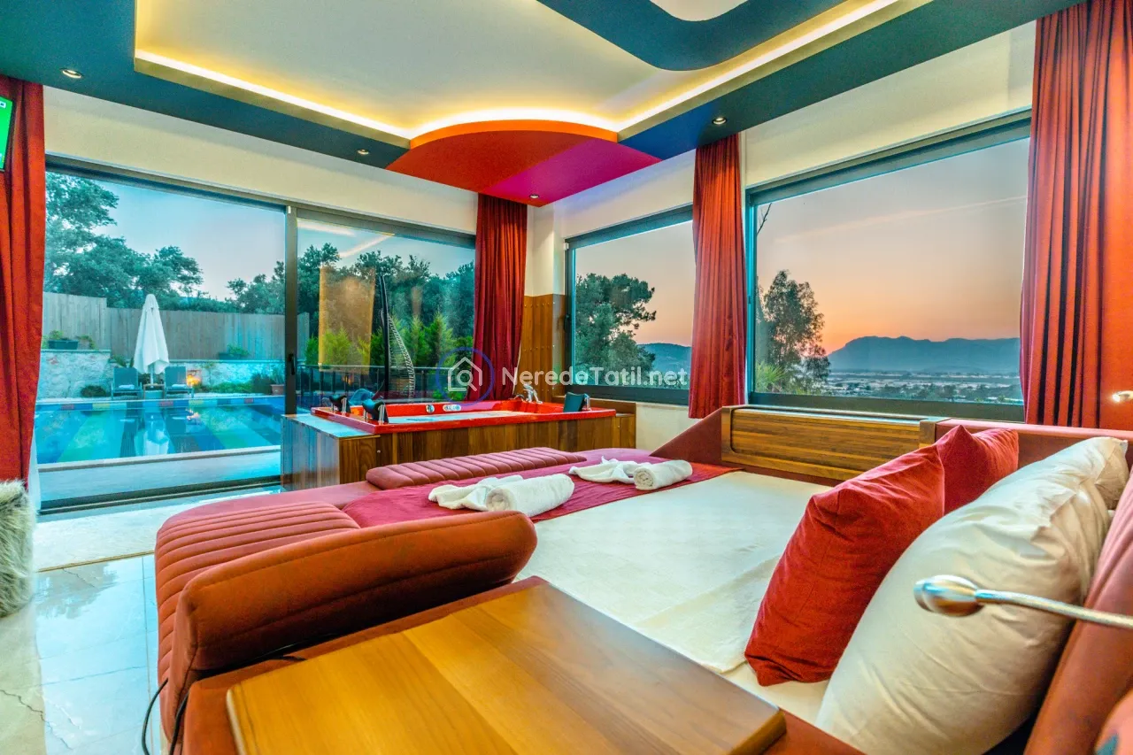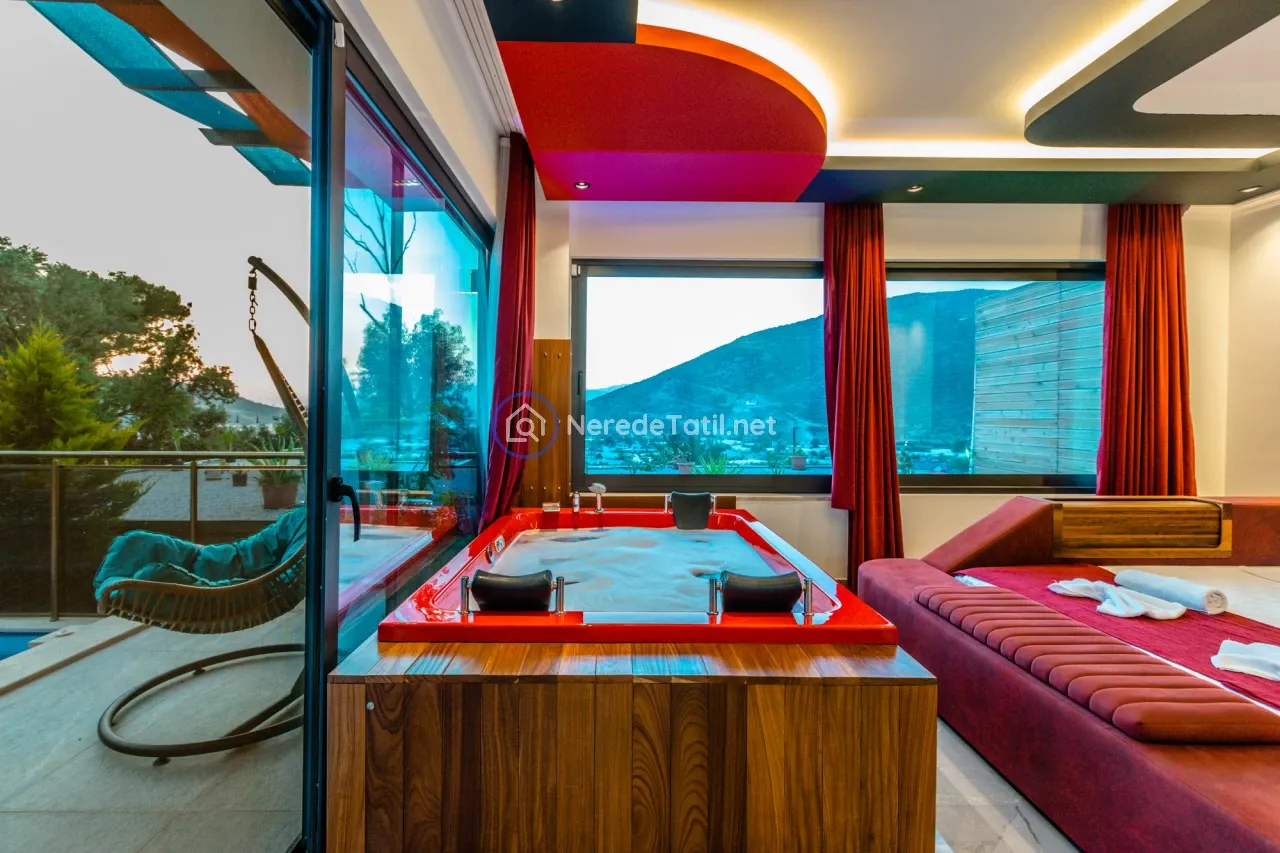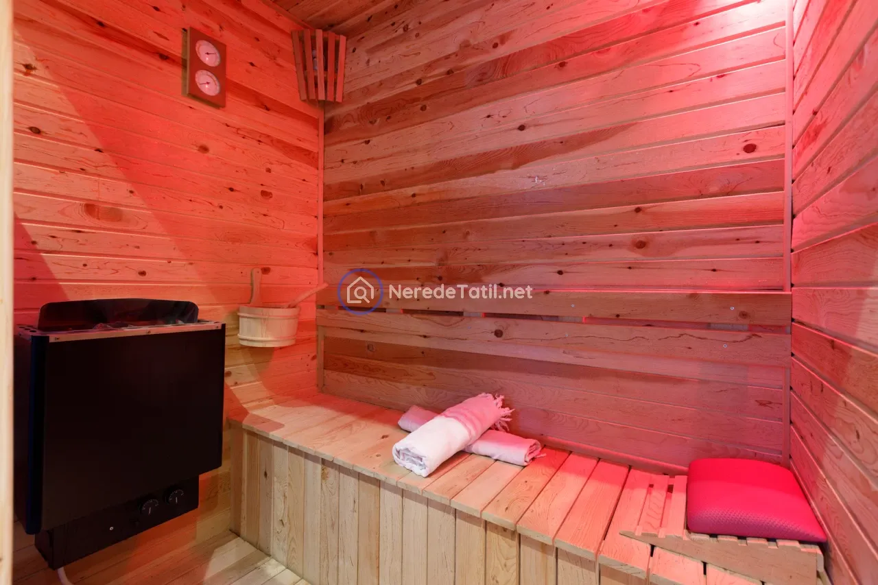 Doğa manzaralı villada, jakuzi ve sauna gibi ekstra lükslerle konforlu bir tatil geçirmeniz mümkün. Keyifli vakit geçirmek isteyenler için langırt da bulunmaktadır. Villanın bahçesinde BBQ mangal yaparak sevdiklerinizle hoş vakit geçirebilirsiniz. Araçla gelen misafirler için otopark imkanı sunulmakta.