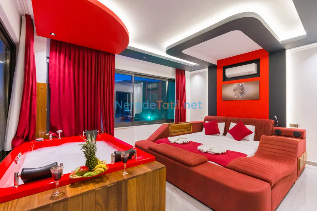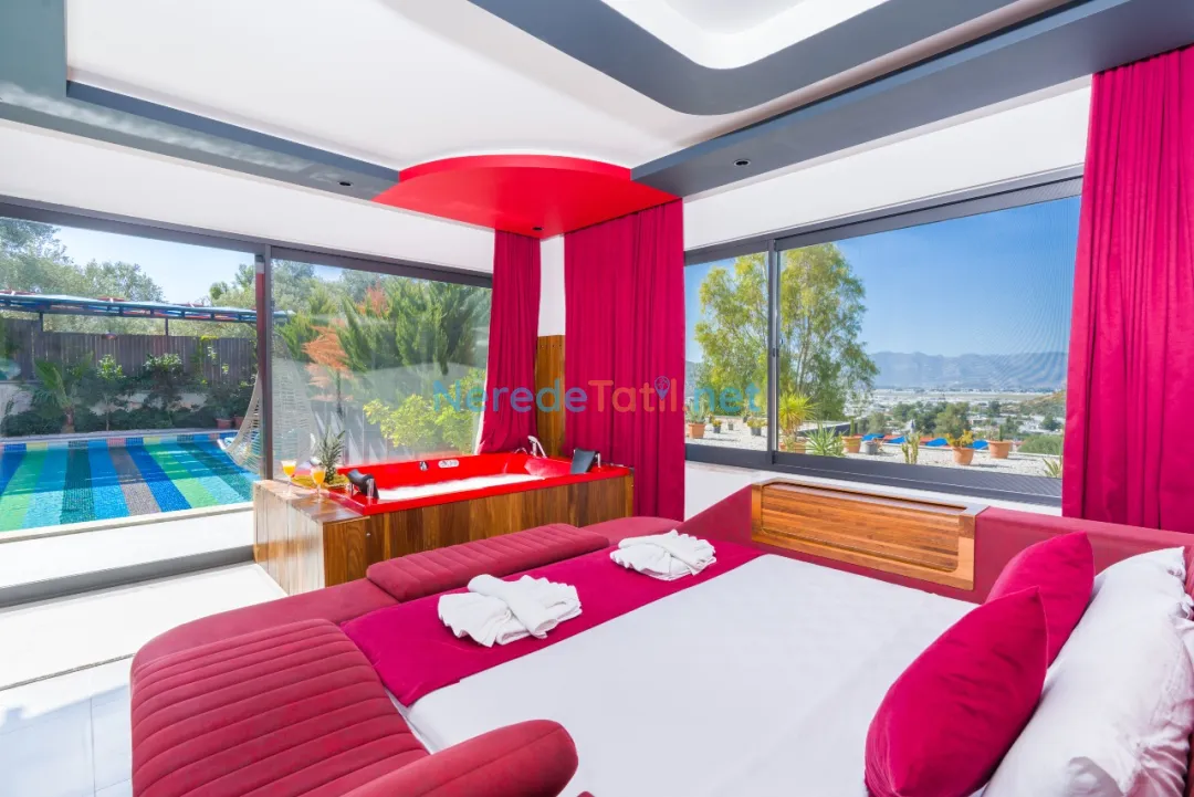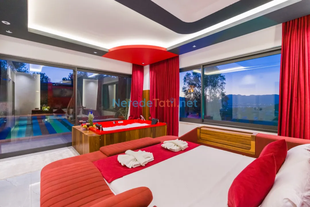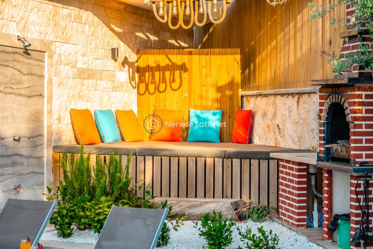 Doğa manzaralı villada, jakuzi ve sauna gibi ekstra lükslerle konforlu bir tatil geçirmeniz mümkün. Keyifli vakit geçirmek isteyenler için langırt da bulunmaktadır. Villanın bahçesinde BBQ mangal yaparak sevdiklerinizle hoş vakit geçirebilirsiniz. Araçla gelen misafirler için otopark imkanı sunulmakta.