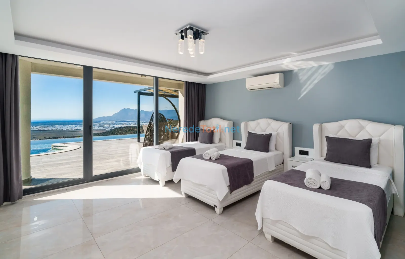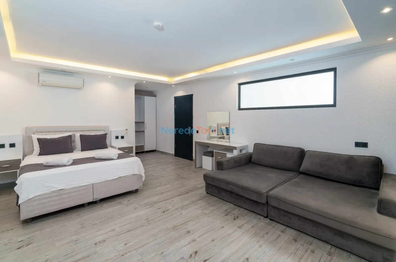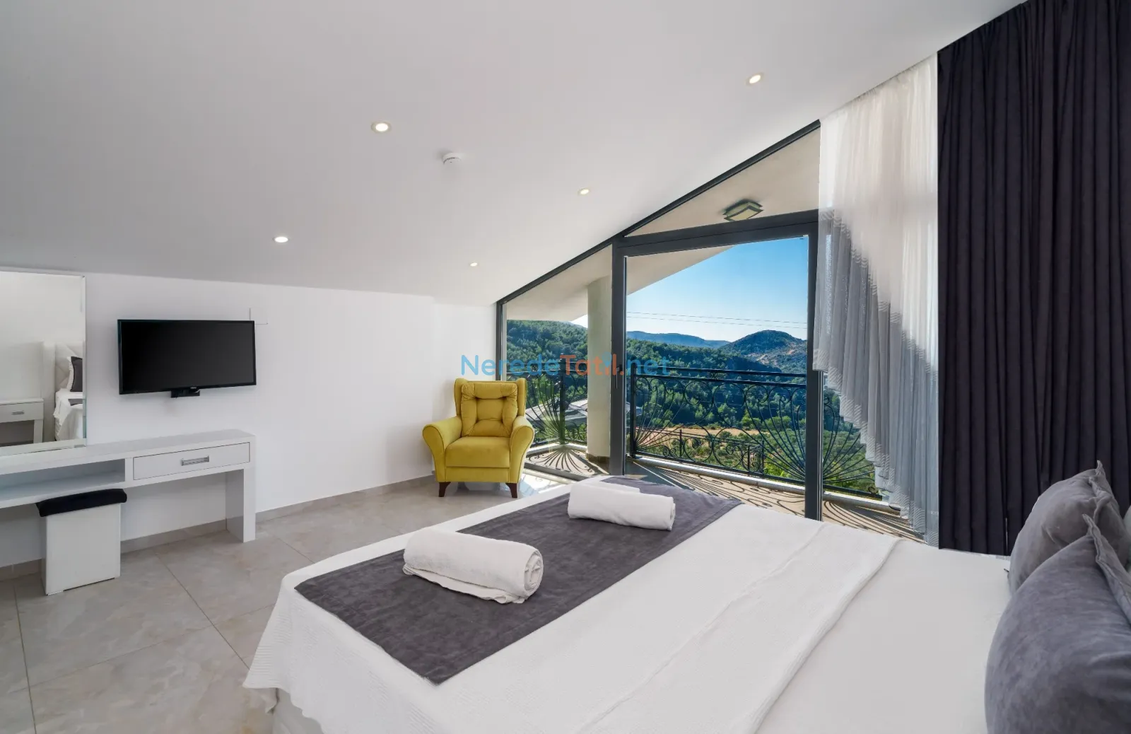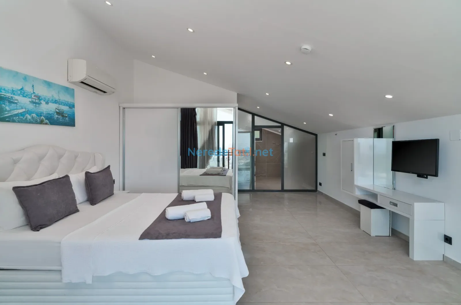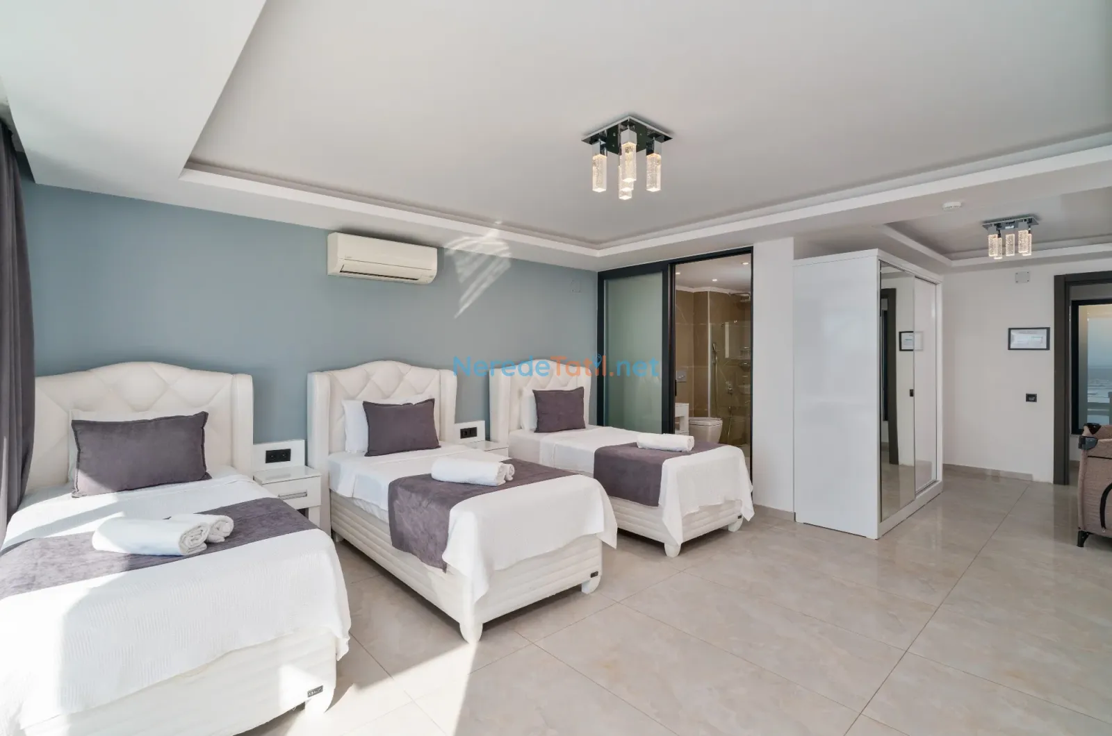 Üzümlü'nün eşsiz doğasında yer alan villamız, geniş kapasitesi ve konforlu donanımıyla misafirlerine unutulmaz bir tatil deneyimi sunuyor. Villamız, toplamda 9 kişilik konaklama kapasitesine sahip olup, dört yatak odası ve dört banyosu ile geniş aileler ve arkadaş grupları için idealdir.