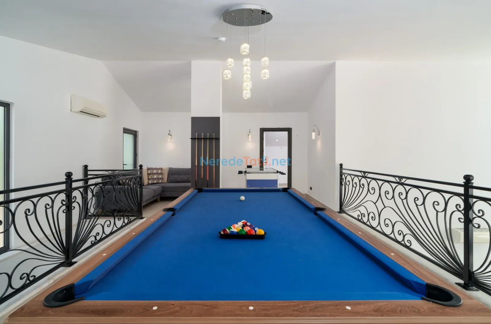 Misafirlerimizin keyifli vakit geçirebilmeleri için özel yüzme havuzumuz bulunmaktadır. Havuzun ölçüleri 5 metre eni, 13 metre boyu ve 1,4 metre derinliği ile oldukça geniştir. Ayrıca, çocuklarımızın güvenle oynayabileceği çocuk havuzu da villamızda yer almaktadır. Çocuk havuzunun boyutları 1,5 metre eninde, 2 metre boyunda ve 0,7 metre derinliğindedir.