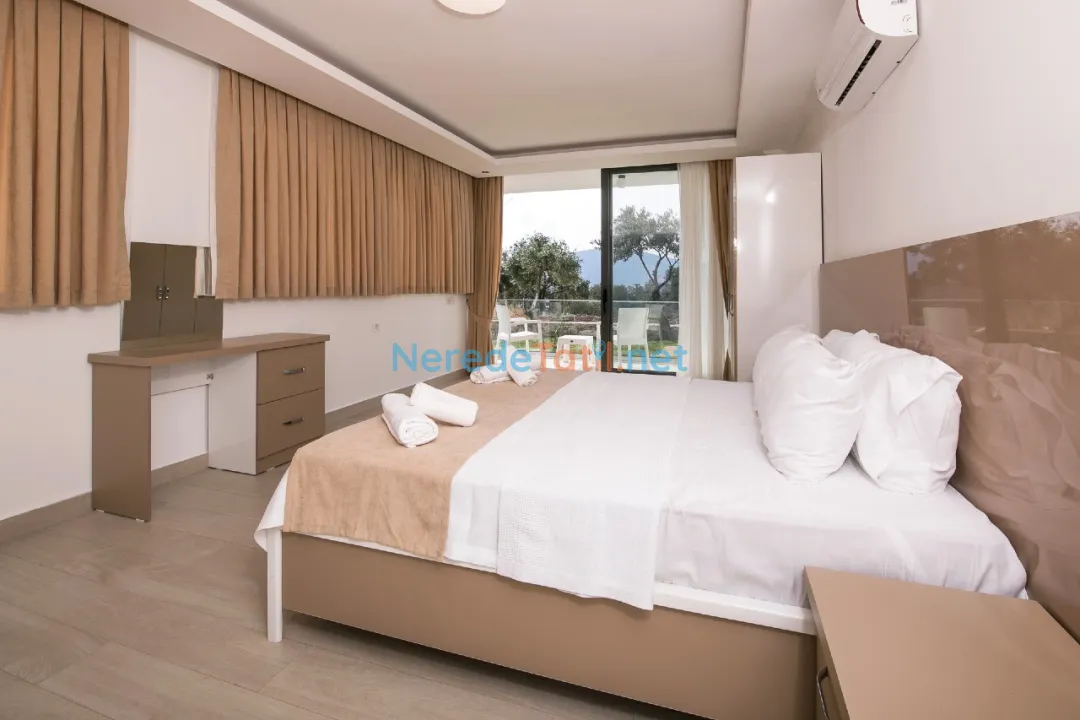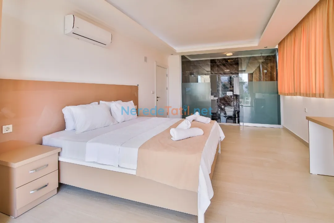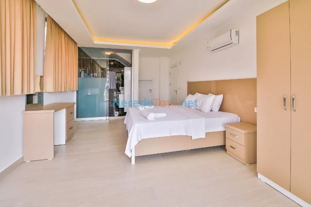 * 2. Yatak Odası: Çift kişilik yatak, makyaj masası, elbise askılığı, klima, özel banyo