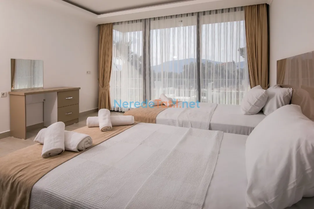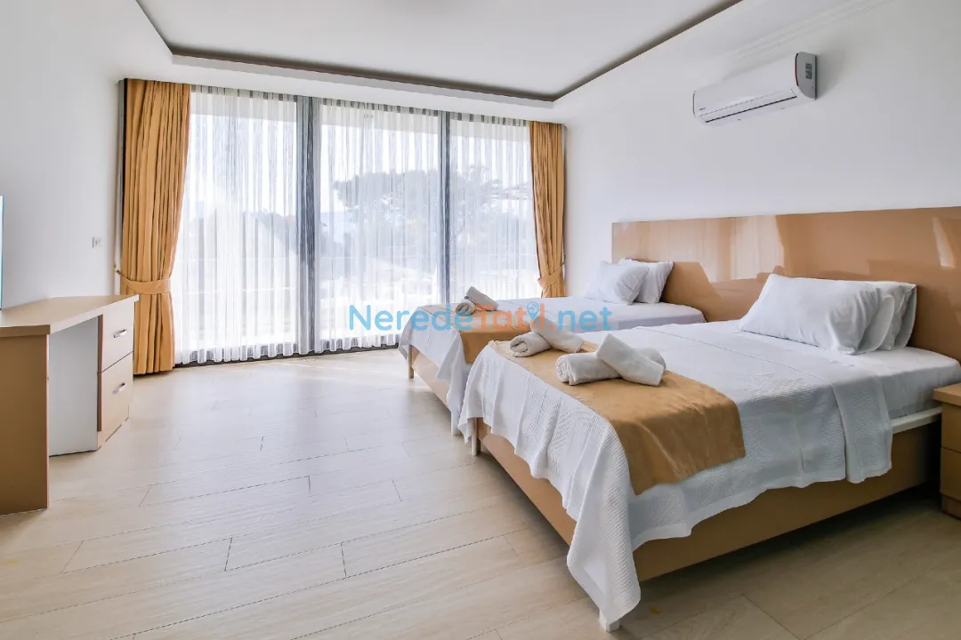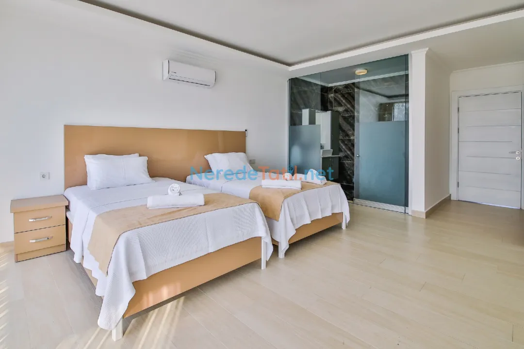 * 3. Yatak Odası: 2 adet tek kişilik yatak, makyaj masası, elbise askılığı, klima, özel banyo