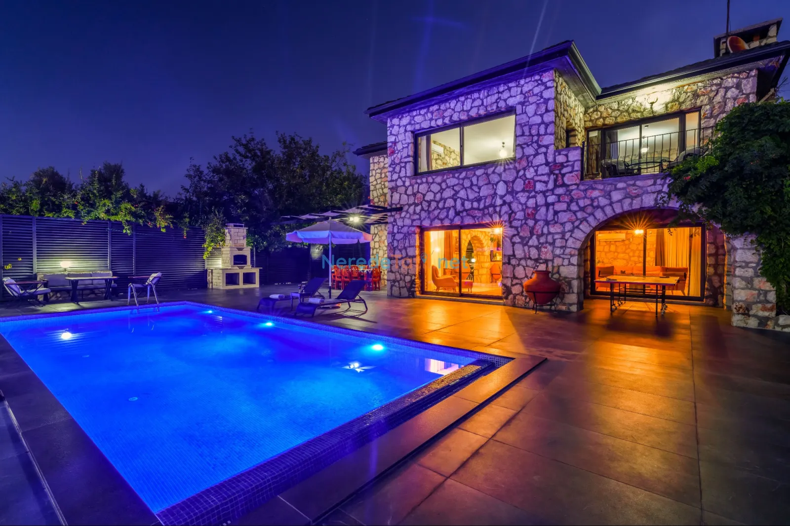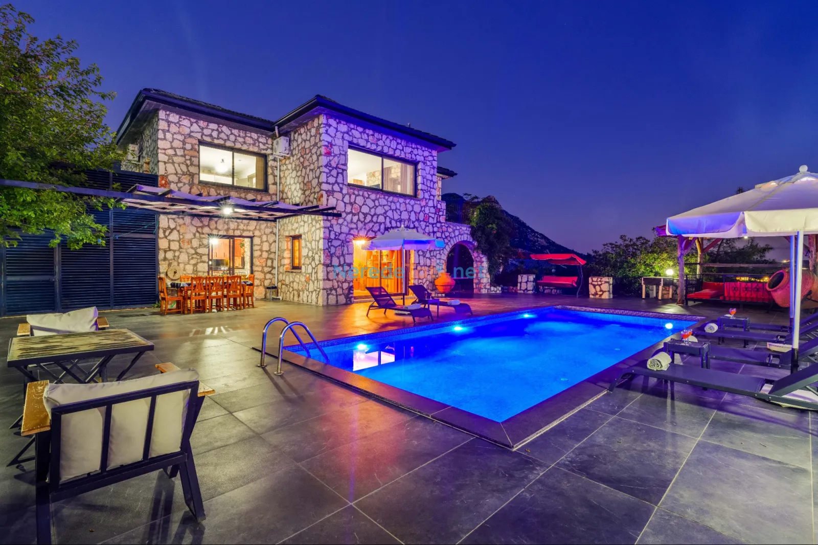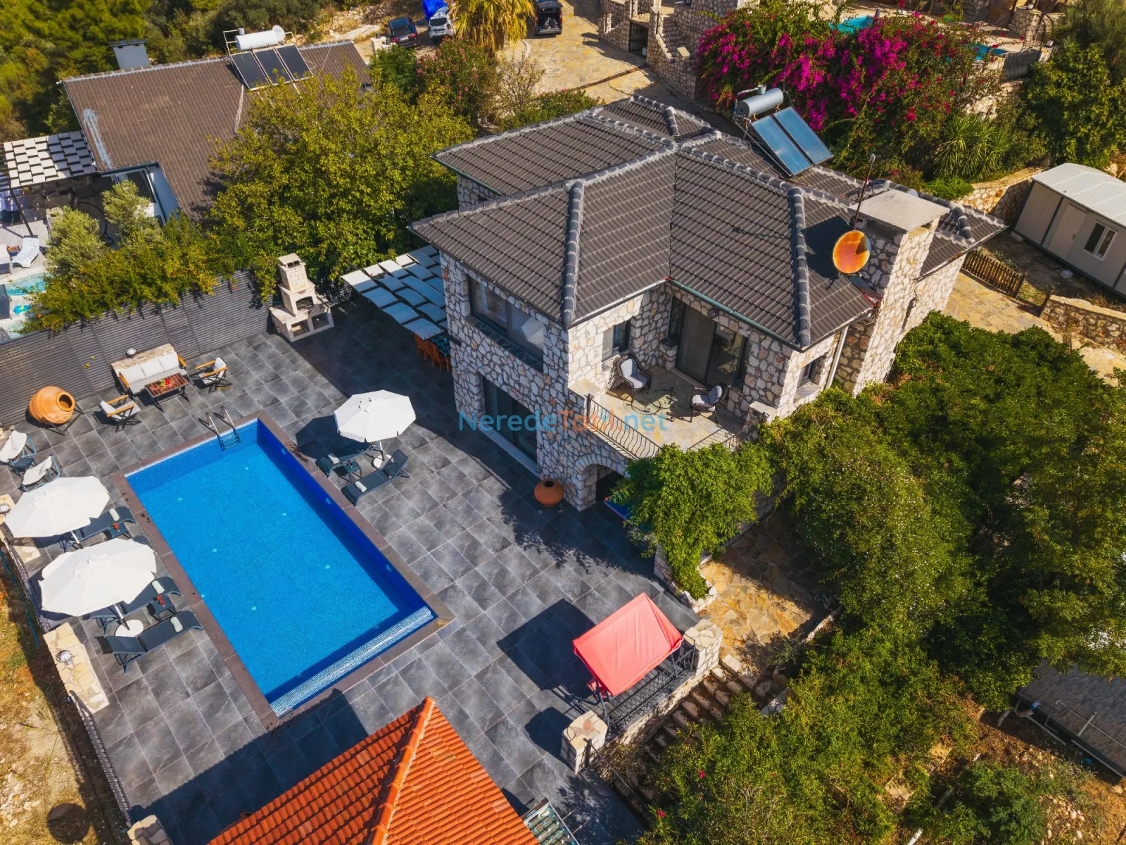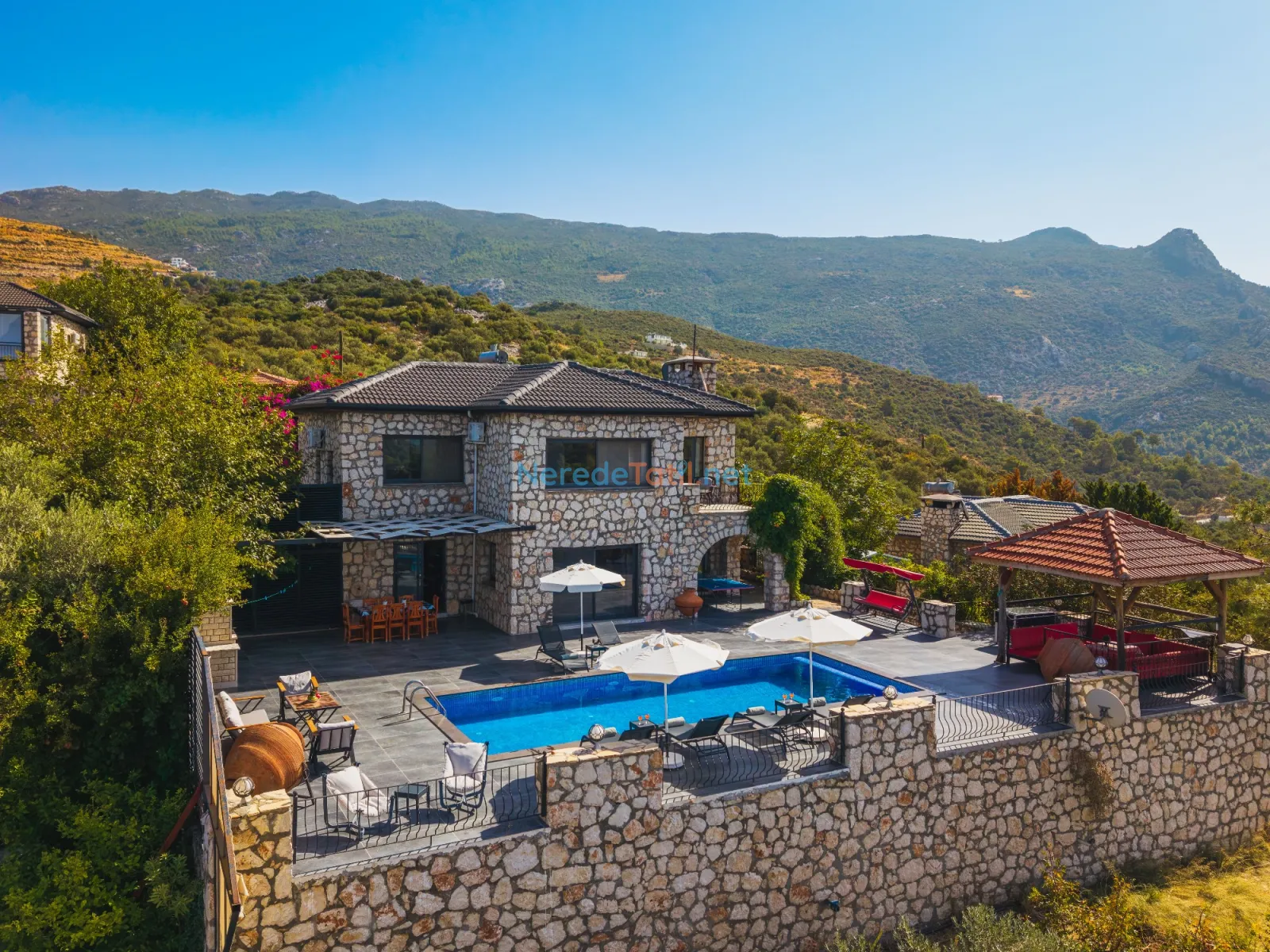 Villanın dikkat çekici özelliklerinden biri de özel yüzme havuzudur. Havuz 4,5 metreye 9 metre boyutlarında ve 1,86 metre derinliğindedir. Havuzda keyifli vakit geçirirken, doğanın tadını çıkarabilirsiniz.