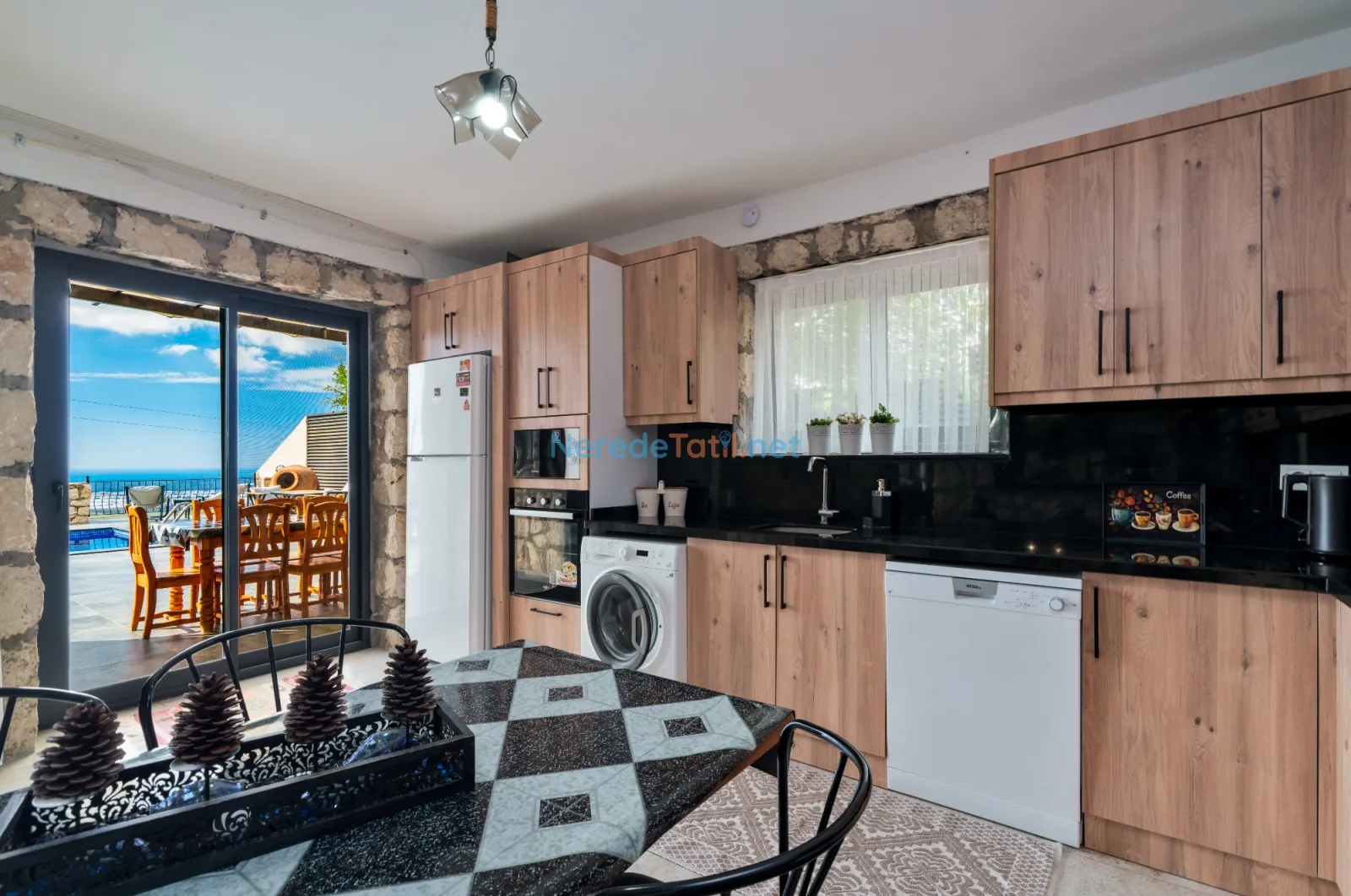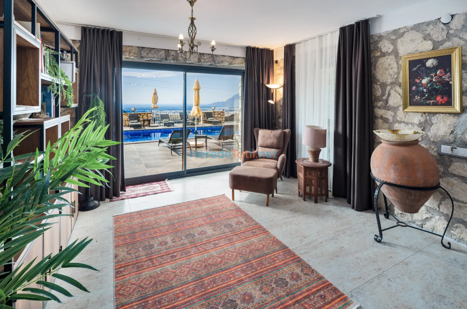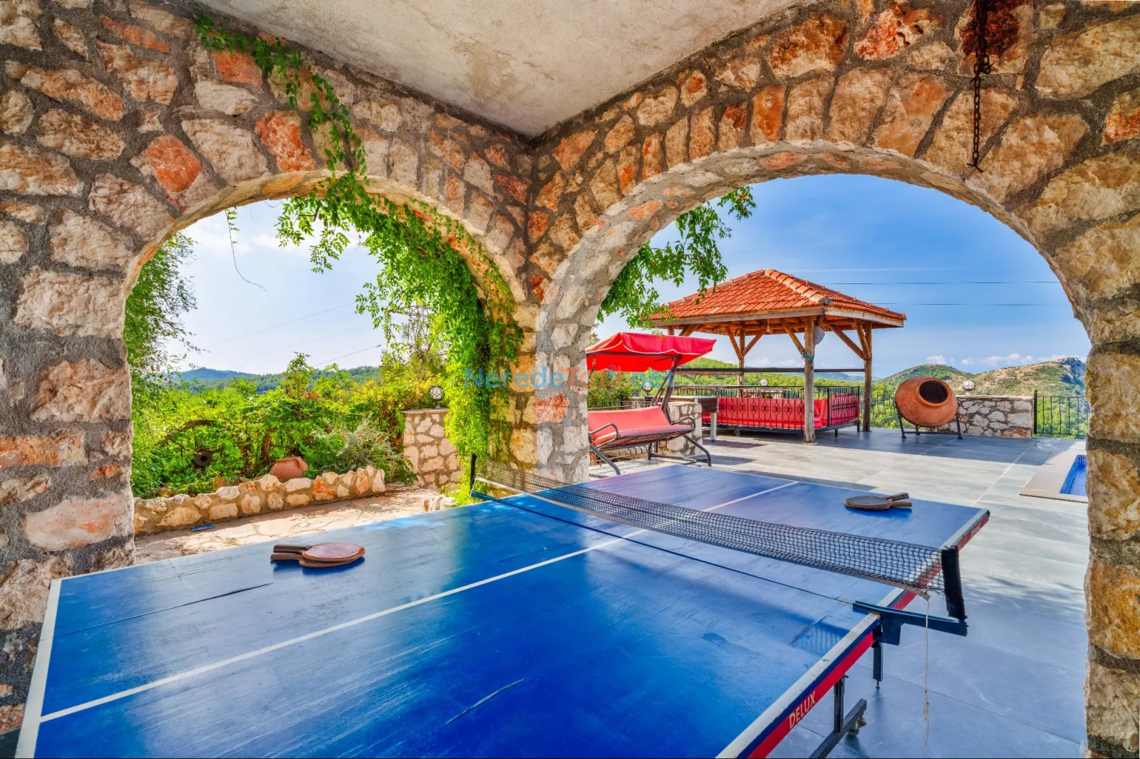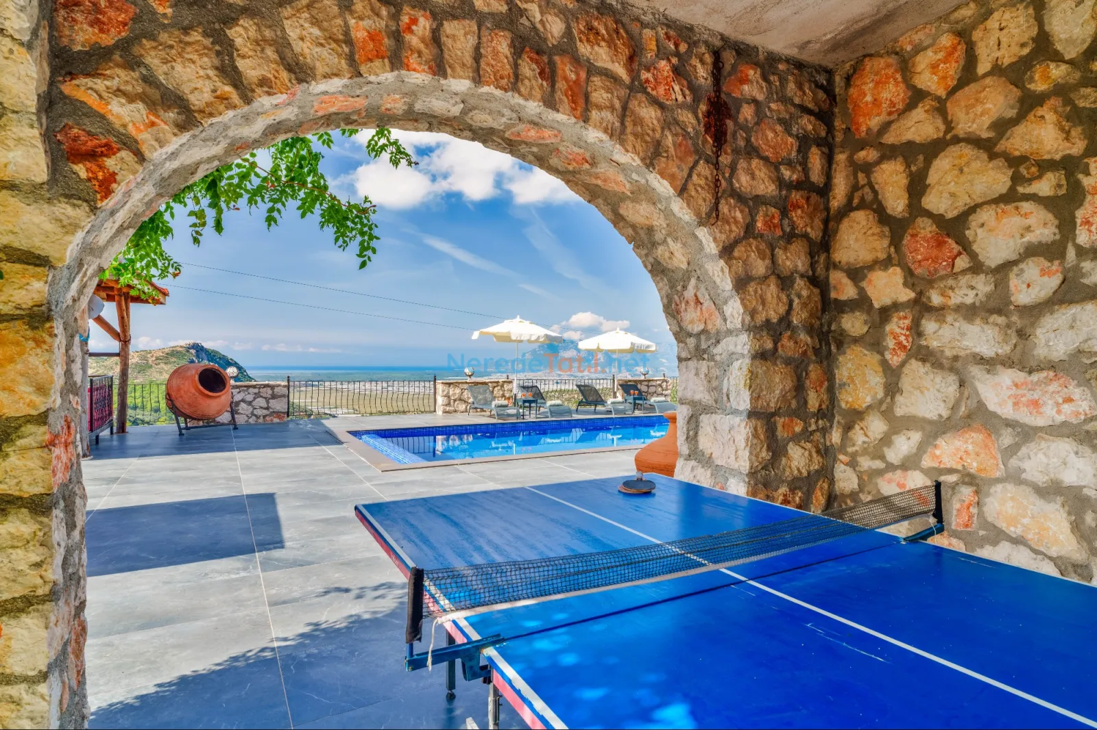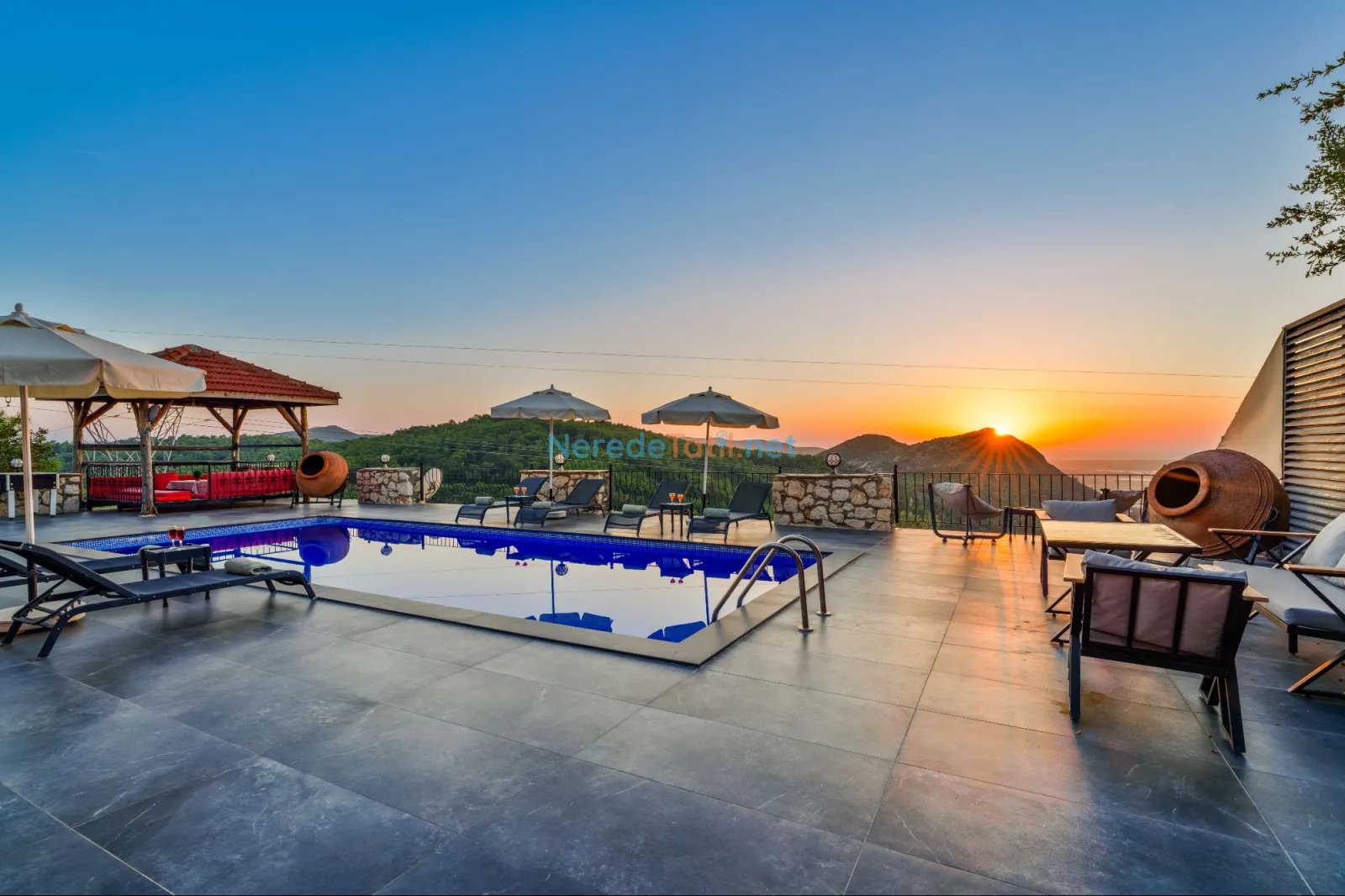 Villanın dikkat çekici özelliklerinden biri de özel yüzme havuzudur. Havuz 4,5 metreye 9 metre boyutlarında ve 1,86 metre derinliğindedir. Havuzda keyifli vakit geçirirken, doğanın tadını çıkarabilirsiniz.