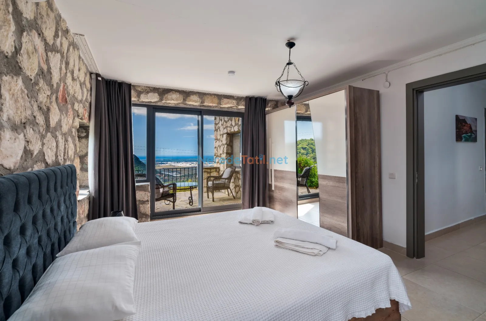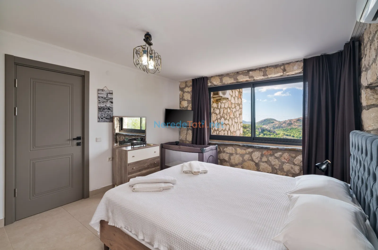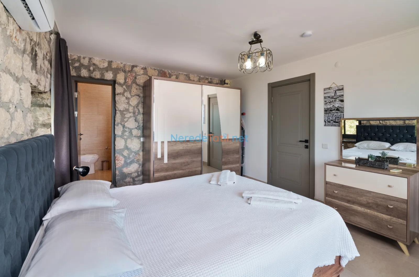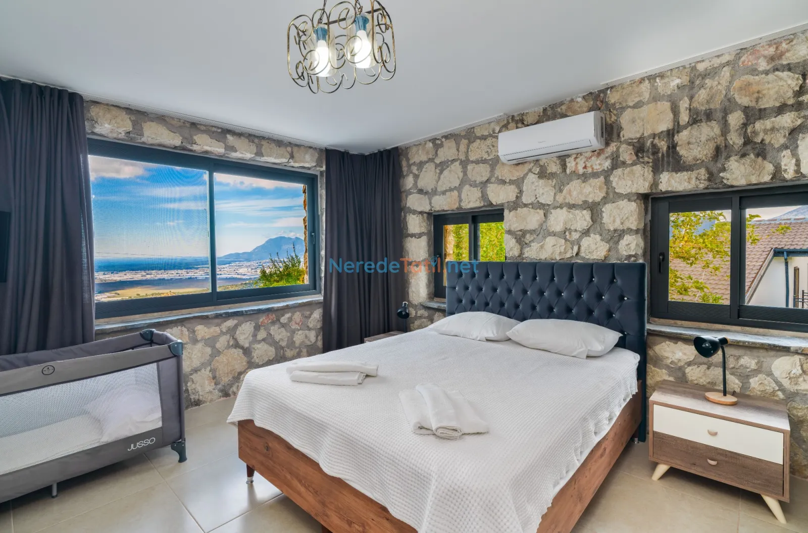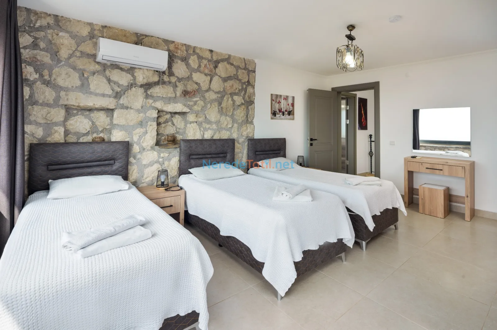Üzümlü'de yer alan bu şık villa, huzurlu bir tatil için ideal bir seçenektir. Villanın geniş ve rahat bir tasarımı vardır, sekiz kişiye kadar konaklama kapasitesi sunar. Yatak odalarında iki adet çift kişilik ve dört adet tek kişilik yatak bulunmakta, ayrıca bebek yatağı da mevcuttur.
