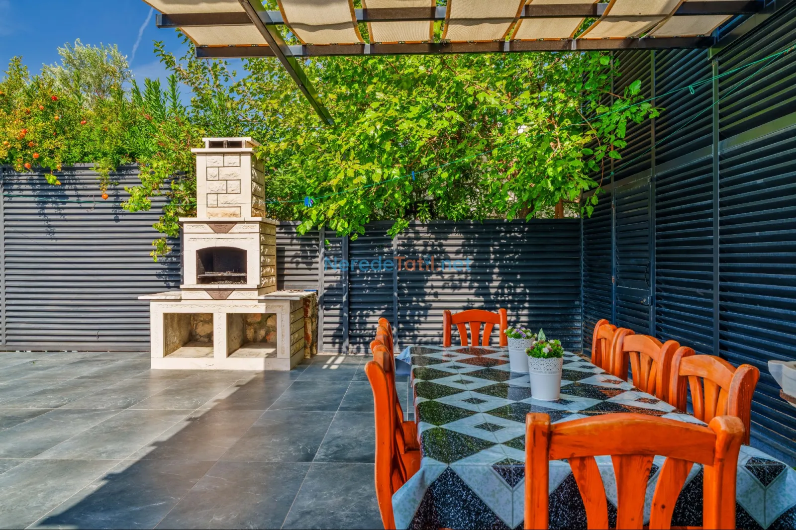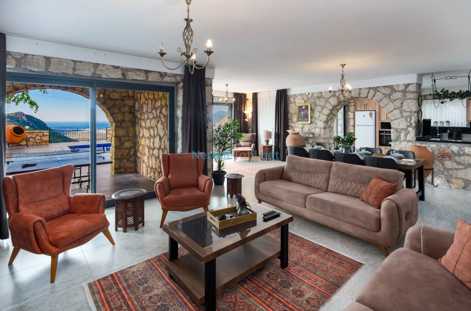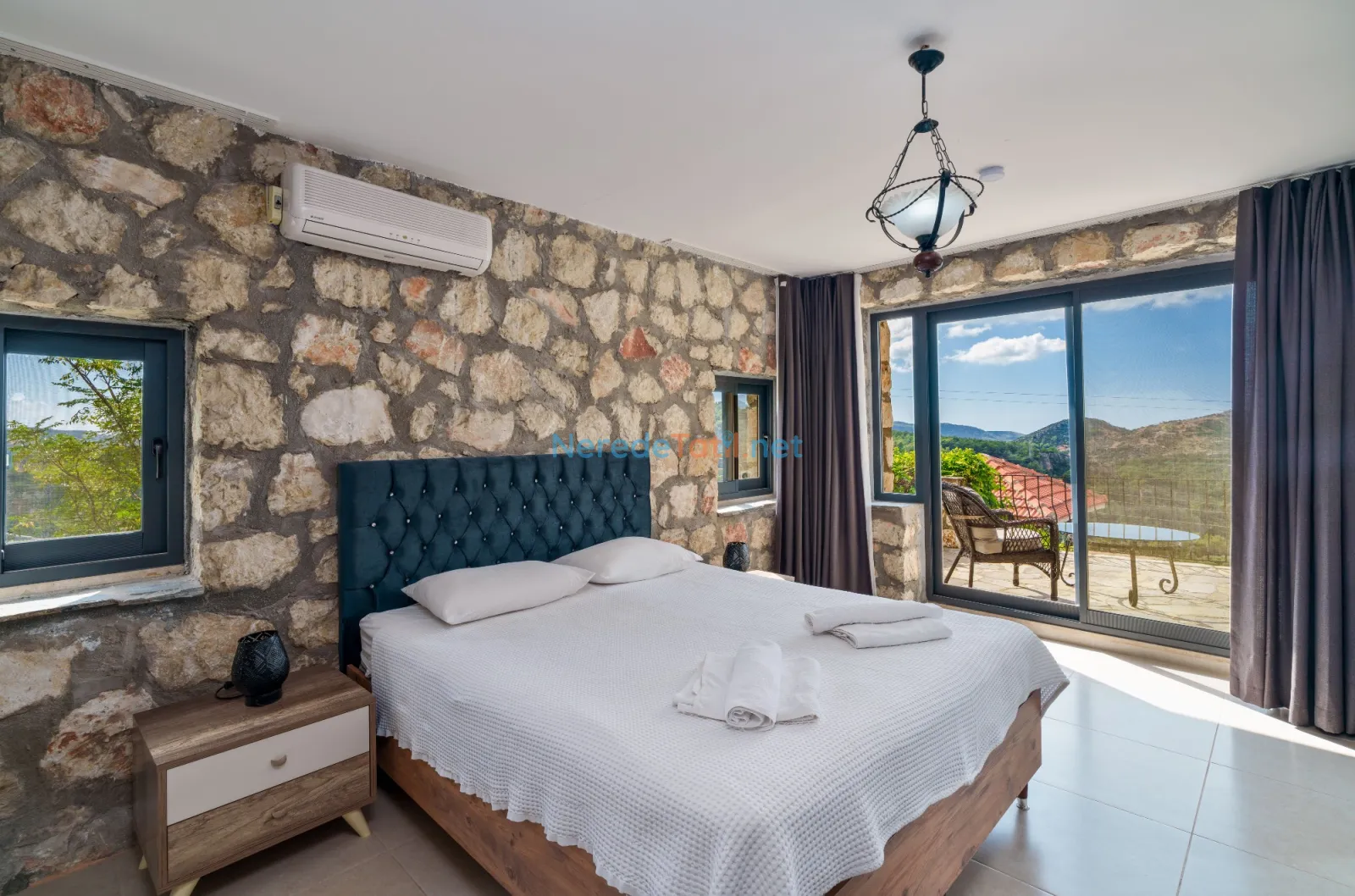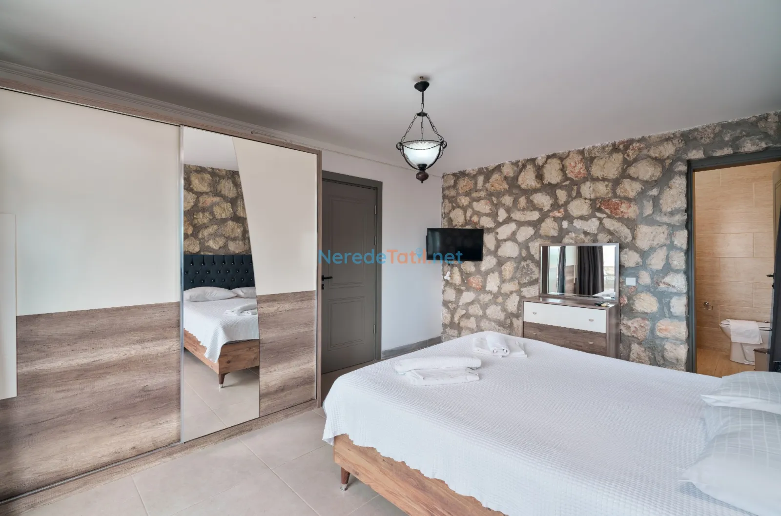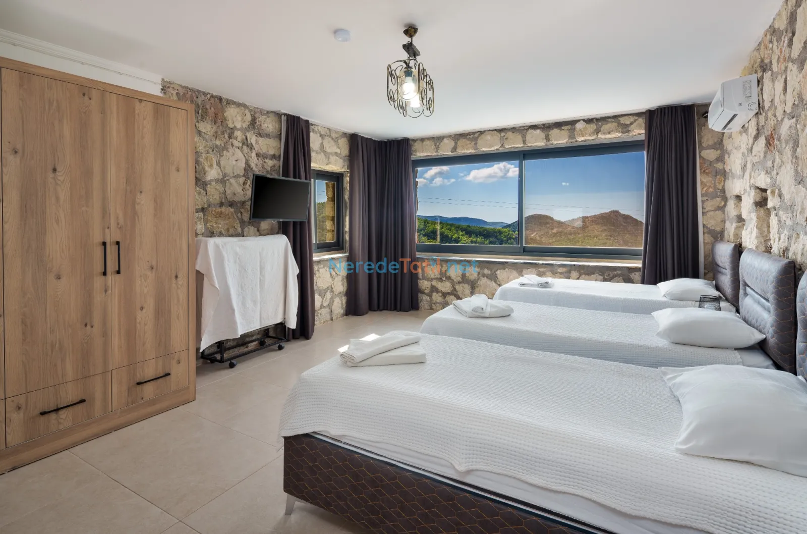 Üzümlü'de yer alan bu şık villa, huzurlu bir tatil için ideal bir seçenektir. Villanın geniş ve rahat bir tasarımı vardır, sekiz kişiye kadar konaklama kapasitesi sunar. Yatak odalarında iki adet çift kişilik ve dört adet tek kişilik yatak bulunmakta, ayrıca bebek yatağı da mevcuttur.