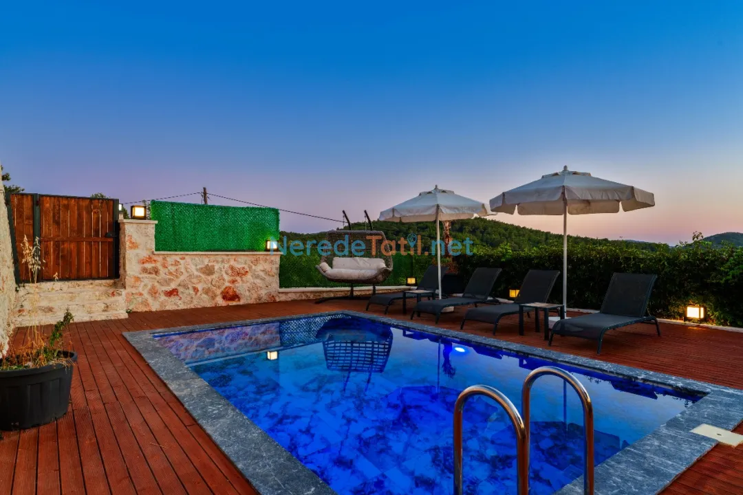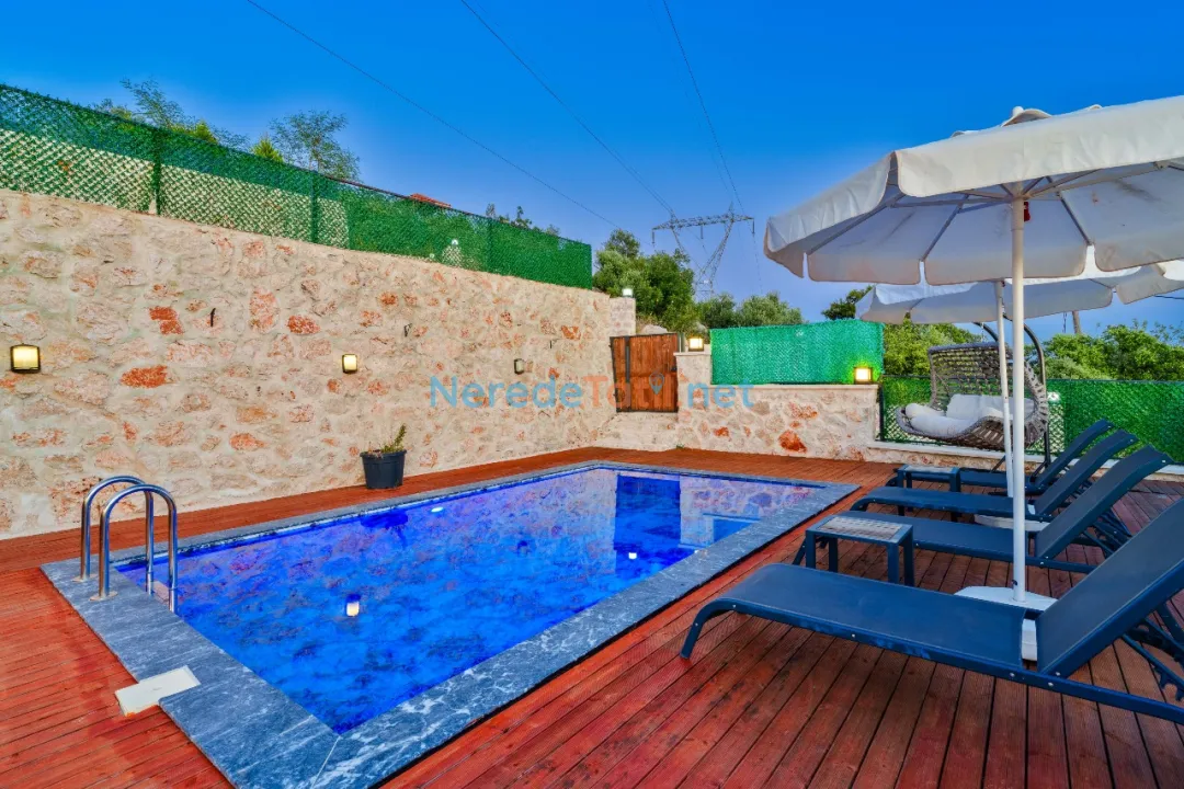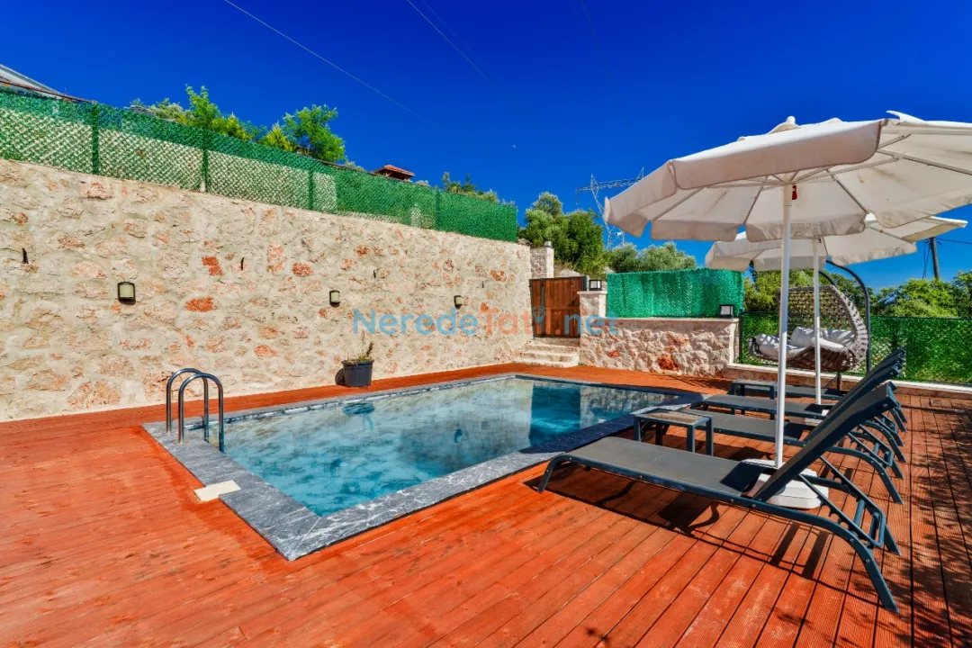 Üzümlü'nün büyüleyici doğasında yer alan bu villa, özel havuz ve korunaklı yapısıyla gizlilik arayan misafirler için ideal bir tatil sunuyor. Villanın 7 metreye 4 metre boyutlarındaki yüzme havuzu, derinliği 1.5 metre ile rahat bir yüzme deneyimi sağlıyor. Kapalı havuz bulunmayan villa, doğanın içinde huzurlu bir kaçış noktası sunuyor.
