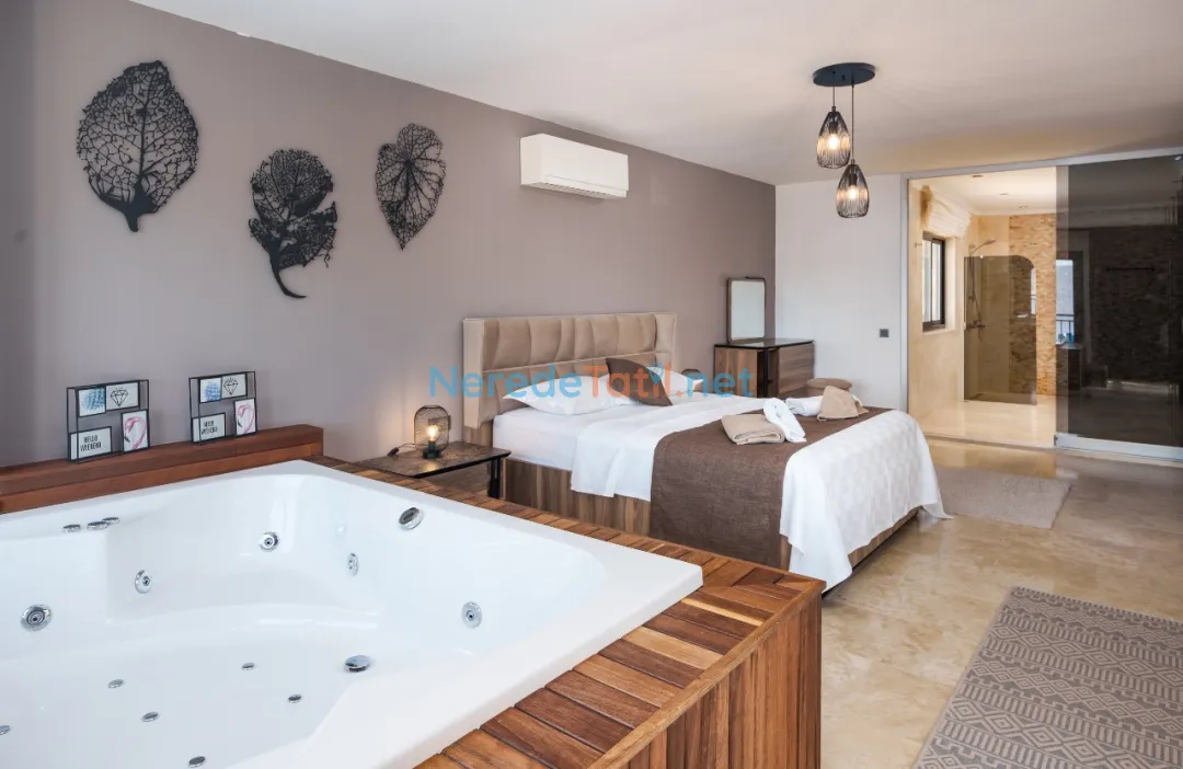 Villada bulunan jakuzi ve sauna keyfi, tatilinizi daha da özel kılacak. Ayrıca, barbekü alanında sevdiklerinizle keyifli vakit geçirebilirsiniz. Villanın deniz manzarası ise huzurlu bir ortam sunarken, şehir merkezine sadece 2.5 km uzaklıkta yer alması, her türlü ihtiyacınıza kolay ulaşım imkanı sağlar.